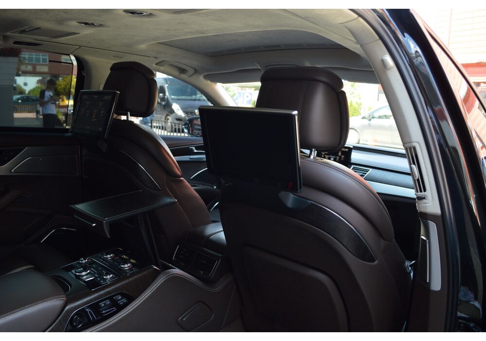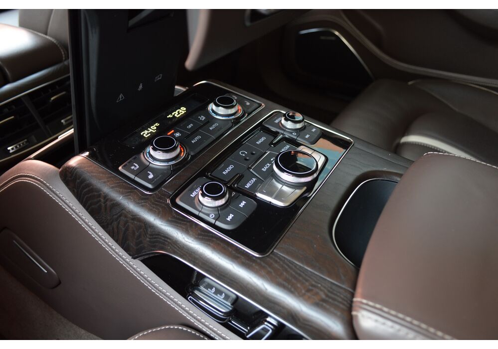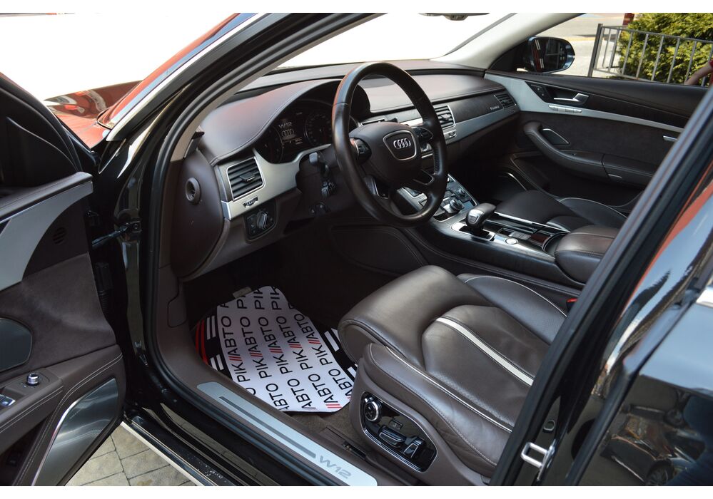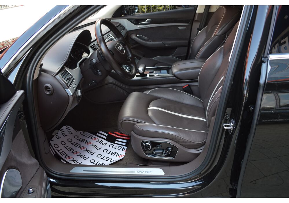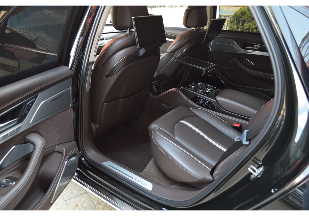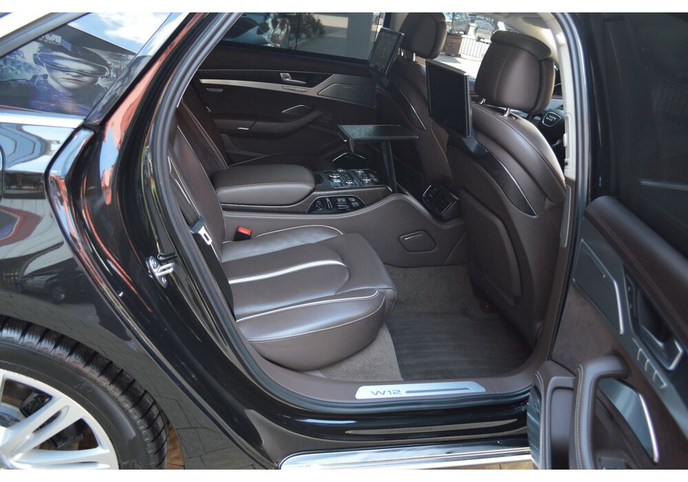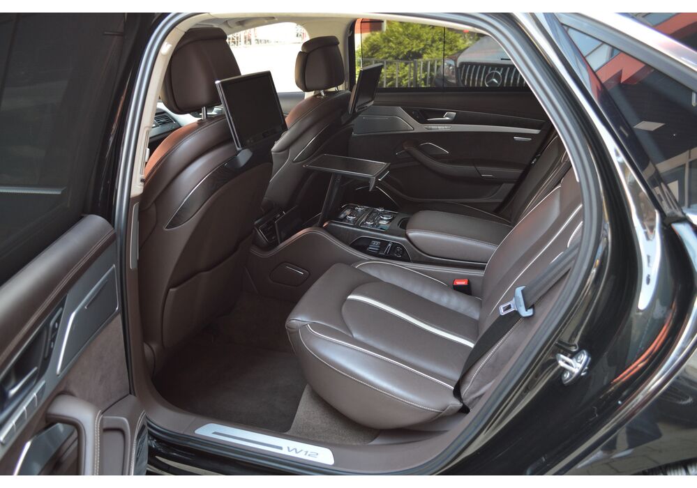 Загальна довжина Ауді A8 W12 Quattro складає 5267 мм. Тобто саме «вісімка» зараз є найбільшим автомобілем серед «німецької трійки». Звичайно, Audi A8L обганяє Mercedes-Benz S-класу і BMW 7-ї серії лише на кілька міліметрів, але для Audi і це перевага було важливо. Хоча Audi A8 W12 Quattro цікава не тільки своїми розмірами. На другому ряду крісел в цій машині справжнє царство розкоші: шикарні крісла з можливістю регулювання і чотирма програмами масажу, чотирьохзонний клімат-контроль, підставки для ніг, рідкокристалічний монітор, величезний люк і багато іншого.