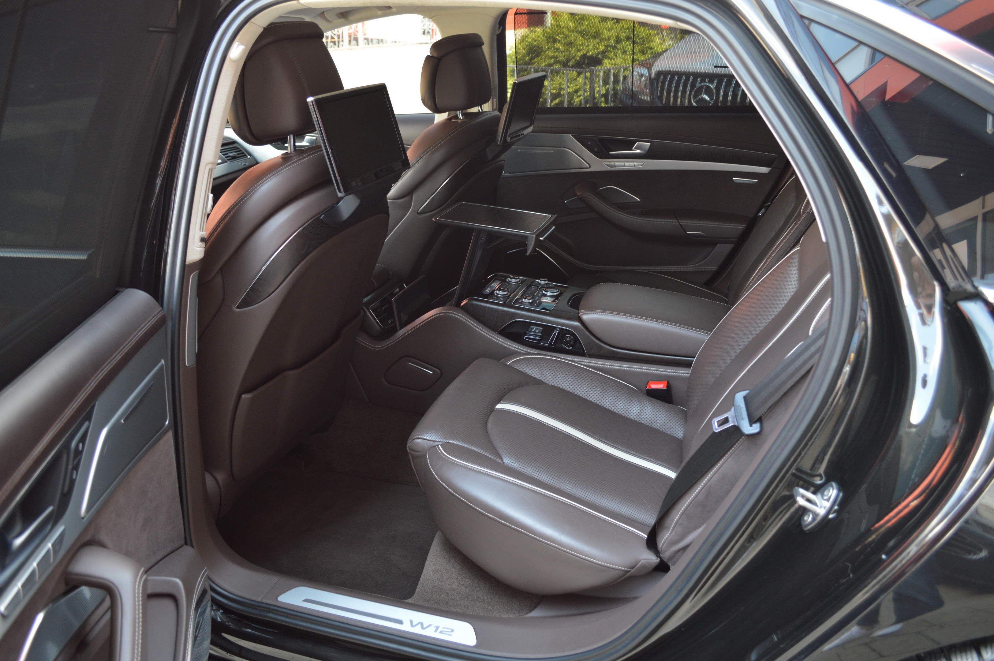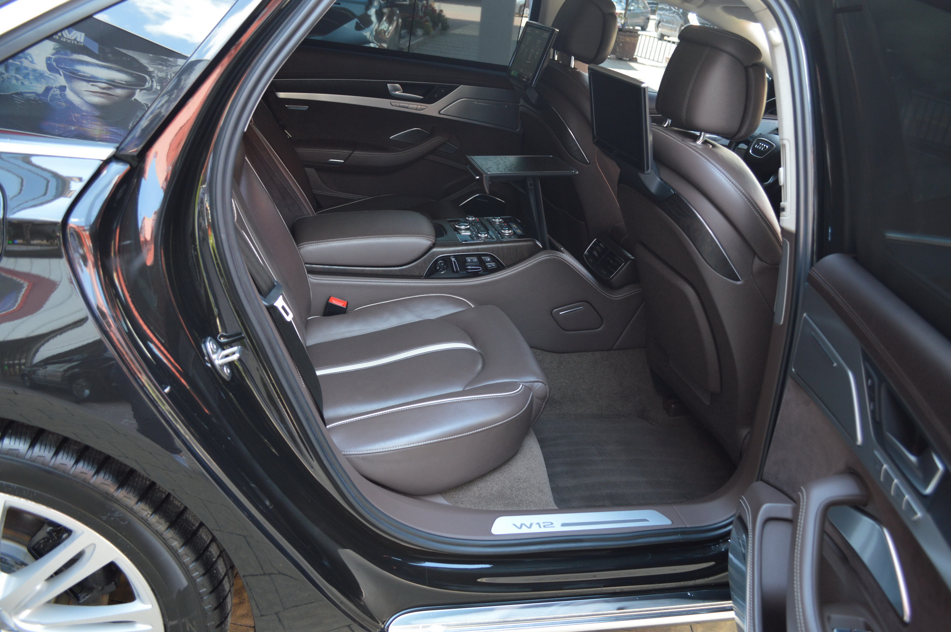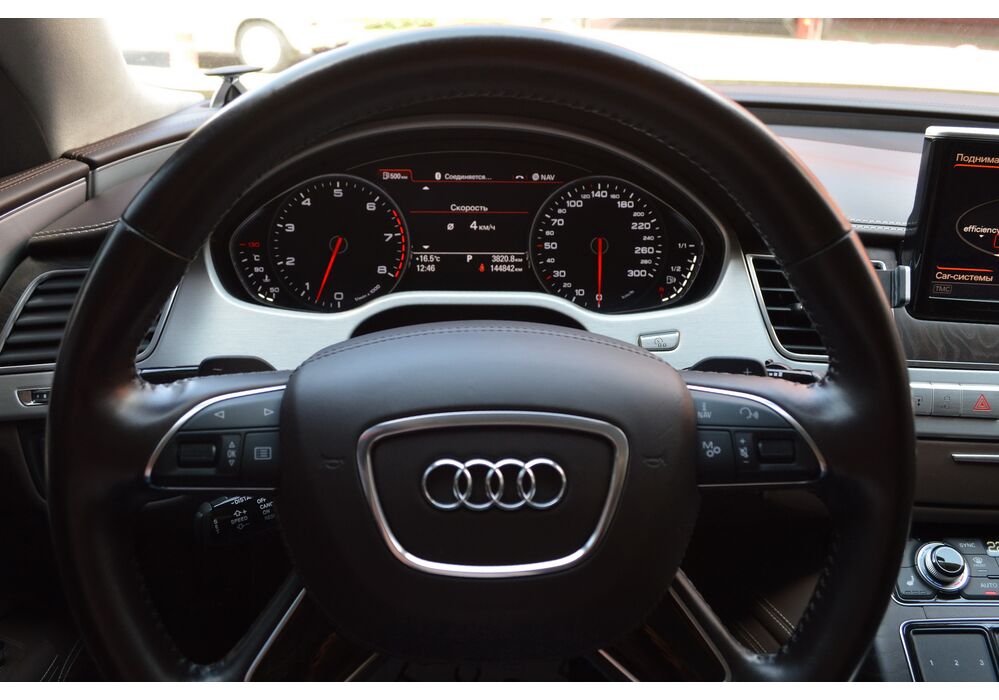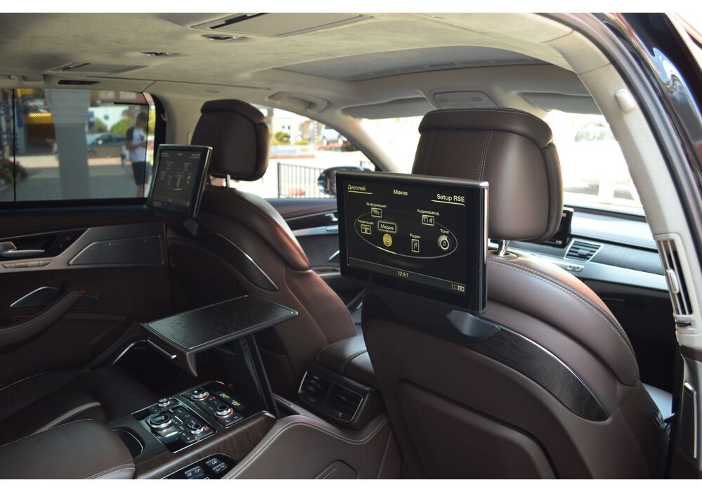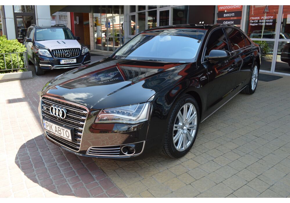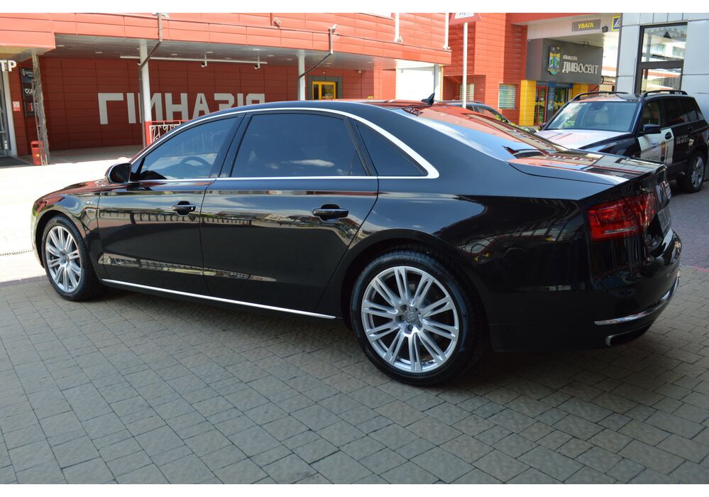 Загальна довжина Ауді A8 W12 Quattro складає 5267 мм. Тобто саме «вісімка» зараз є найбільшим автомобілем серед «німецької трійки». Звичайно, Audi A8L обганяє Mercedes-Benz S-класу і BMW 7-ї серії лише на кілька міліметрів, але для Audi і це перевага було важливо. Хоча Audi A8 W12 Quattro цікава не тільки своїми розмірами. На другому ряду крісел в цій машині справжнє царство розкоші: шикарні крісла з можливістю регулювання і чотирма програмами масажу, чотирьохзонний клімат-контроль, підставки для ніг, рідкокристалічний монітор, величезний люк і багато іншого.