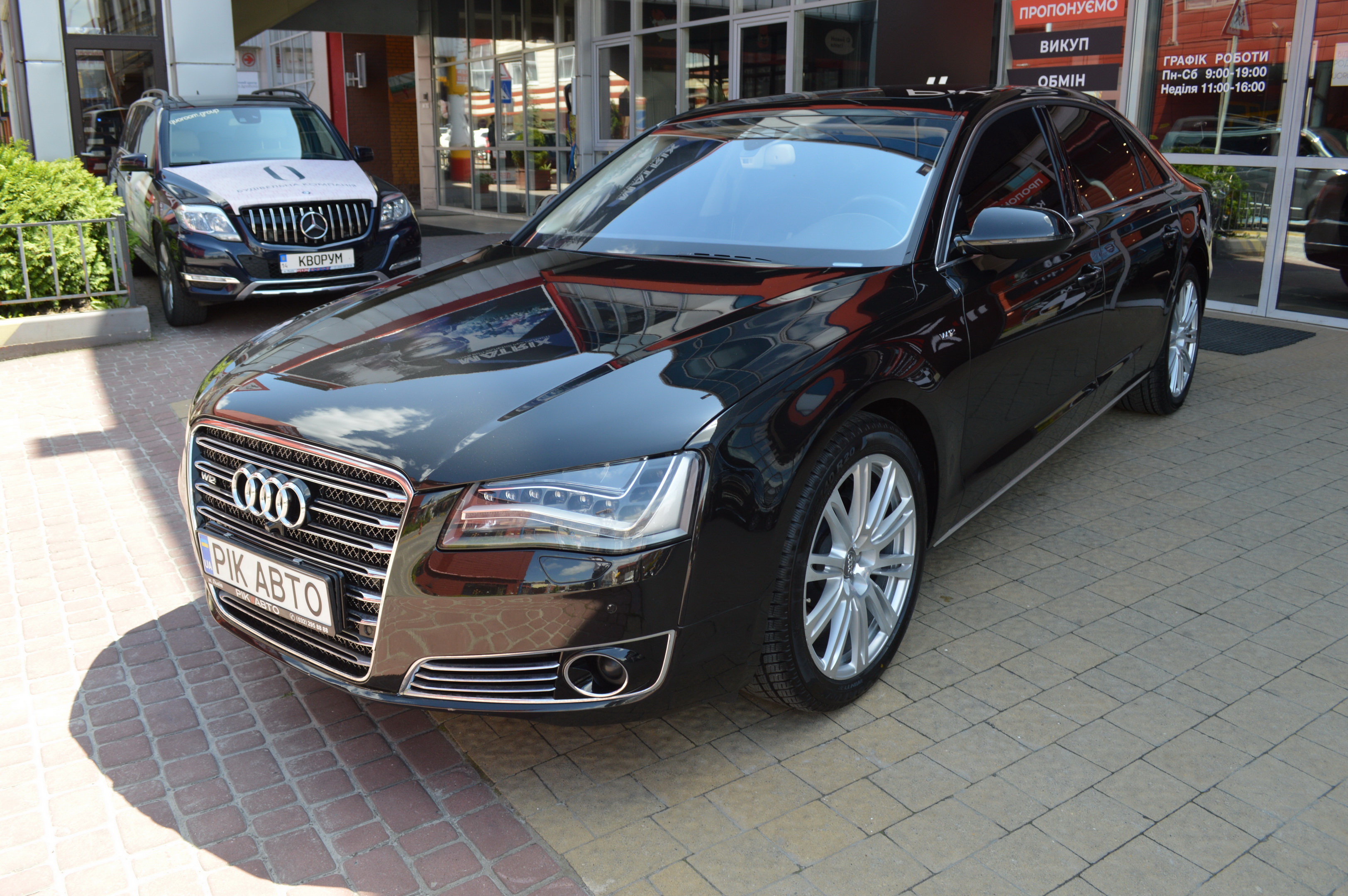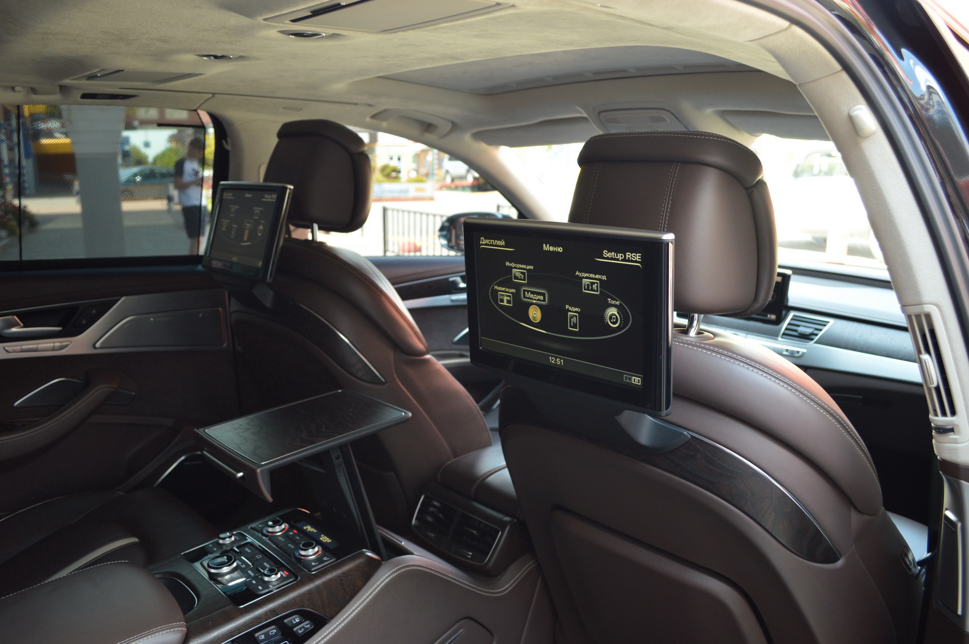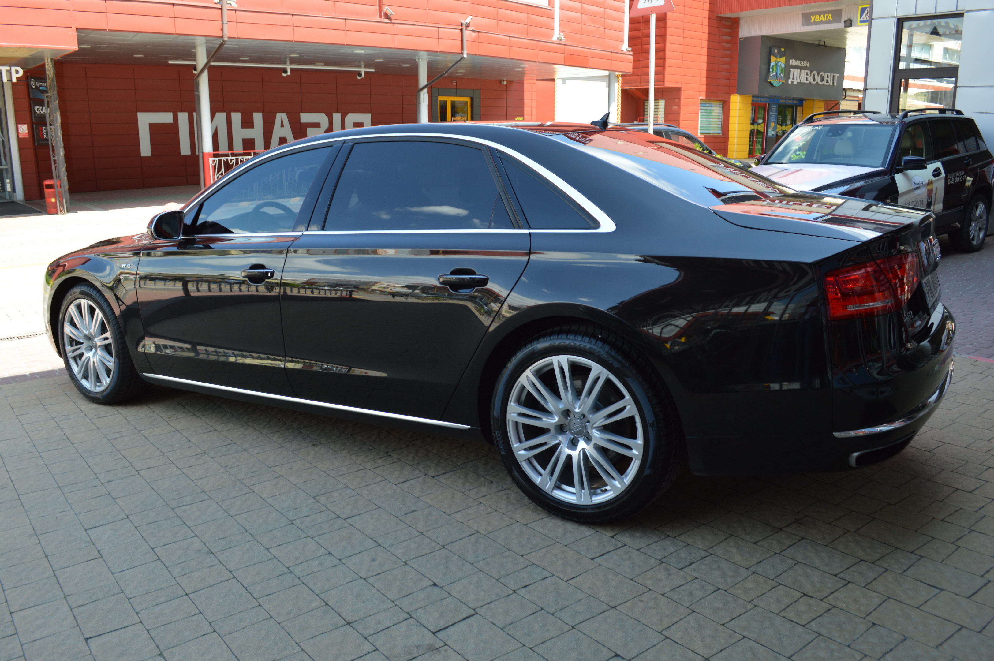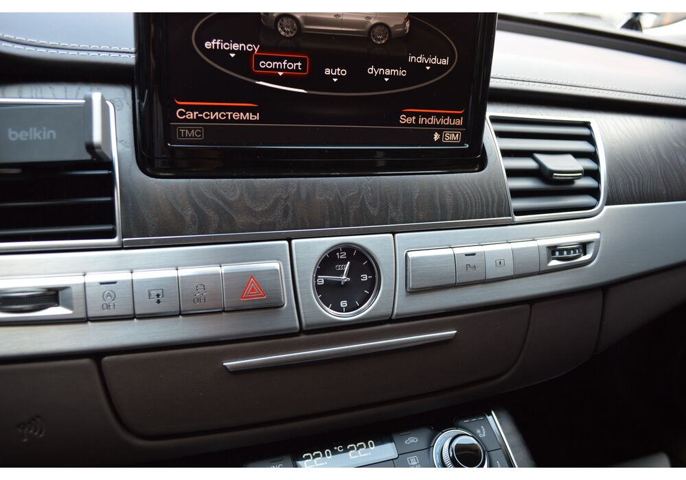 Загальна довжина Ауді A8 W12 Quattro складає 5267 мм. Тобто саме «вісімка» зараз є найбільшим автомобілем серед «німецької трійки». Звичайно, Audi A8L обганяє Mercedes-Benz S-класу і BMW 7-ї серії лише на кілька міліметрів, але для Audi і це перевага було важливо. Хоча Audi A8 W12 Quattro цікава не тільки своїми розмірами. На другому ряду крісел в цій машині справжнє царство розкоші: шикарні крісла з можливістю регулювання і чотирма програмами масажу, чотирьохзонний клімат-контроль, підставки для ніг, рідкокристалічний монітор, величезний люк і багато іншого.