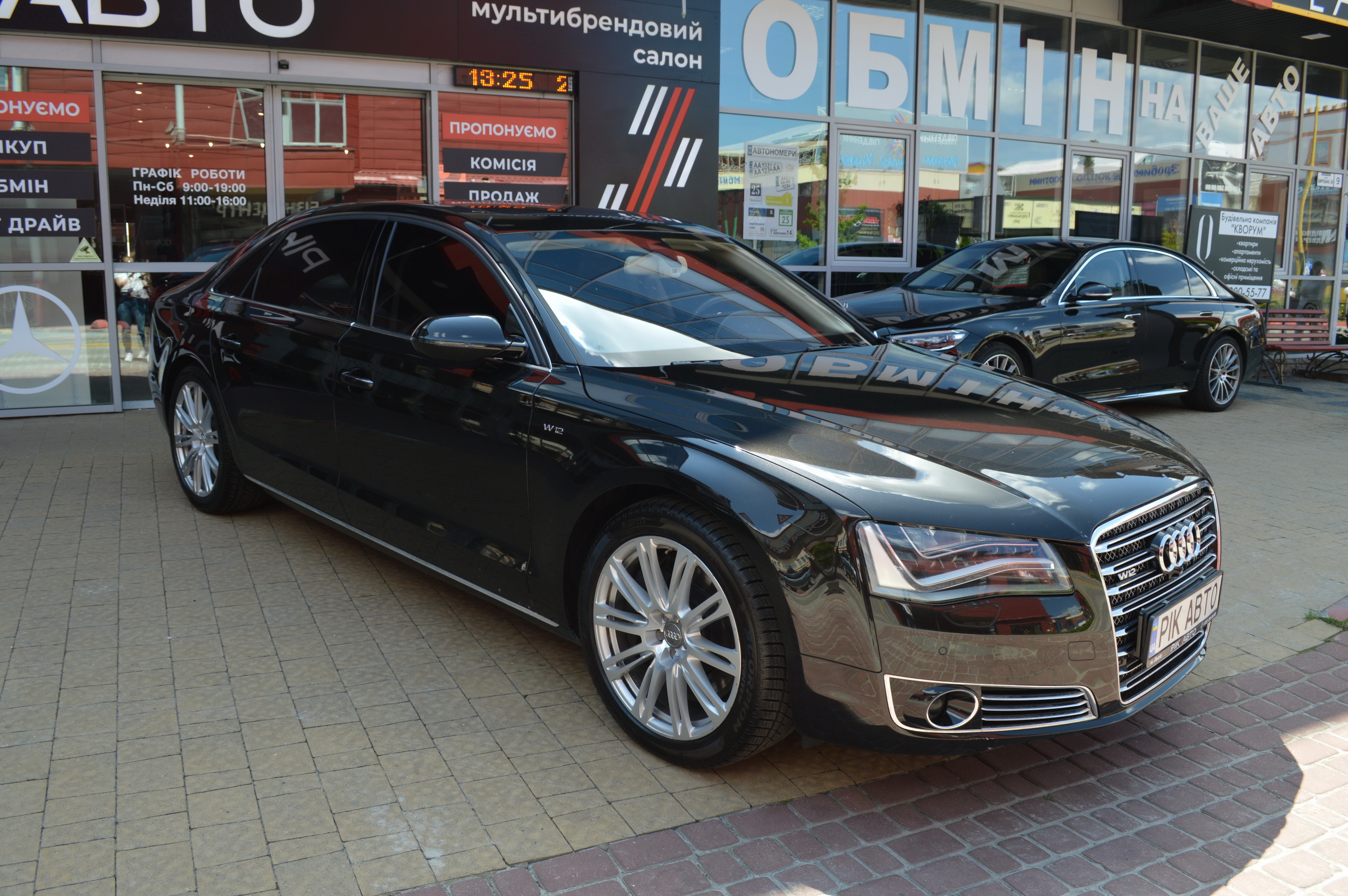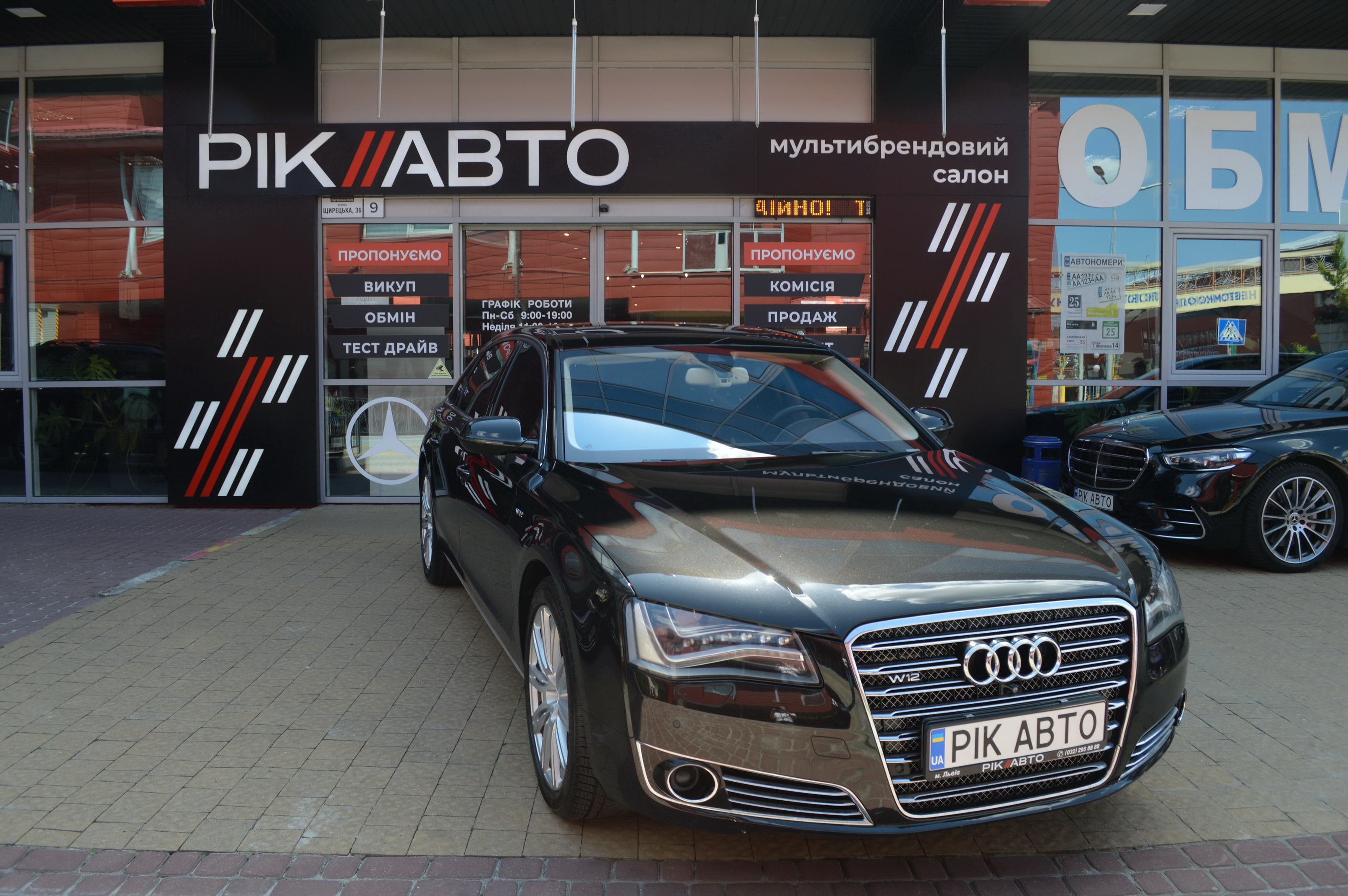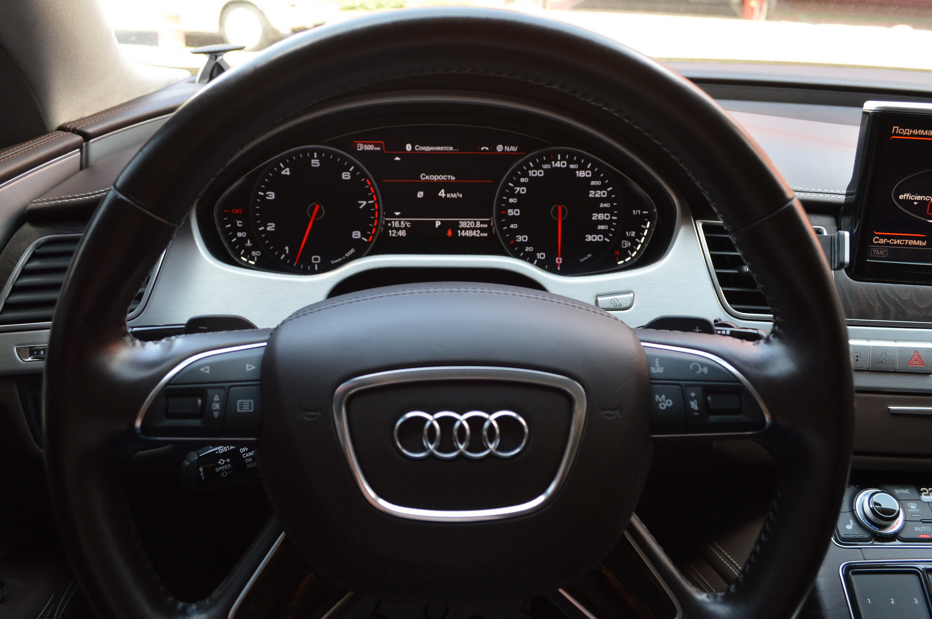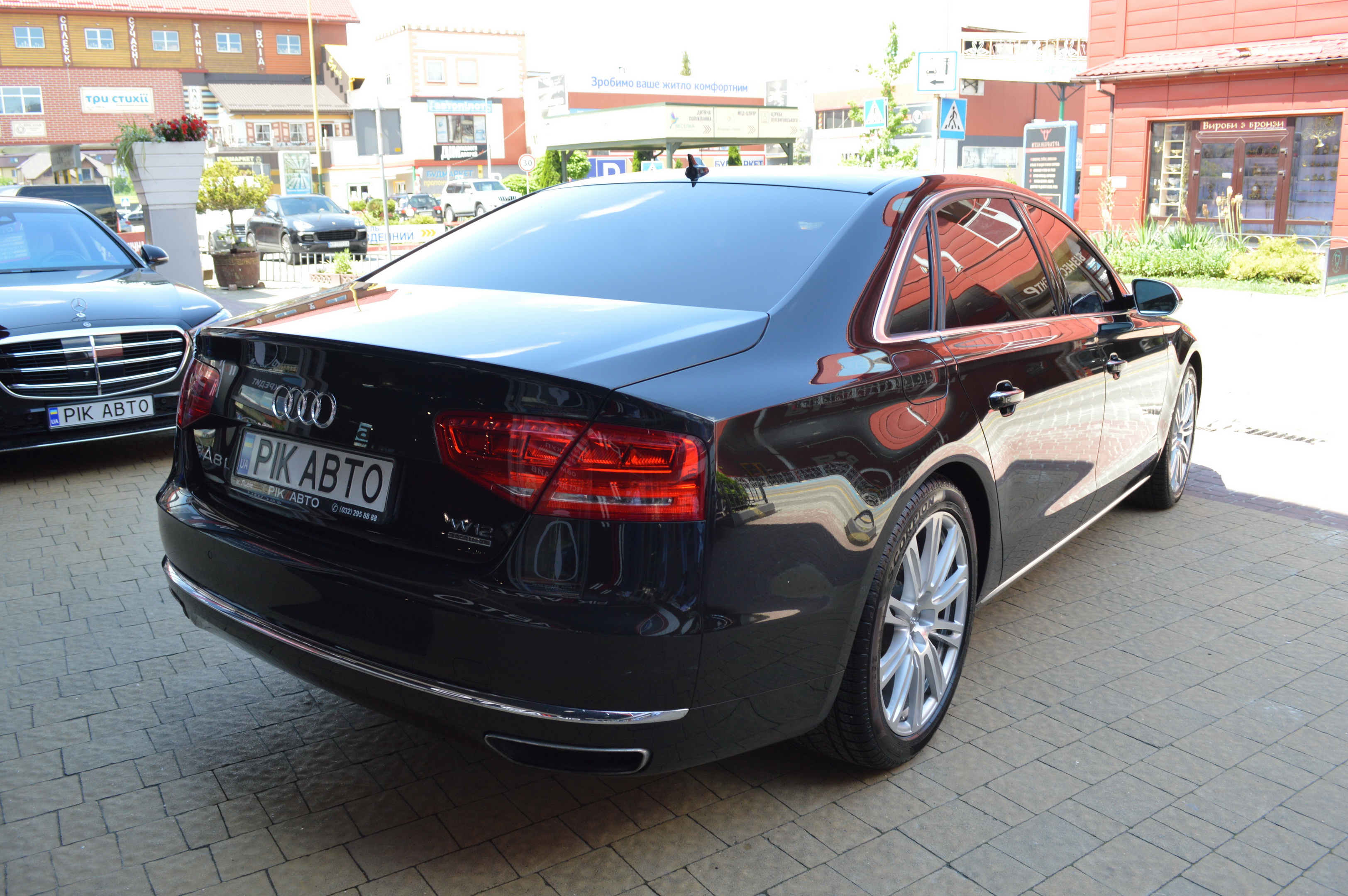 Загальна довжина Ауді A8 W12 Quattro складає 5267 мм. Тобто саме «вісімка» зараз є найбільшим автомобілем серед «німецької трійки». Звичайно, Audi A8L обганяє Mercedes-Benz S-класу і BMW 7-ї серії лише на кілька міліметрів, але для Audi і це перевага було важливо. Хоча Audi A8 W12 Quattro цікава не тільки своїми розмірами. На другому ряду крісел в цій машині справжнє царство розкоші: шикарні крісла з можливістю регулювання і чотирма програмами масажу, чотирьохзонний клімат-контроль, підставки для ніг, рідкокристалічний монітор, величезний люк і багато іншого.
