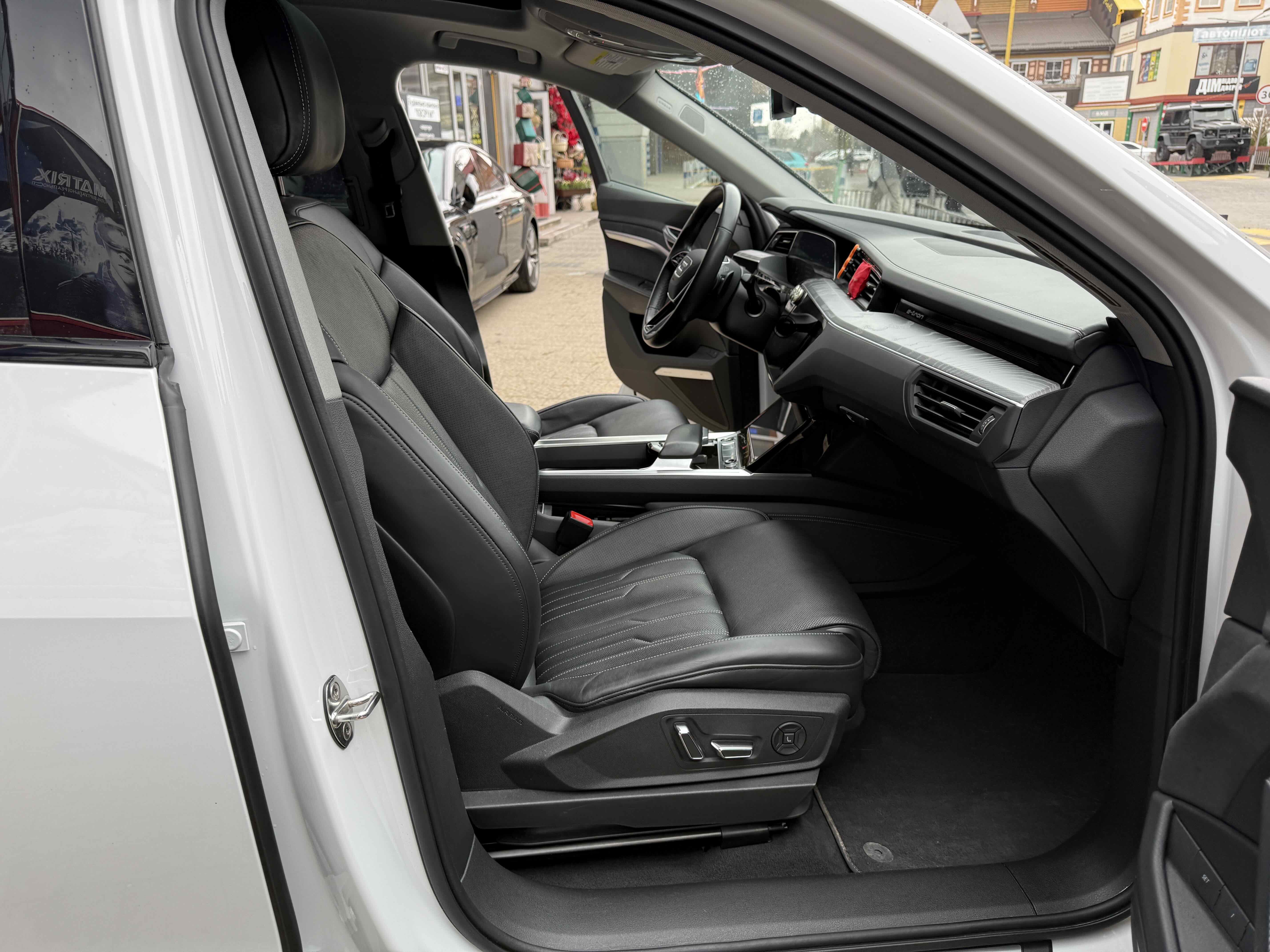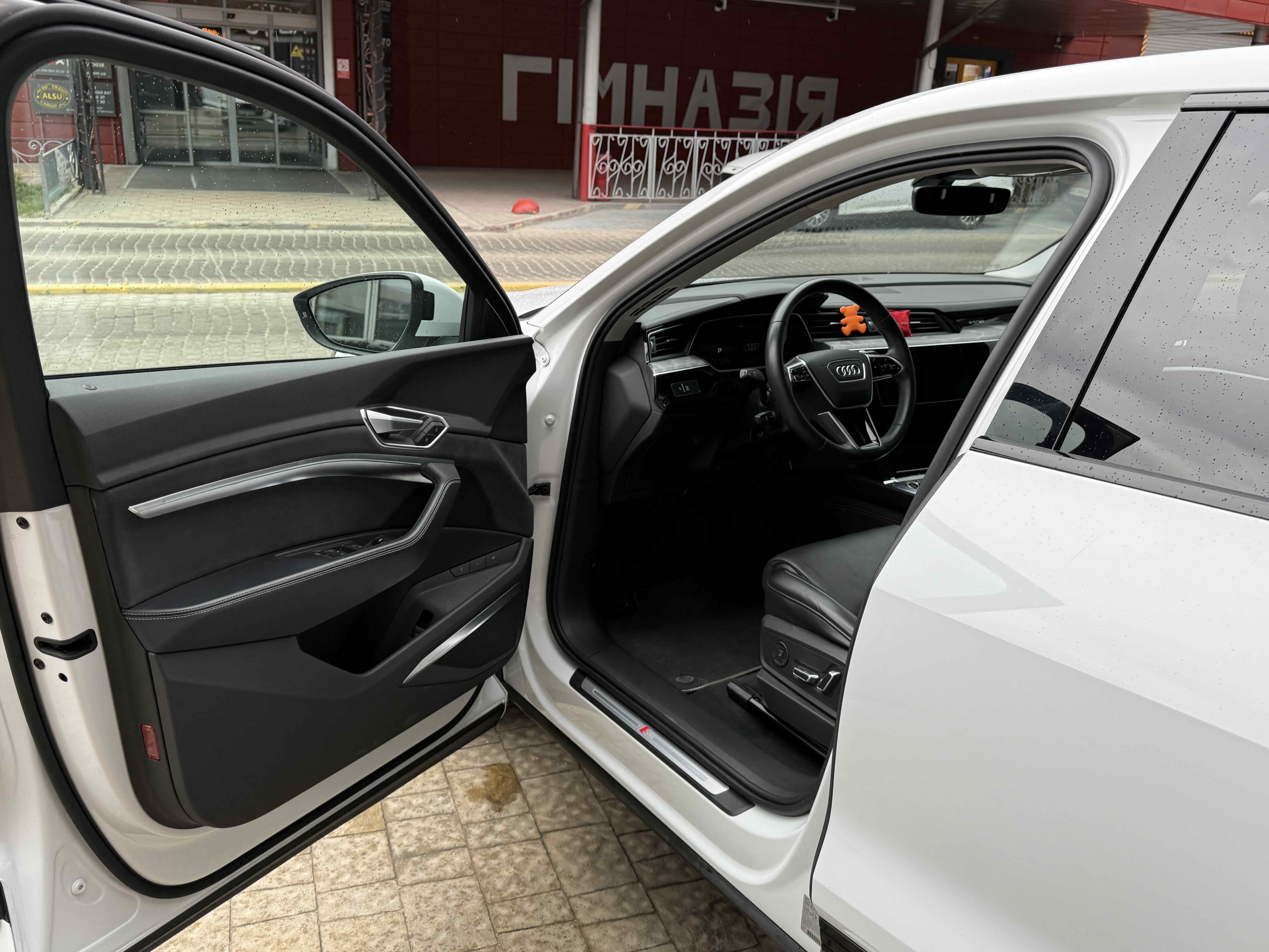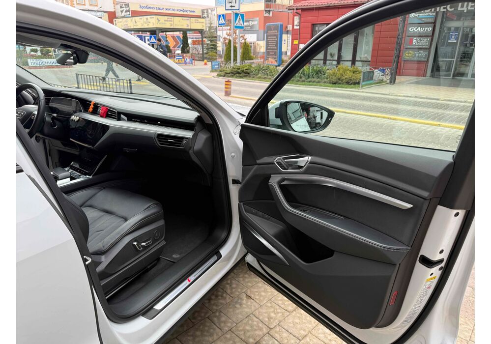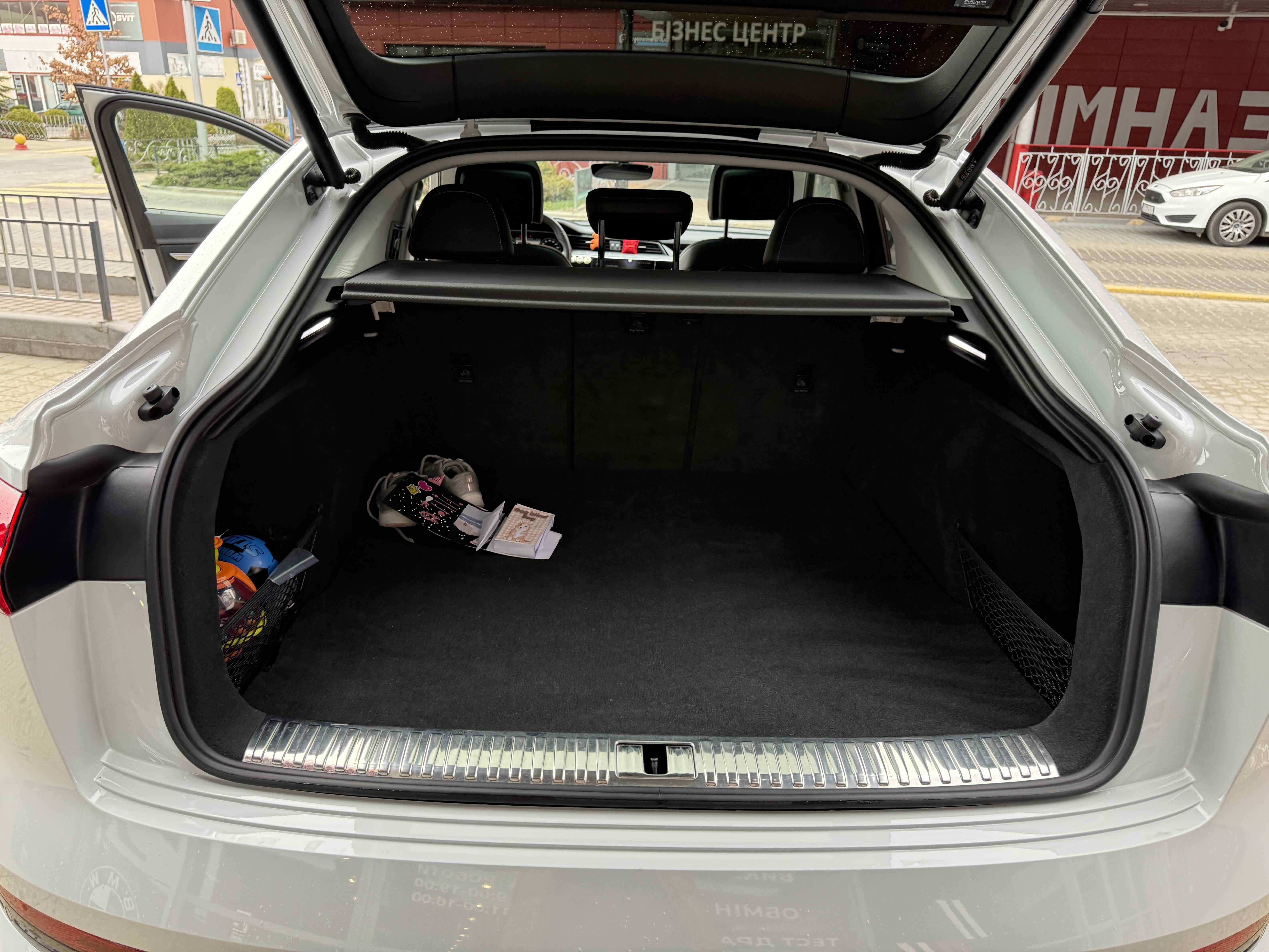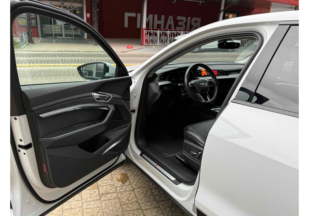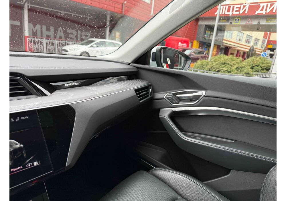 У салоні - вже відомі нам по інших моделях марки два дисплея системи MMI в центрі, а також 12.3-дюймова віртуальна панель приладів c можливістю кастомізації. Відмінною особливістю є оформлення центрального тунелю, а також «селектор КПП», який насправді реалізований як упор під руку, а перемикання режимів їзди здійснюється великим пальцем. Що стосується багажника, то його обсяг становить 600 л під полицею (+1700 л зі складеним в рівну підлогу заднім рядом), але ще один відсік доступний і спереду (frunk - тобто front trunk - має в своєму розпорядженні 60 літрами обсягу, там зручно зберігати кабелі для зарядки ).