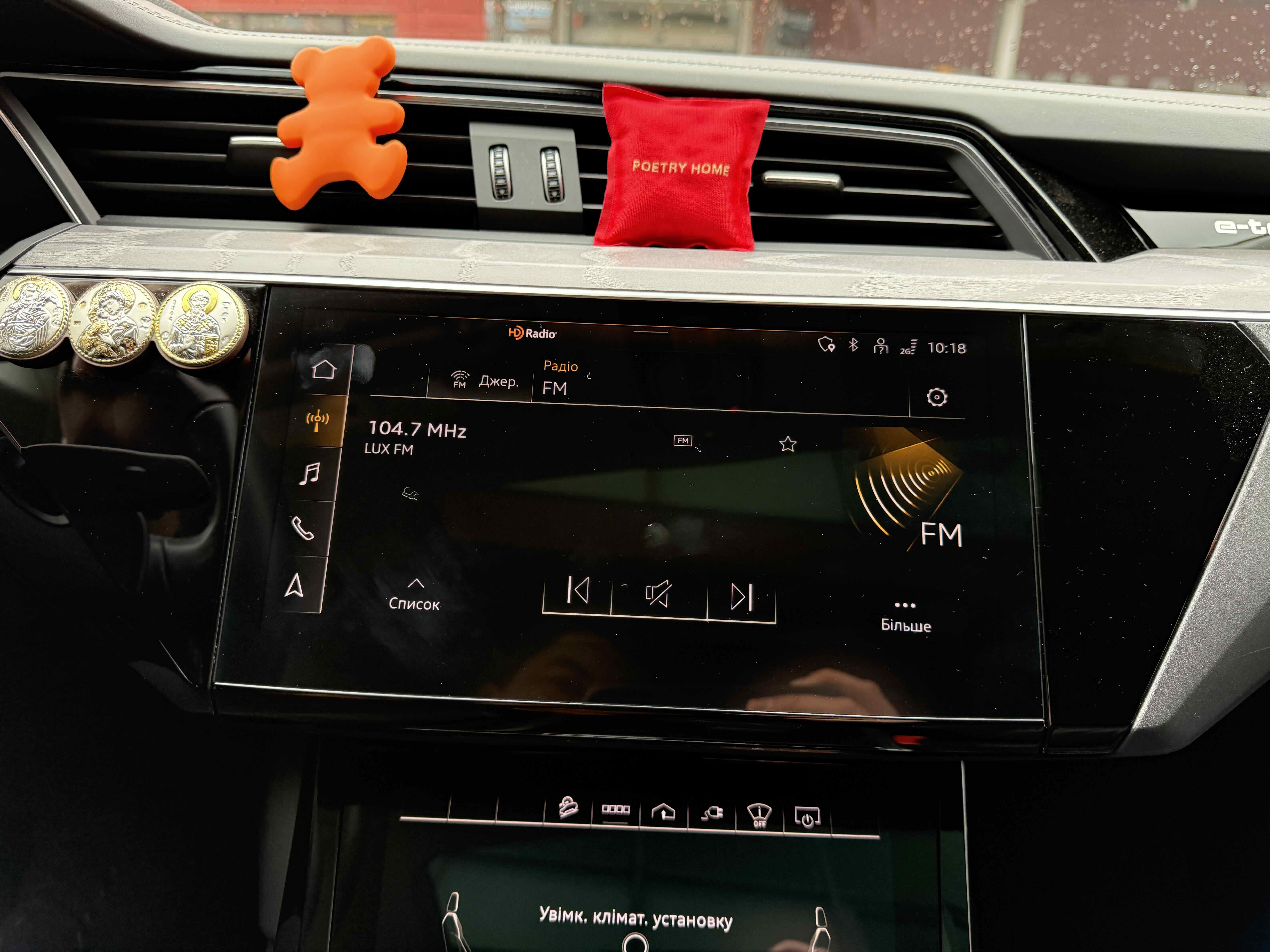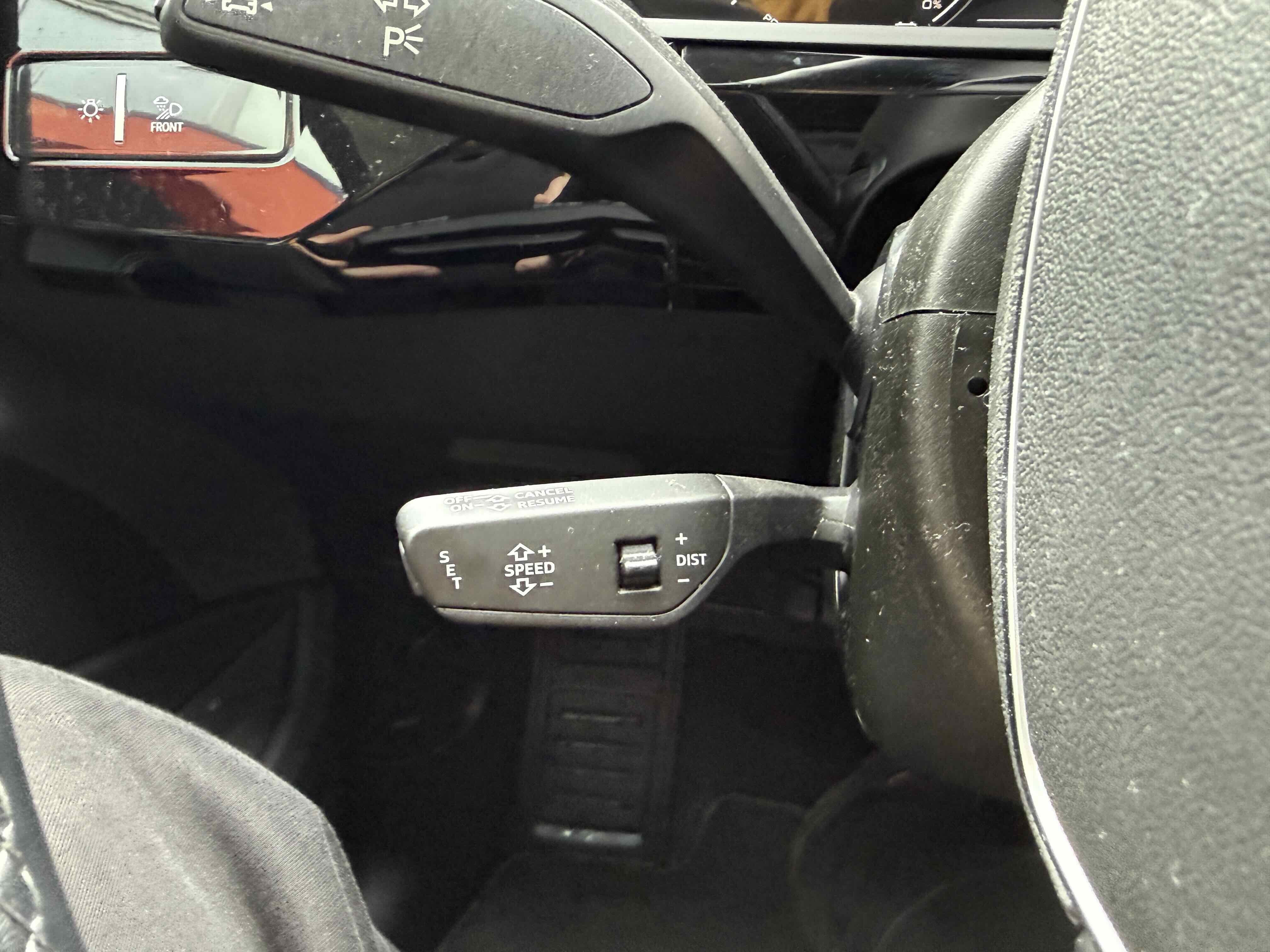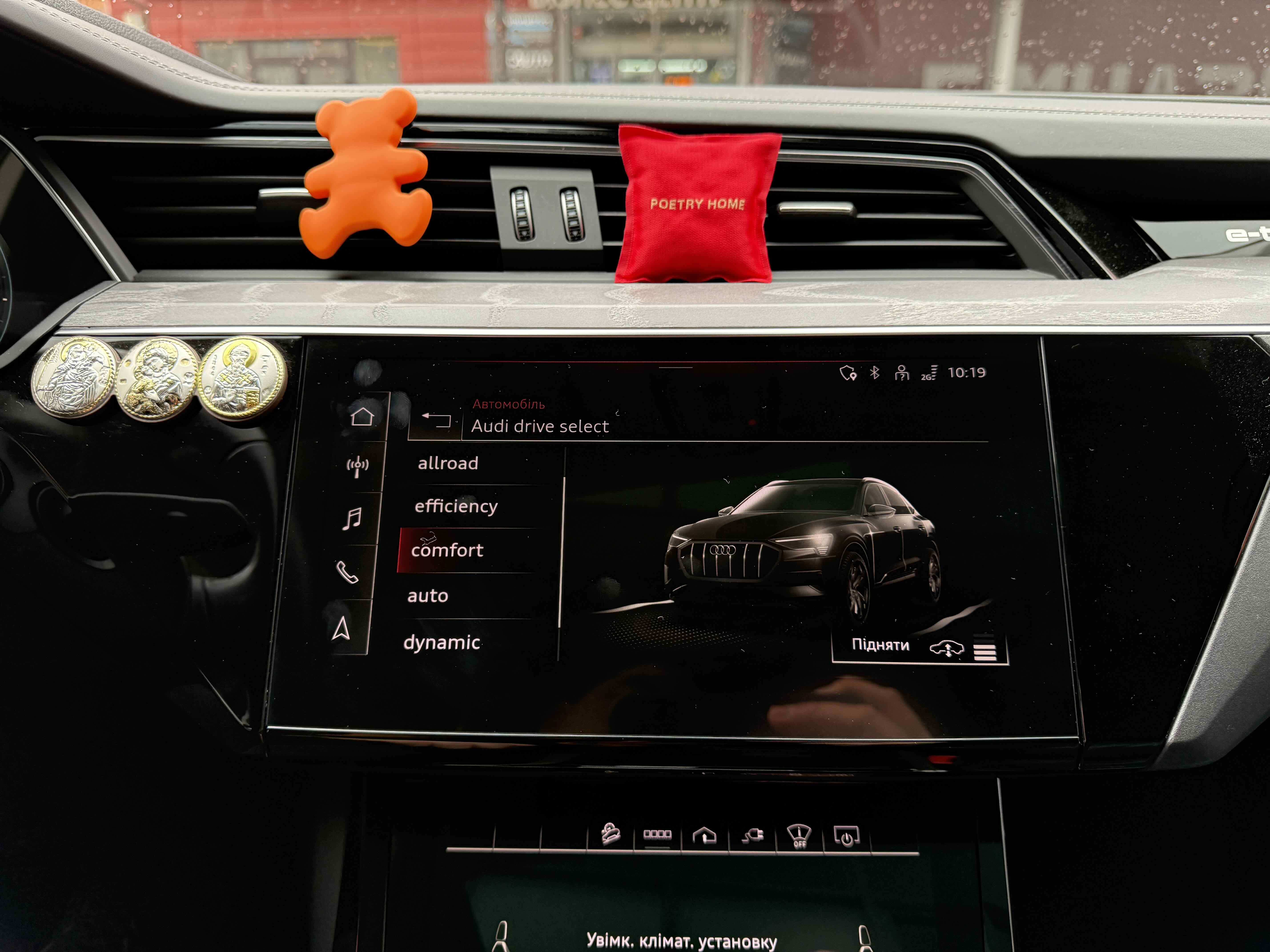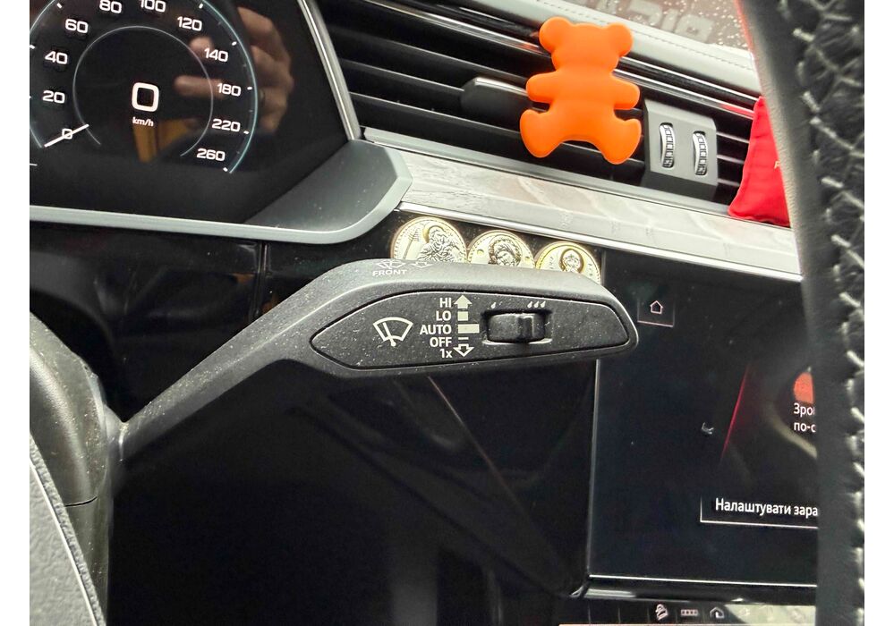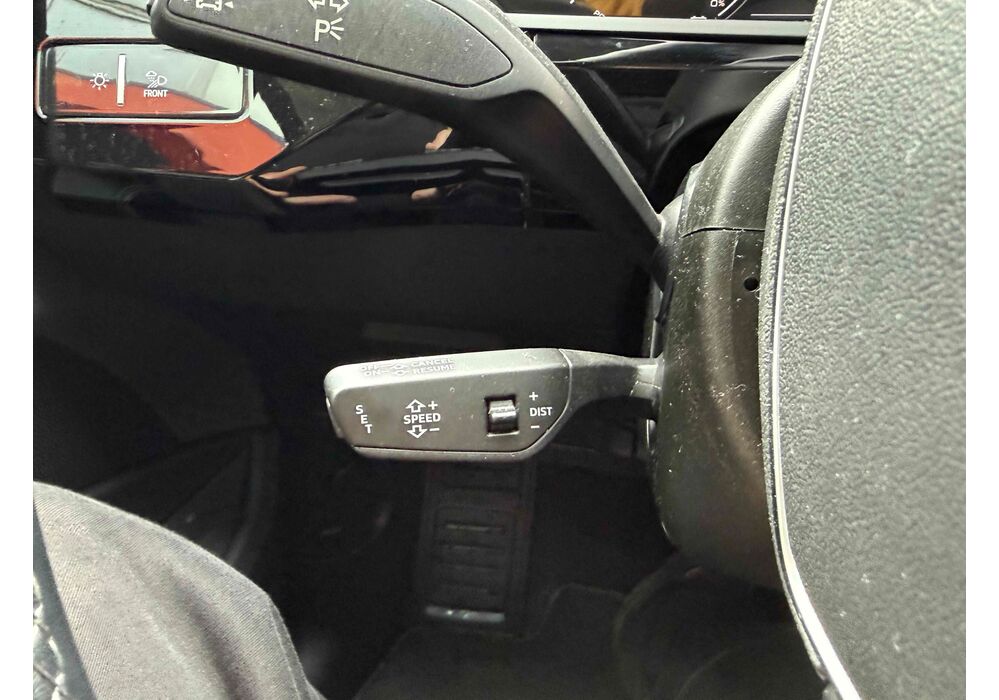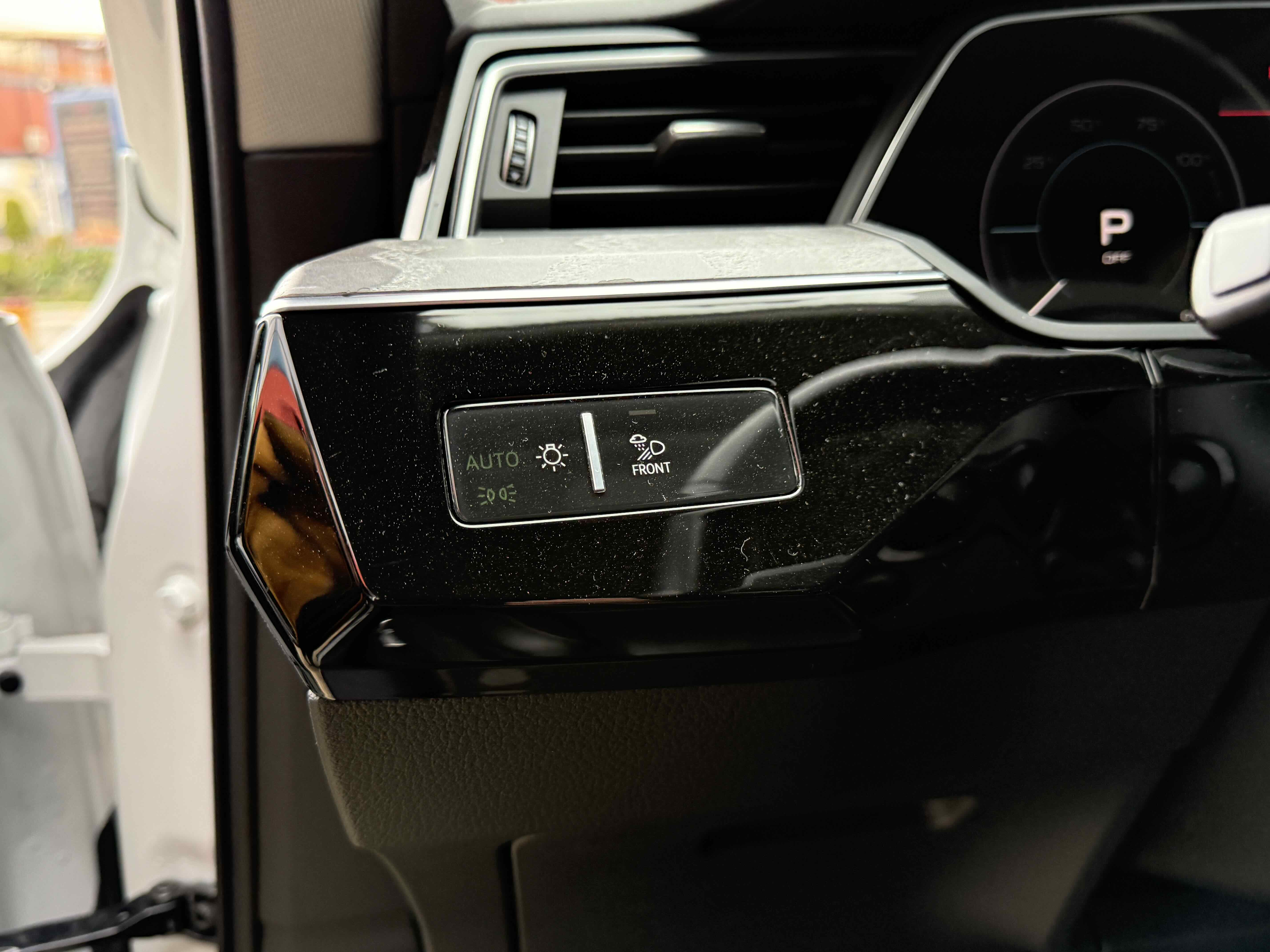 У салоні - вже відомі нам по інших моделях марки два дисплея системи MMI в центрі, а також 12.3-дюймова віртуальна панель приладів c можливістю кастомізації. Відмінною особливістю є оформлення центрального тунелю, а також «селектор КПП», який насправді реалізований як упор під руку, а перемикання режимів їзди здійснюється великим пальцем. Що стосується багажника, то його обсяг становить 600 л під полицею (+1700 л зі складеним в рівну підлогу заднім рядом), але ще один відсік доступний і спереду (frunk - тобто front trunk - має в своєму розпорядженні 60 літрами обсягу, там зручно зберігати кабелі для зарядки ).