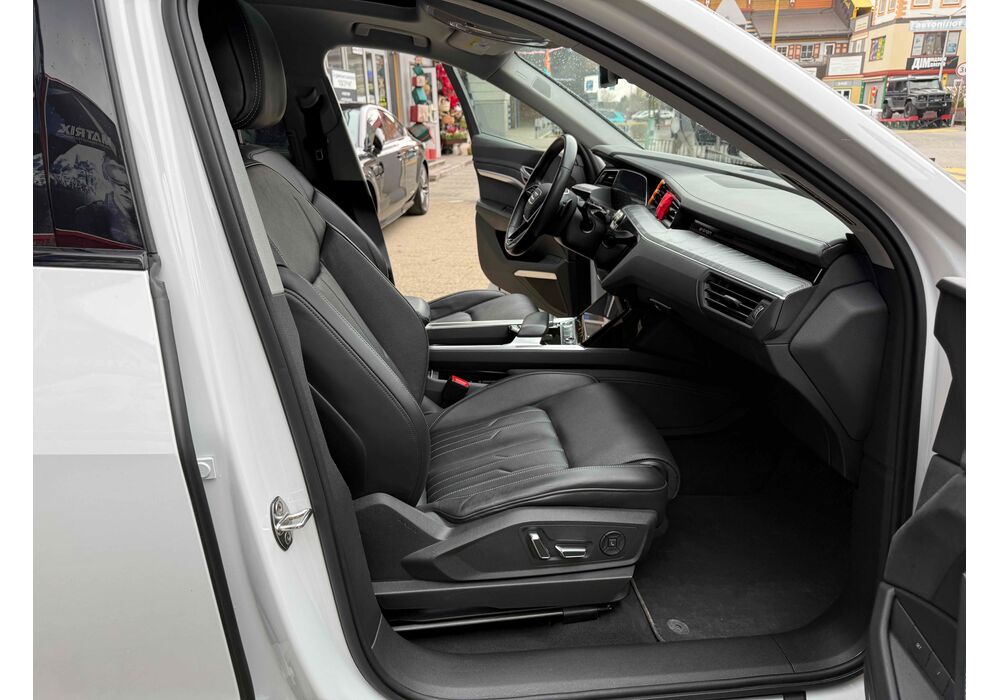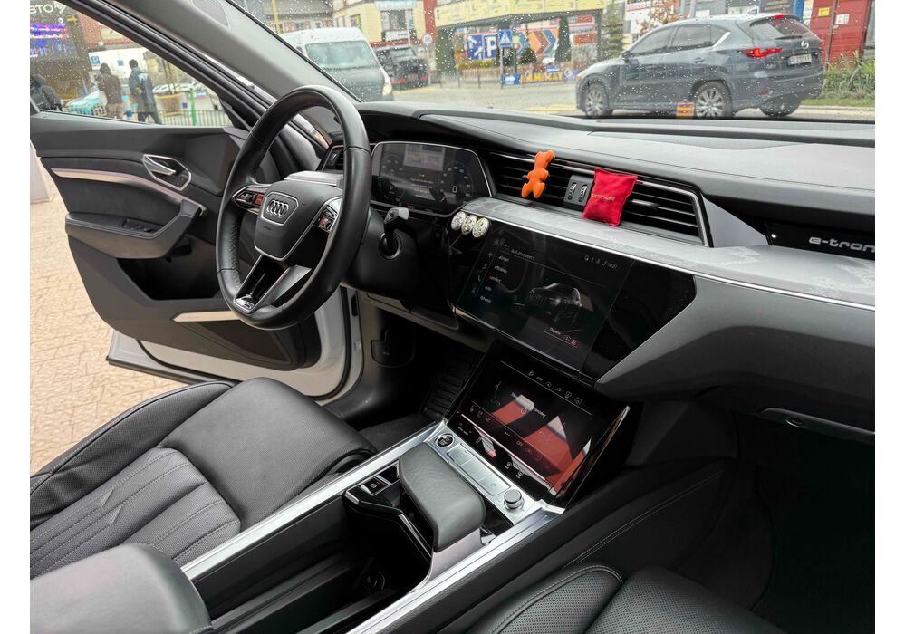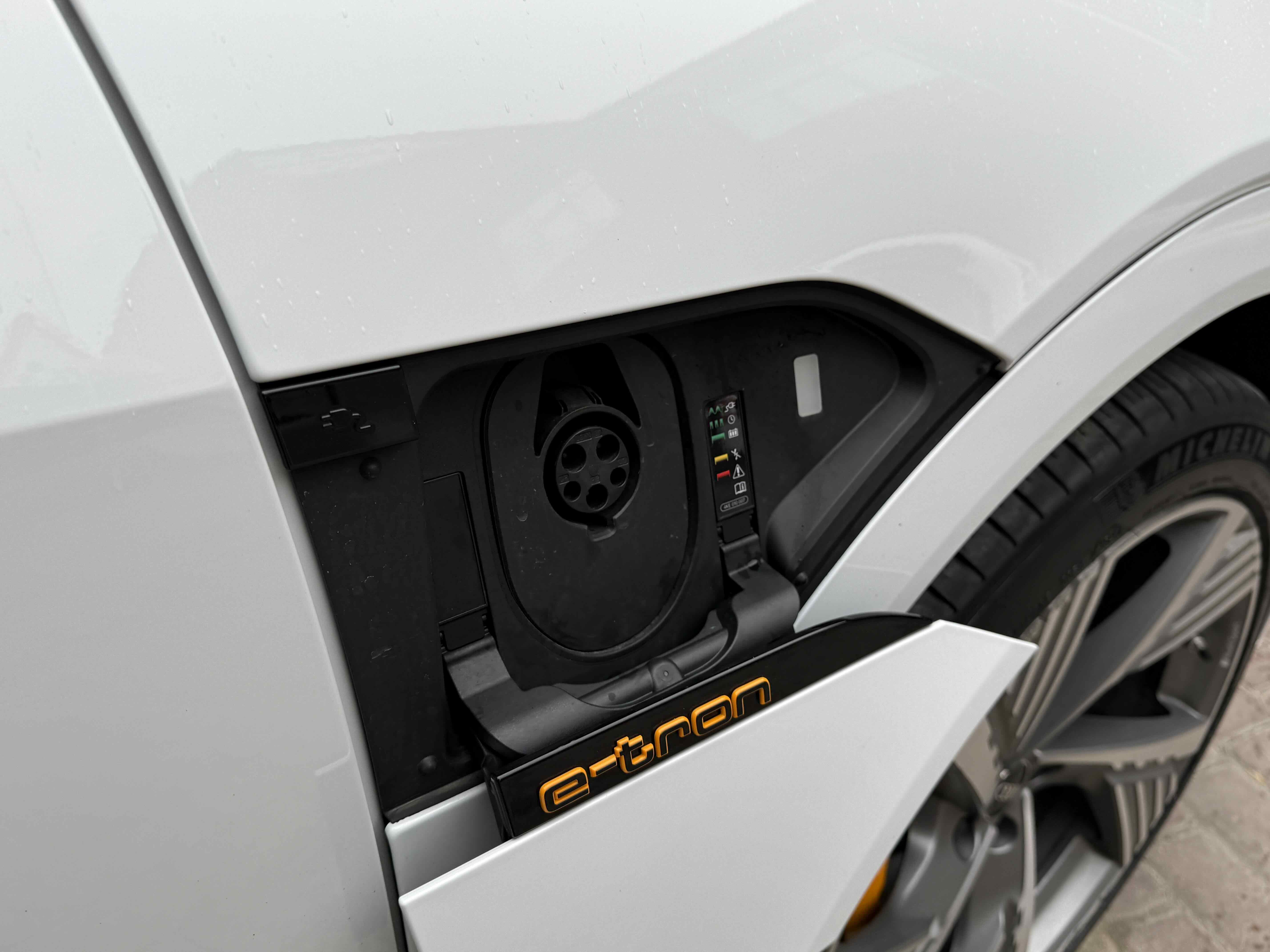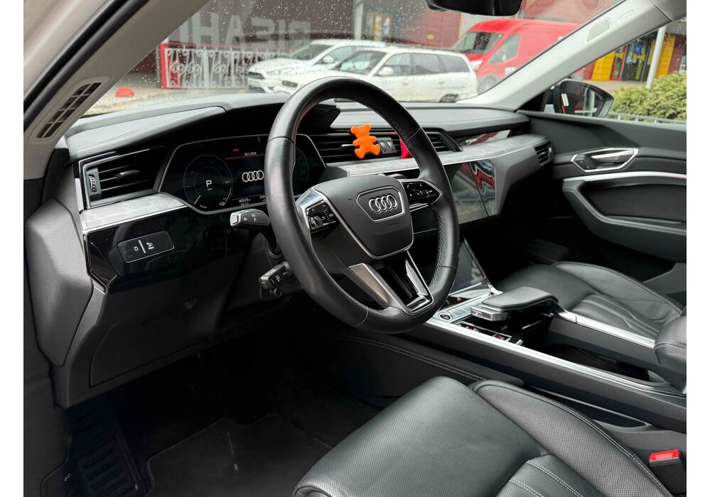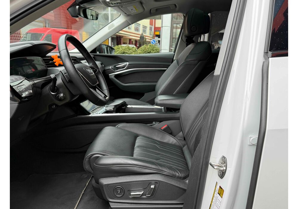 Силовою установкою (для версії e-tron 55 quattro) є два асинхронних електромотора (кожен приводить в рух свою вісь), які в сумі видають 360 к.с. і 560 Нм крутного моменту, але на хвилину здатні збільшувати віддачу до 408 «коней» і 664 Нм. Вони харчуються від 95-кіловатної літій-іонної батареї (яка важить 700 кг), розташованої в єдиному корпусі в межах колісної бази. Батарея працює з напругою в 400 вольт. Зарядитися від базового 11-кіловатного терміналу можна за 8.5 годин, від 22-кіловатного - за 4.5 години. А ось від суперчарджера на 150 кВт батарею можна наповнити на 80% за півгодини. Цікавою особливістю автомобіля є два порти для зарядки - панелі з обох сторін передніх крилах (відкриваються за допомогою кнопок на люках), але 150-кіловатний можна підключити тільки зліва.