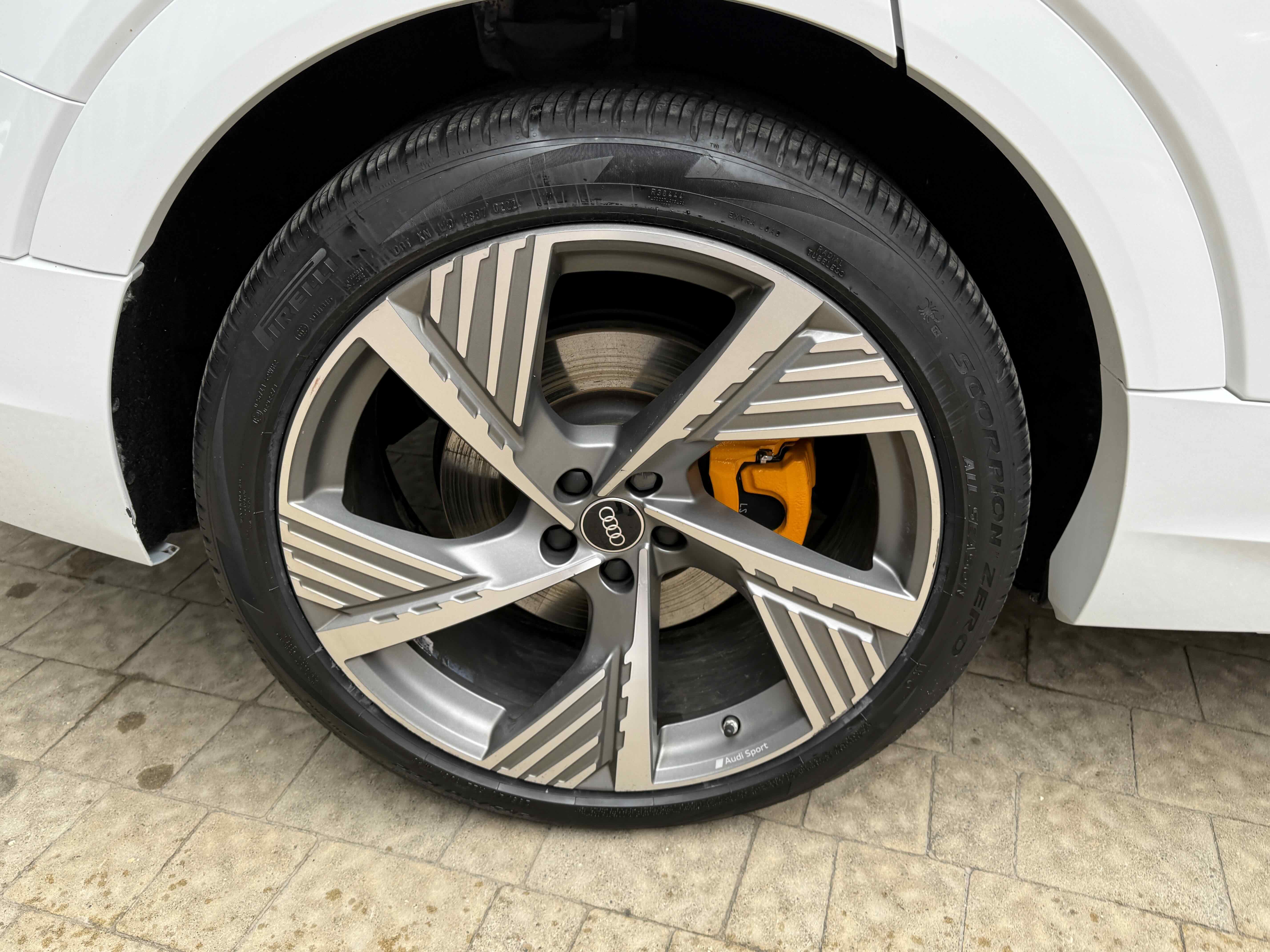 Електрокросовер побудований на модернізованій під розташування батарей платформі MLB Evo, знайомої нам по іншим великим кроссоверам Audi і концерну VAG загалом. Його довжина становить 4901 мм, ширина - 1935 мм, а висота - 1616 мм, і кожен з цих габаритів менше, ніж у купеподібного Q8. Колісна база також поступається за розмірами - 2928 мм проти майже 2995 у Q8. Але конструкції підвісок у автомобілів ідентичні - спереду встановлена двохважільна підвіска, ззаду - багатоважільна, а пневматична система (яка є базовим оснащенням) дозволяє змінювати дорожній просвіт (на швидкості - мінус 26 мм, на поганій дорозі - до плюс 50 мм).