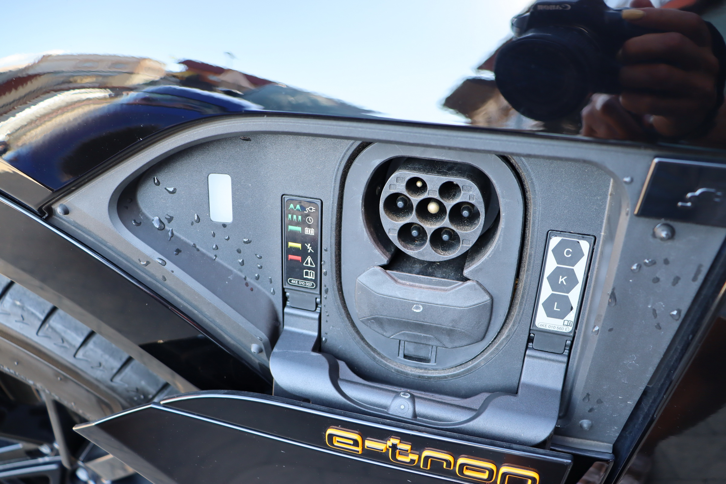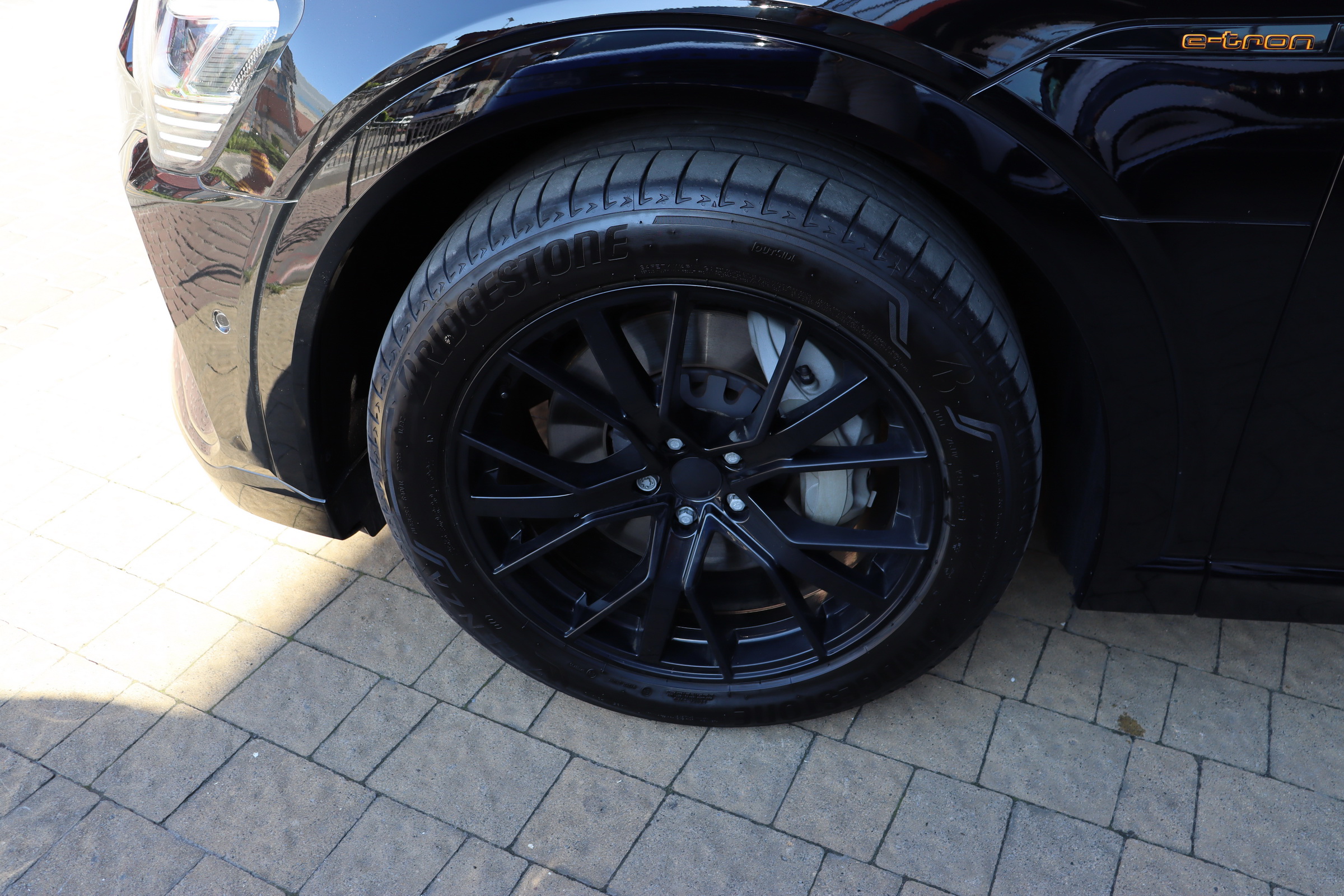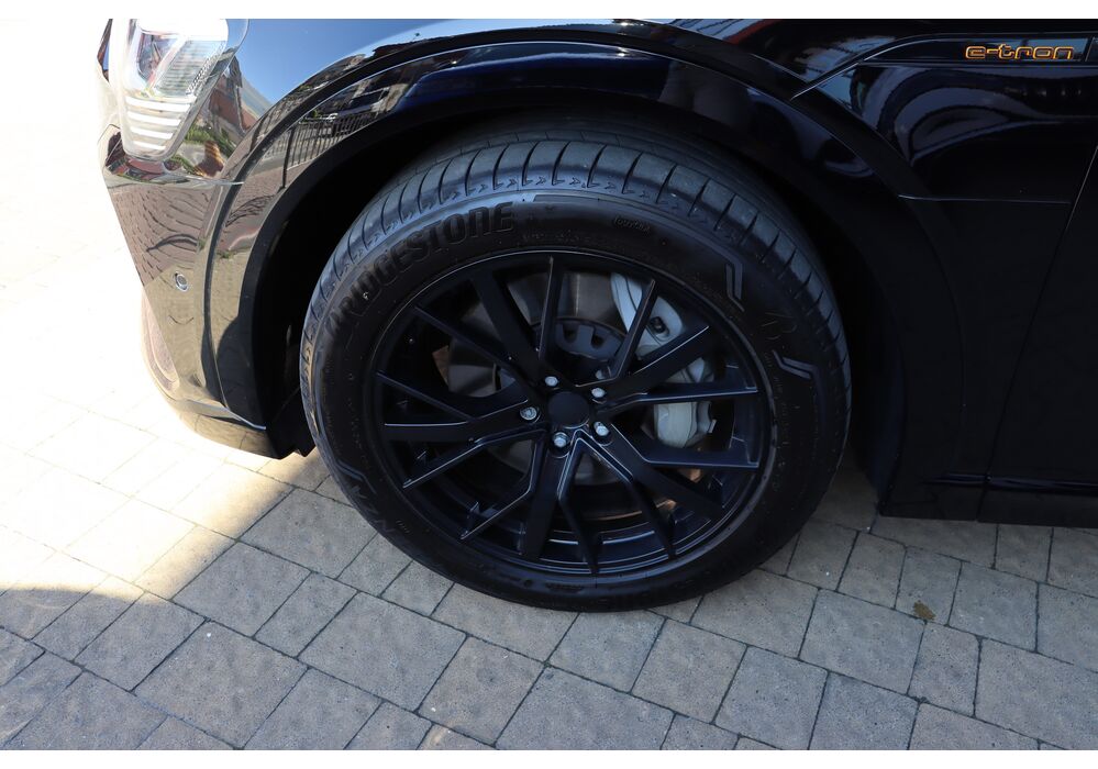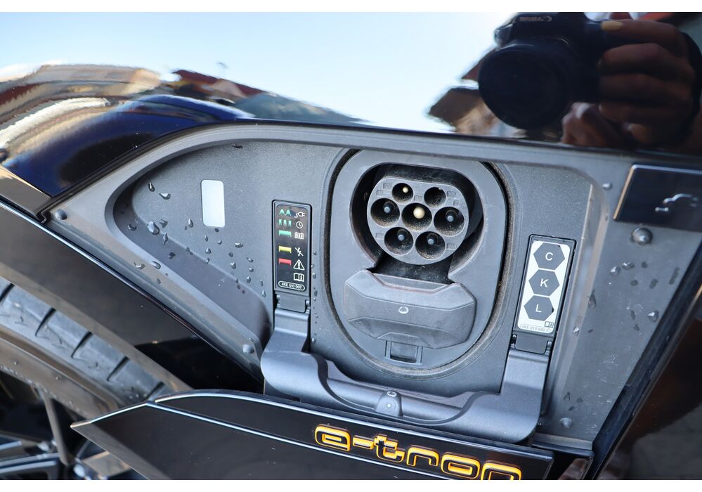 Силовою установкою (для версії e-tron 55 quattro) є два асинхронних електромотора (кожен приводить в рух свою вісь), які в сумі видають 360 к.с. і 560 Нм крутного моменту, але на хвилину здатні збільшувати віддачу до 408 «коней» і 664 Нм. Вони харчуються від 95-кіловатної літій-іонної батареї (яка важить 700 кг), розташованої в єдиному корпусі в межах колісної бази. Батарея працює з напругою в 400 вольт. Зарядитися від базового 11-кіловатного терміналу можна за 8.5 годин, від 22-кіловатного - за 4.5 години. А ось від суперчарджера на 150 кВт батарею можна наповнити на 80% за півгодини. Цікавою особливістю автомобіля є два порти для зарядки - панелі з обох сторін передніх крилах (відкриваються за допомогою кнопок на люках), але 150-кіловатний можна підключити тільки зліва.