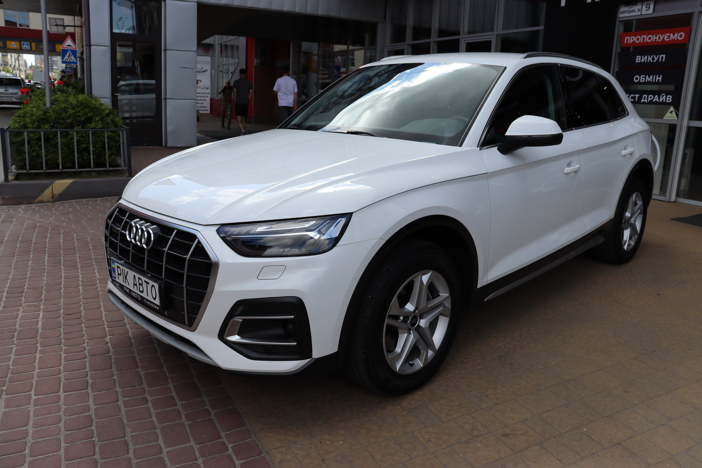 Внаслідок модернізації кросовер Audi зберіг відомий вигляд, змінившись у зовнішніх деталях (що логічно, адже Q5 займає лідируючі позиції з продажу у своєму класі на ринках Європи). Головна оптика (в «базі» – діодна, але доступна і матрична) отримала змінений малюнок, окантування фальшрадіаторної решітки звузилася (що самі ґрати візуально збільшило), а передній бампер формує більш агресивний вигляд кросовера завдяки вищим (імітованим) зонам вставками.