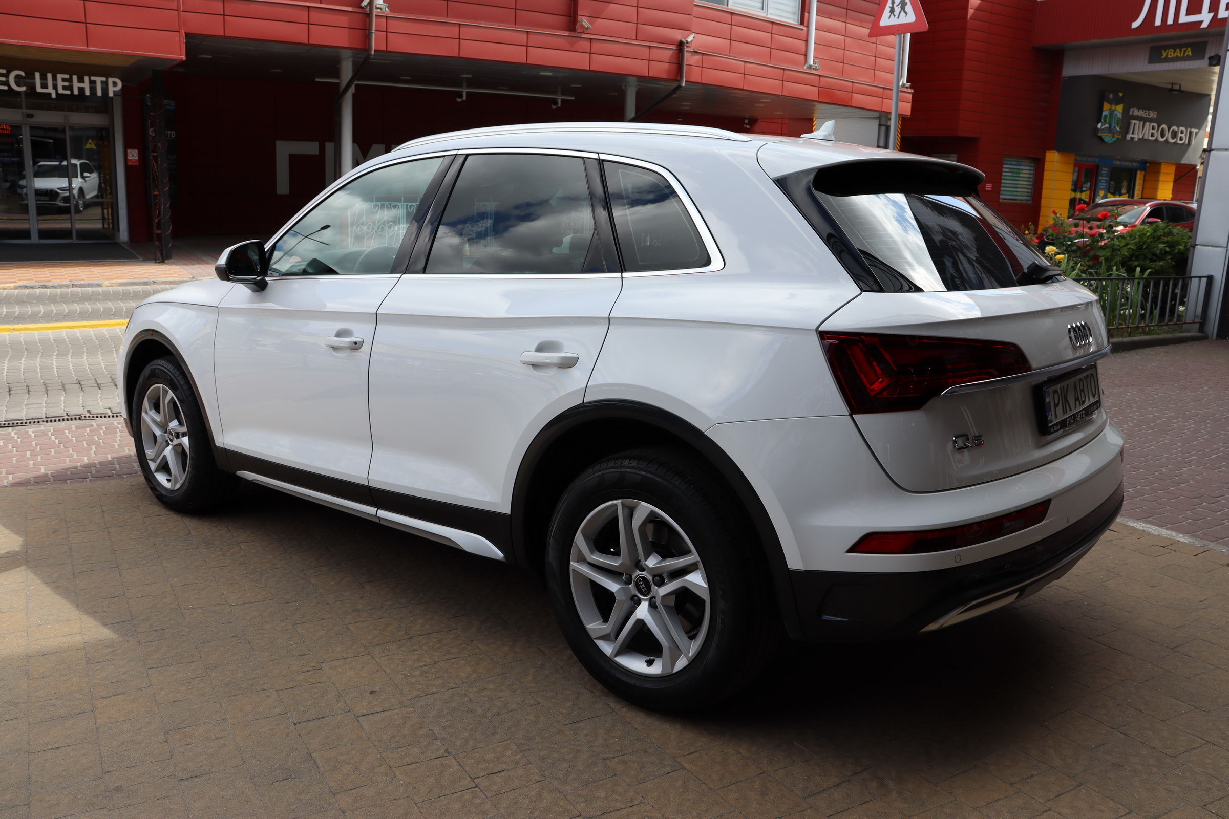 «Профіль» автомобіля відрізняється завдяки трохи піднятим порогами, а також – у максимальних комплектаціях – 21-дюймовим колесам (раніше найбільшими були 20-дюймові). Головною ж особливістю «корми» стали задні ліхтарі з органічними діодами (OLED), специфікою яких є рівномірне та дуже яскраве світло, а також мінімальні зазори між сегментами. Такі ліхтарі оснащені функцією зміни світла при наближенні об'єкта: якщо до нерухомого Q5 під'їде автомобіль на відстань менше двох метрів, світитимуться всі сегменти задніх ліхтарів; коли ж кросовер почне рух, ліхтарі повертаються до початкового світлового малюнка.