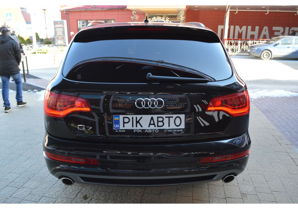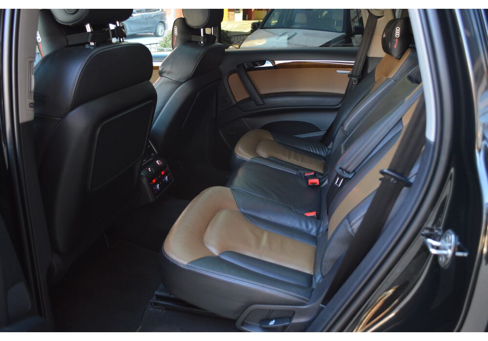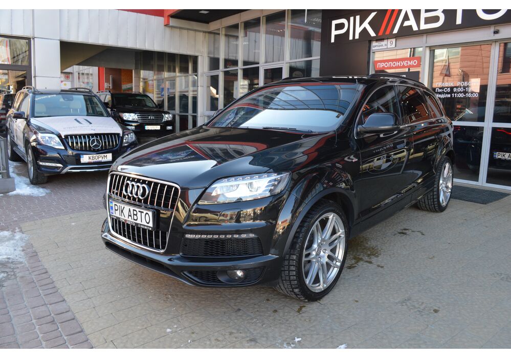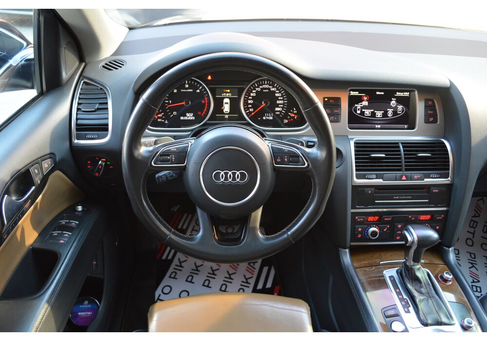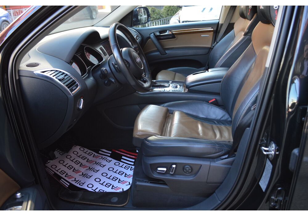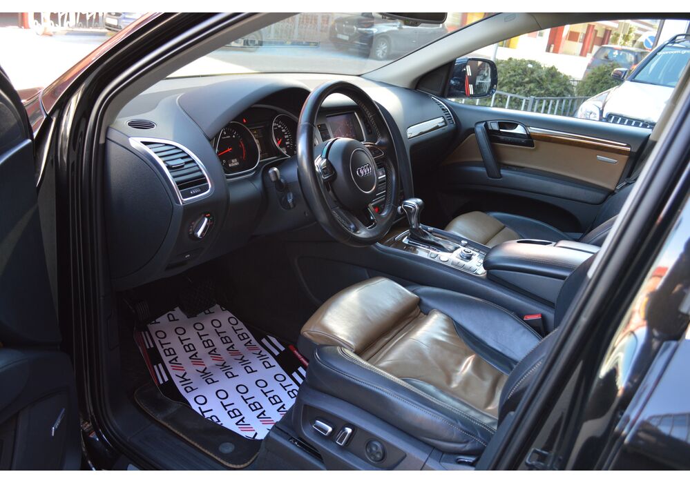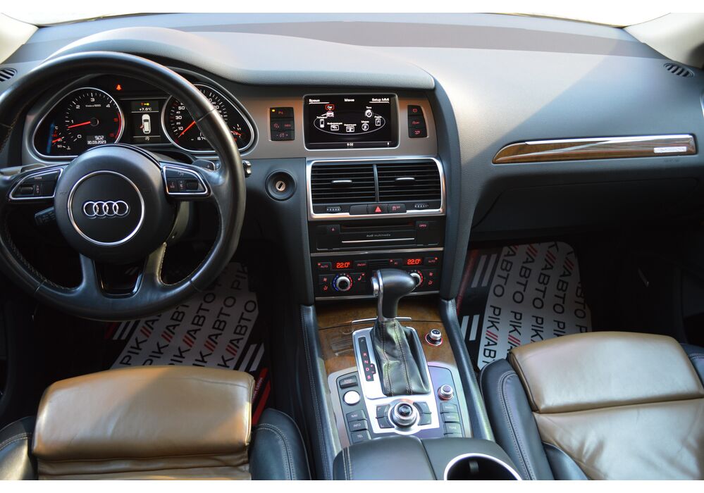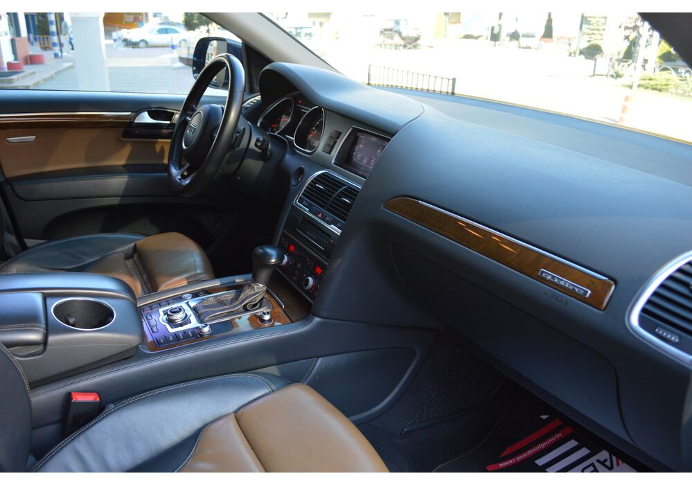 Модернізований автомобіль Audi Q7 2013 модельного року отримав новий бампер, видозмінену фальшрадиаторную грати і світлодіодну оптику. П'ятиметрова машина Audi Q7 має значний вид. Величезні бічні дзеркала забезпечують чудову оглядовість водієві позашляховика. Інтер'єр Ауді Ку7 2012 доповнився світлодіодним підсвічуванням. Панель приладів обладнана новим дисплеєм збільшених розмірів. Деталі салону «ку-сьомий» оброблені хромом.