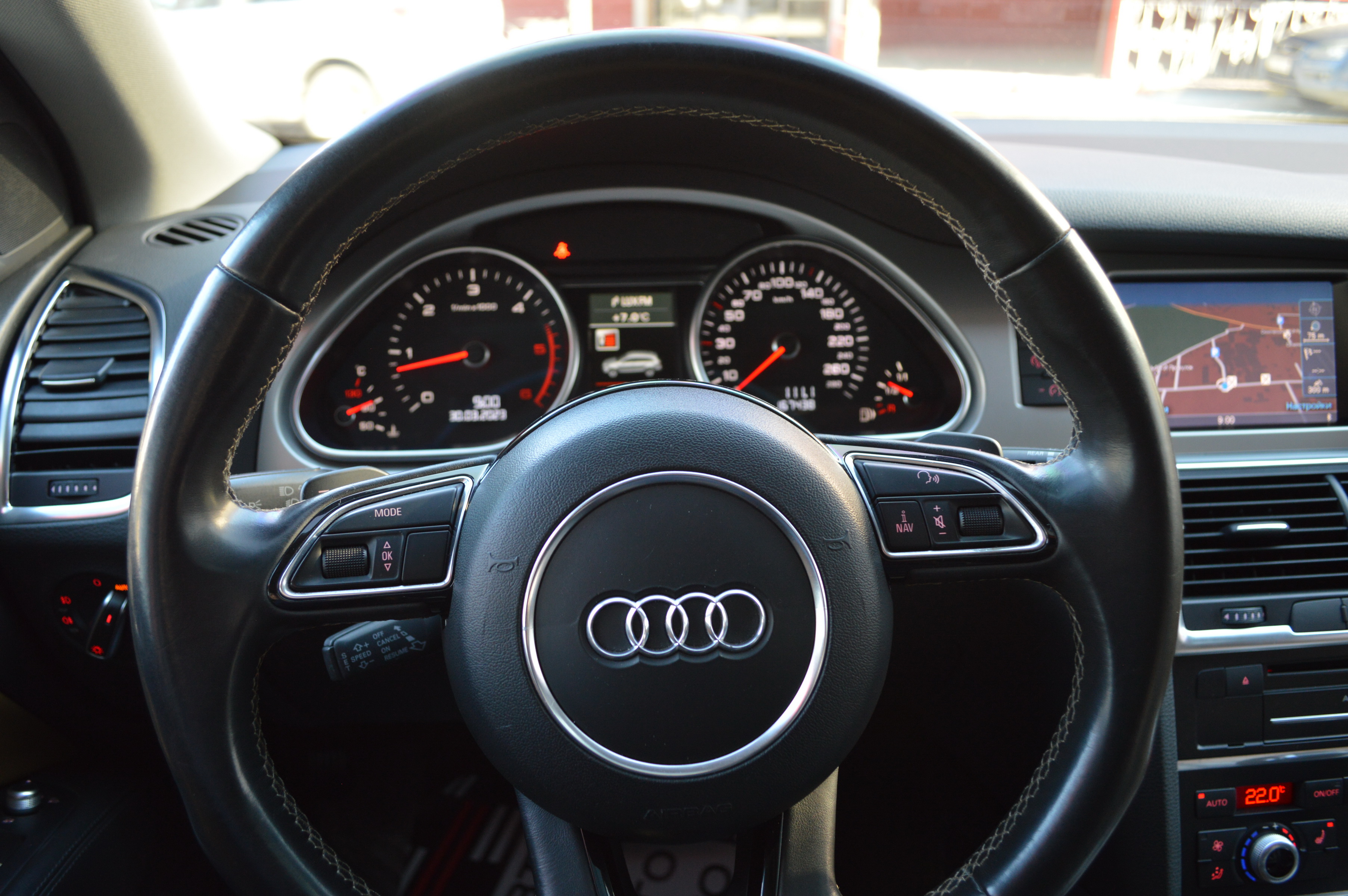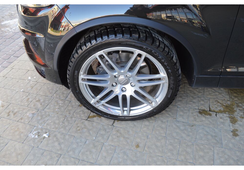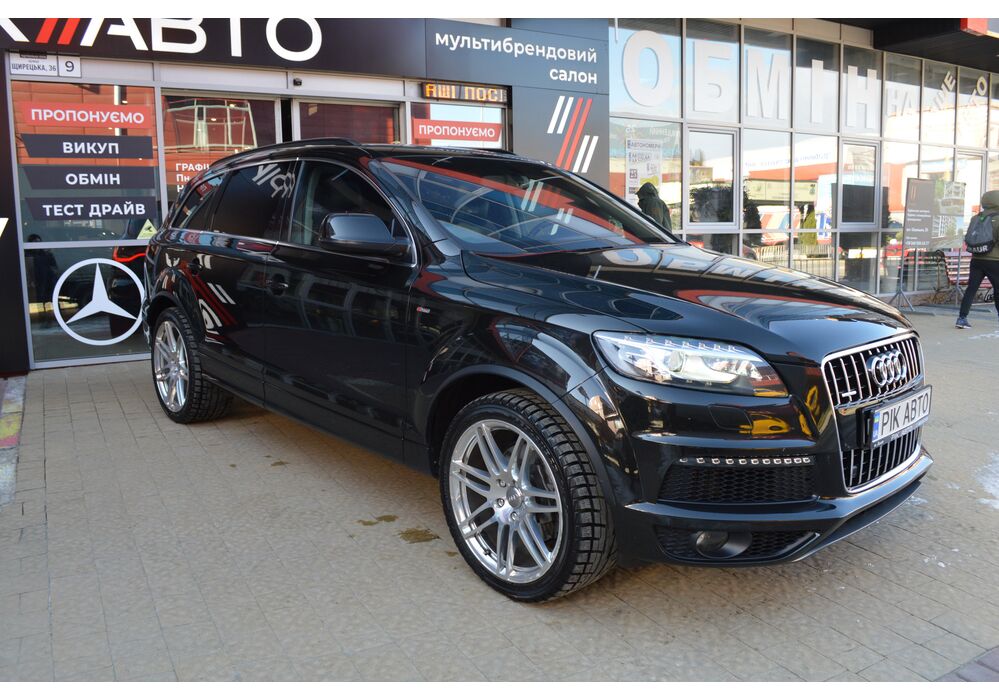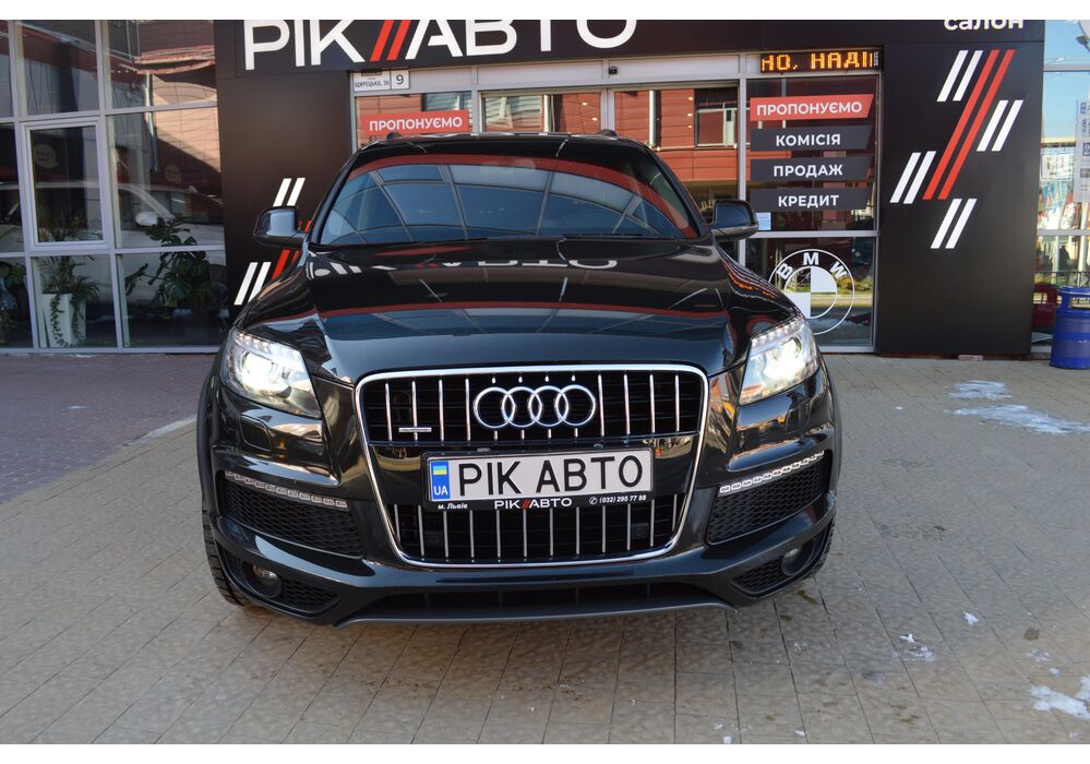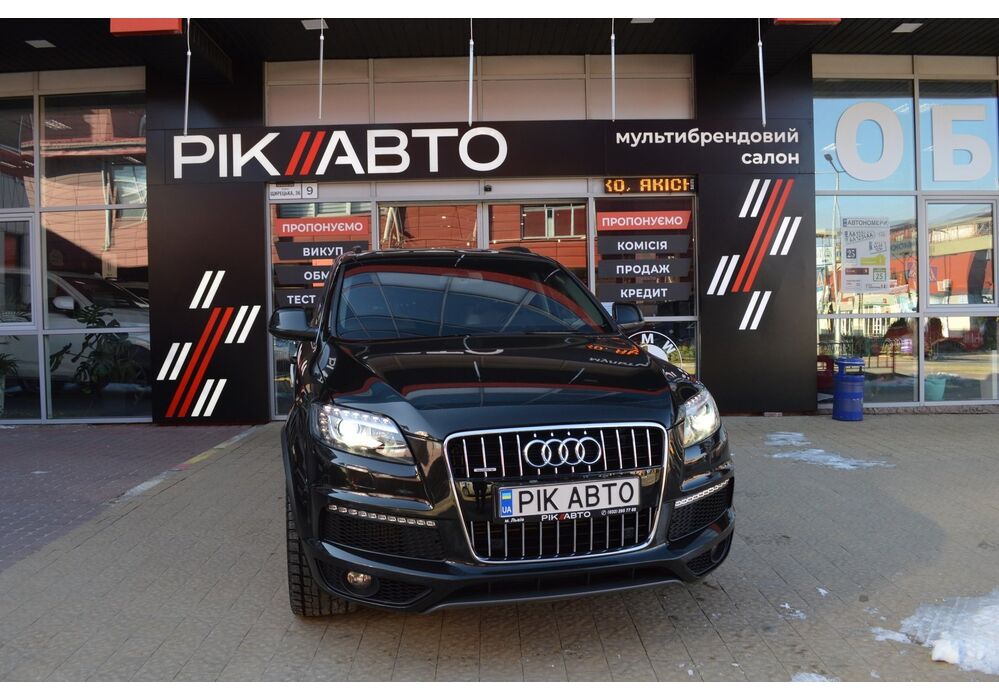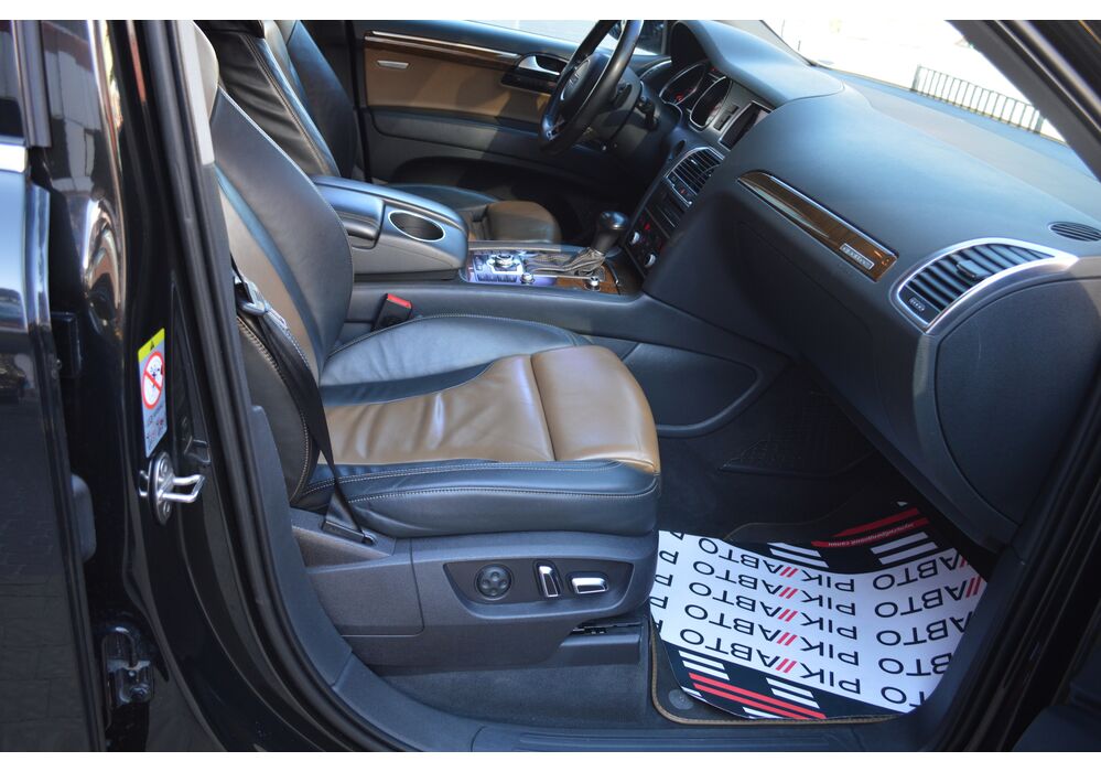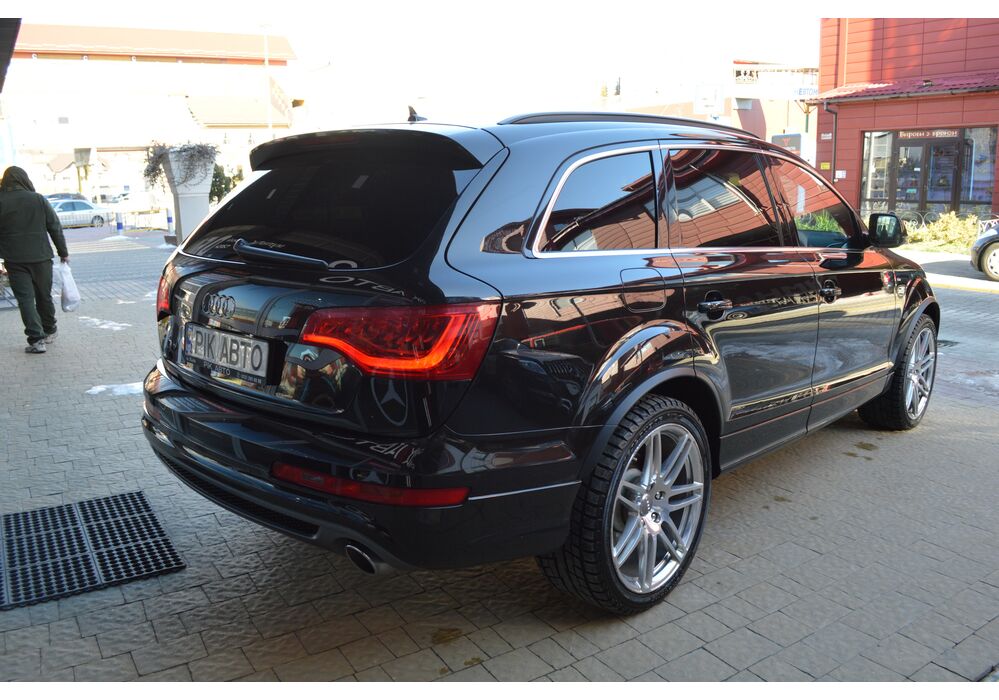 Модернізований автомобіль Audi Q7 2013 модельного року отримав новий бампер, видозмінену фальшрадиаторную грати і світлодіодну оптику. П'ятиметрова машина Audi Q7 має значний вид. Величезні бічні дзеркала забезпечують чудову оглядовість водієві позашляховика. Інтер'єр Ауді Ку7 2012 доповнився світлодіодним підсвічуванням. Панель приладів обладнана новим дисплеєм збільшених розмірів. Деталі салону «ку-сьомий» оброблені хромом.