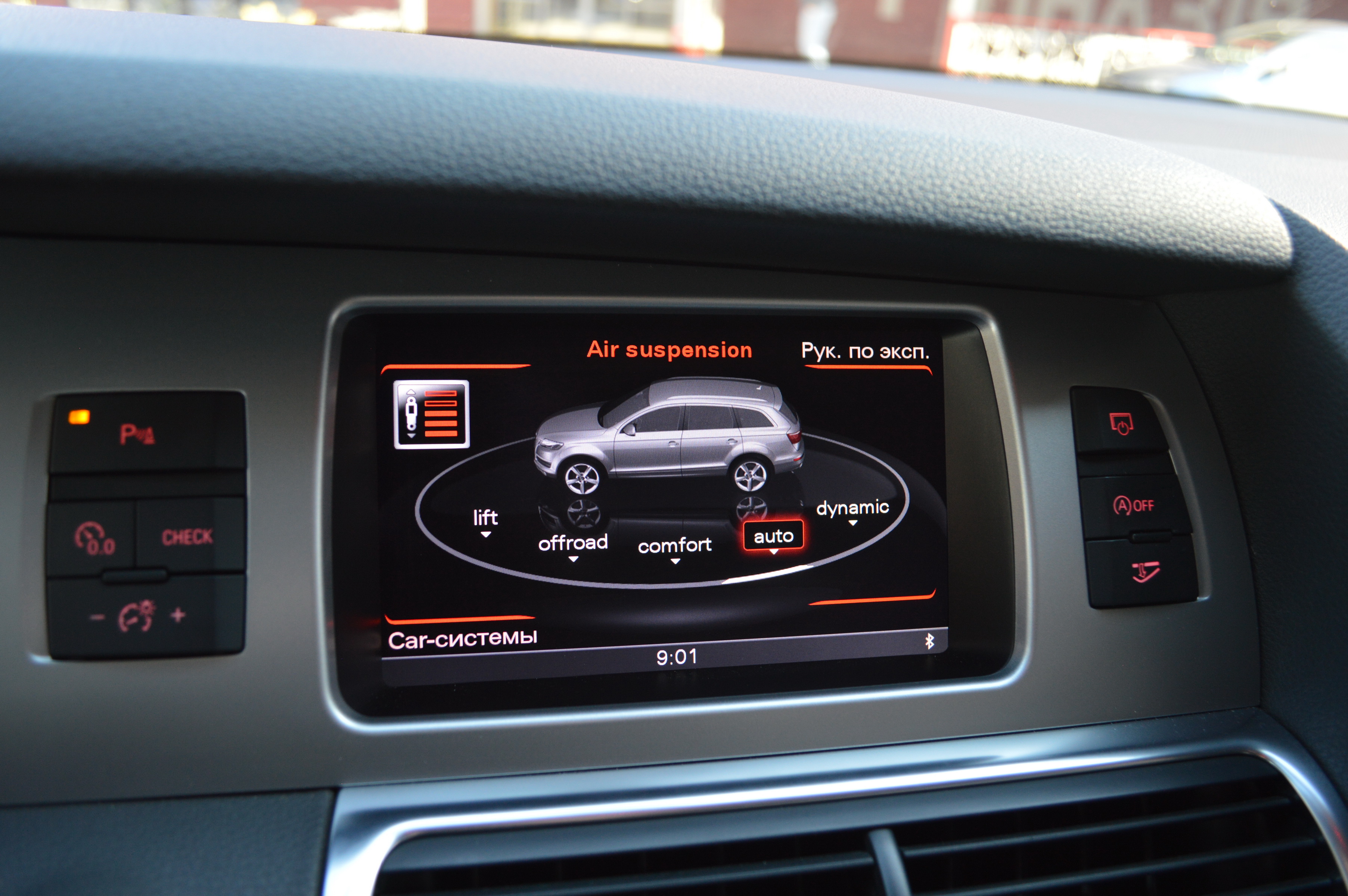 З невеликого пульта, розташованого на подіумі біля важеля КПП, можна управляти і навігацією, і зв'язком, і вибирати режими водіння. Для зручності передбачені клавіші швидкого доступу до всіх перерахованих системам. Натискаєте "Nav", і ось ви вже в меню навігатора, "Tel" - телефону. І - далі за списком.