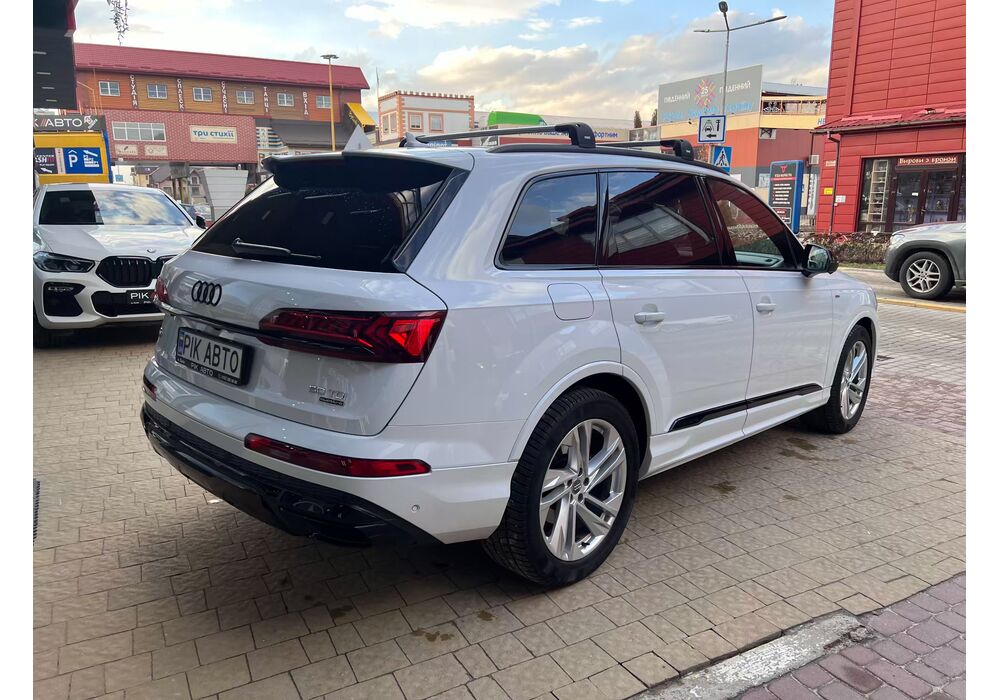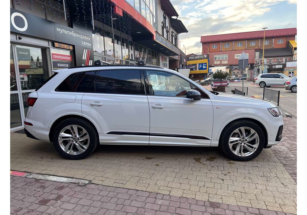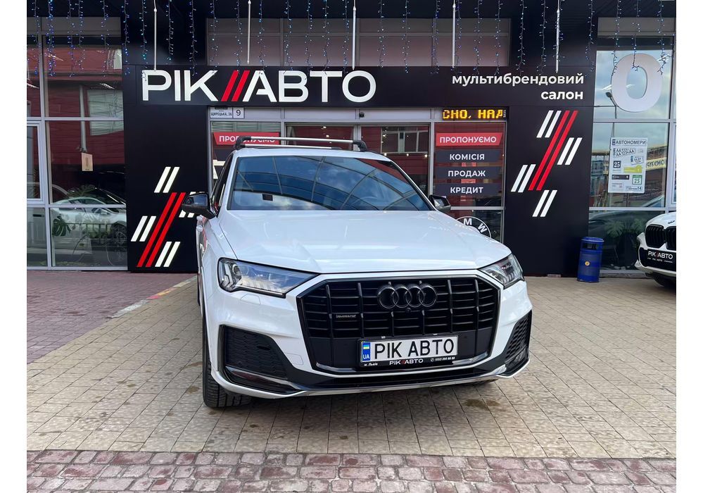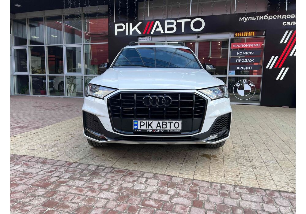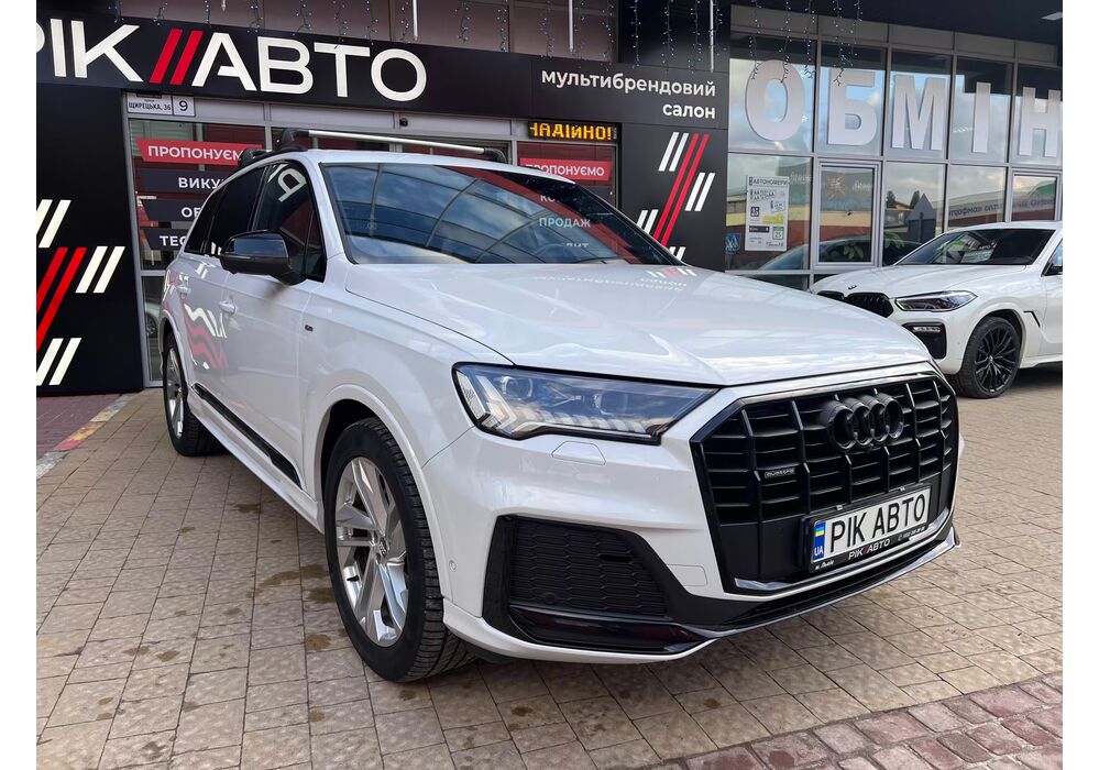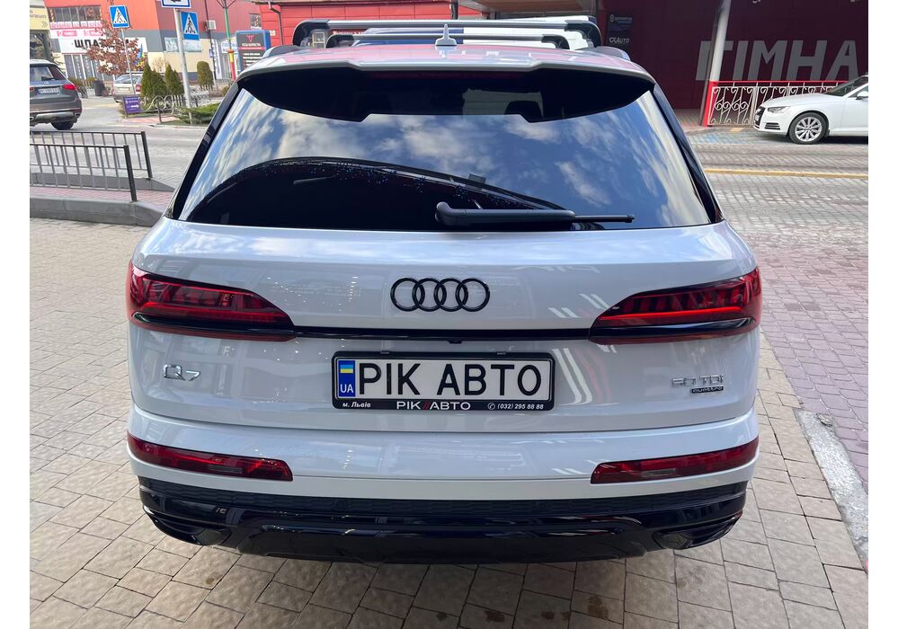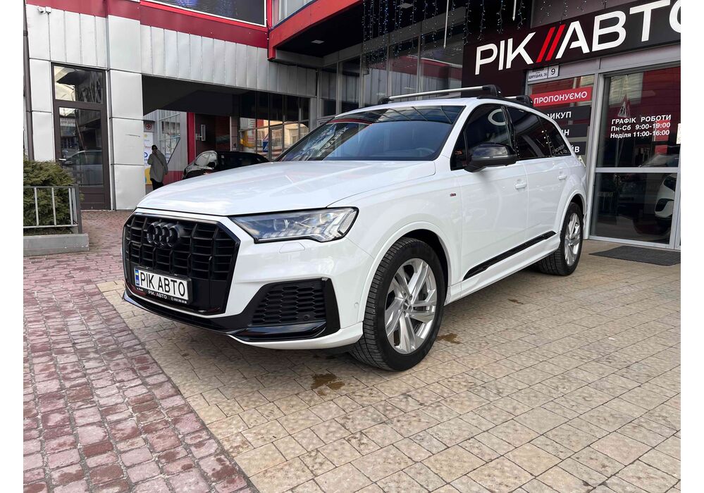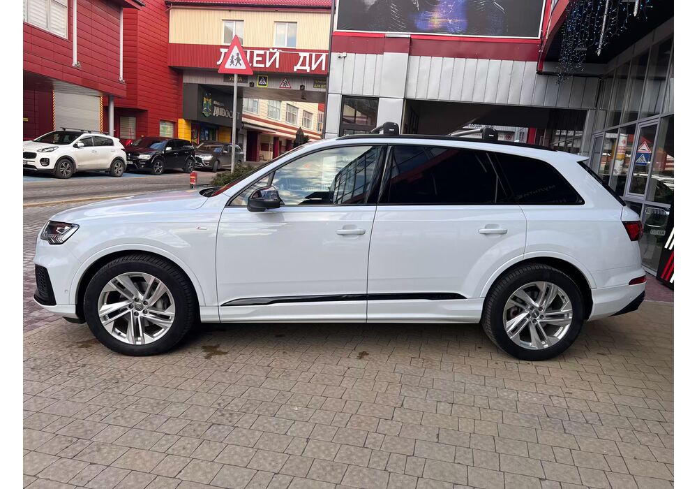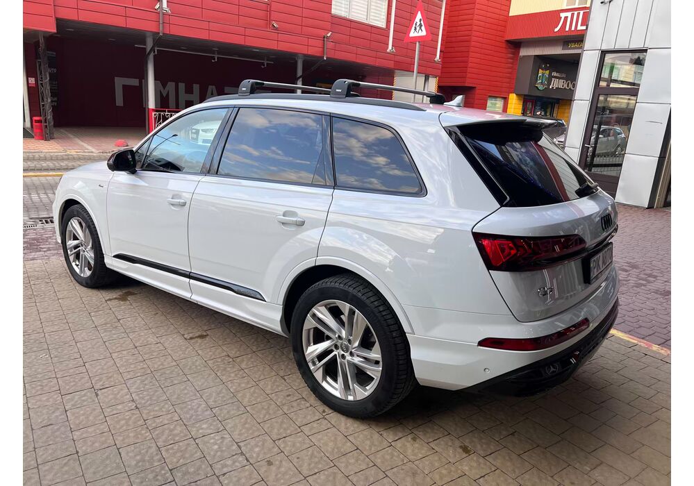Audi Q7 (Ауді Q7) - повнопривідний кросовер класу «К3». Дебют рестайлінгової версії другого покоління моделі відбувся в червні 2019 року.Оновлений Audi Q7 отримав нову радіаторну решітку з масивними вертикальними прутами ( «візитна картка» останніх SUV марки), іншу більш агресивну оптику (в базі світлодіодна, за доплату - лазерно-люмінофоний дальній) і змінені бампера через які кросовер став на 11 мм довше (5063 мм). Крім цього, на кормі з'явилася хромована перемичка, яка не тільки з'єднує між собою нові світлодіодні задні ліхтарі, а ще й візуально розширює пропорції автомобіля, хоч сама ширина «Ку7» не змінилася - 1970 мм, втім, як висота (1741р мм) і колісна база (2994 мм).