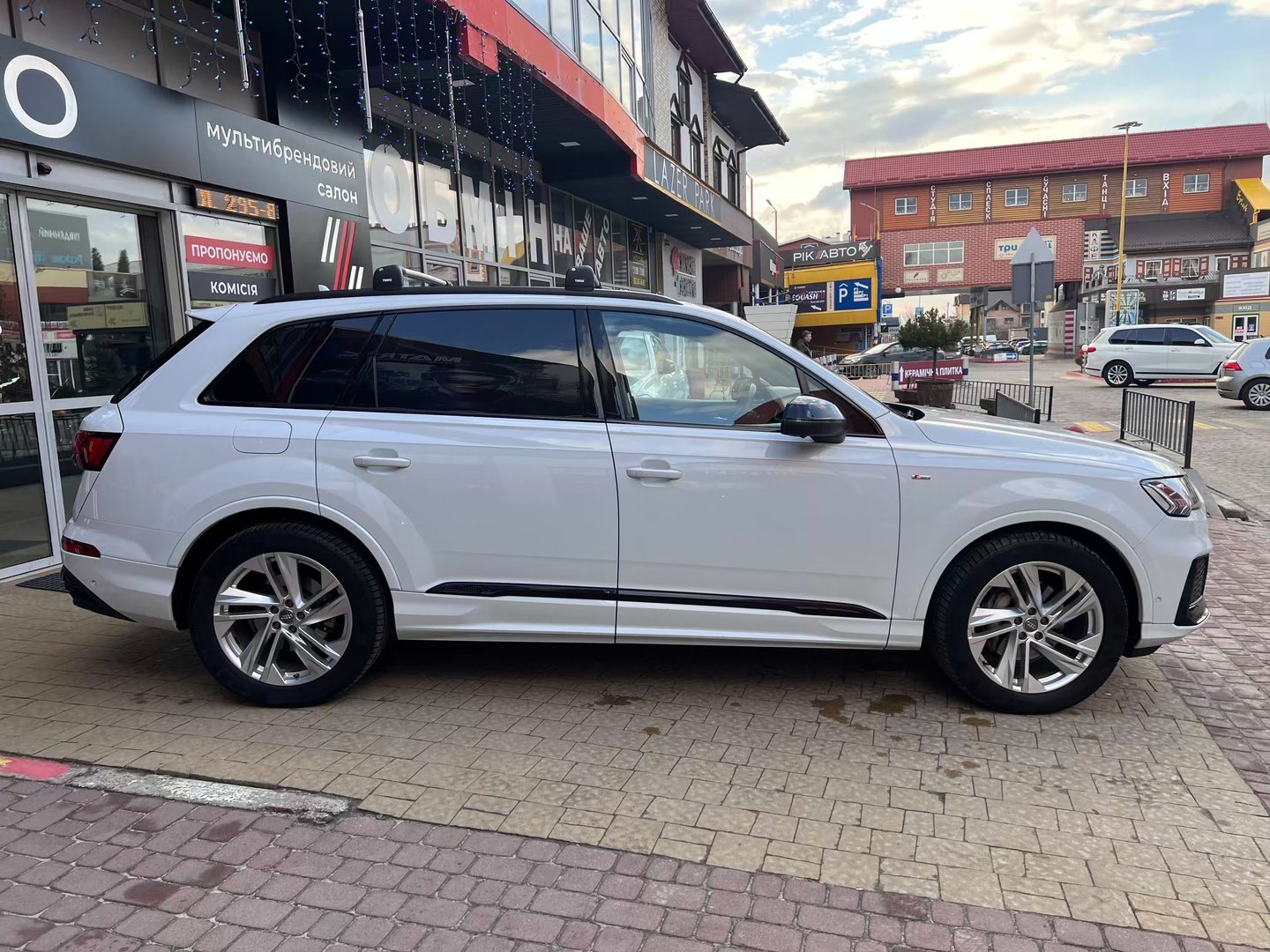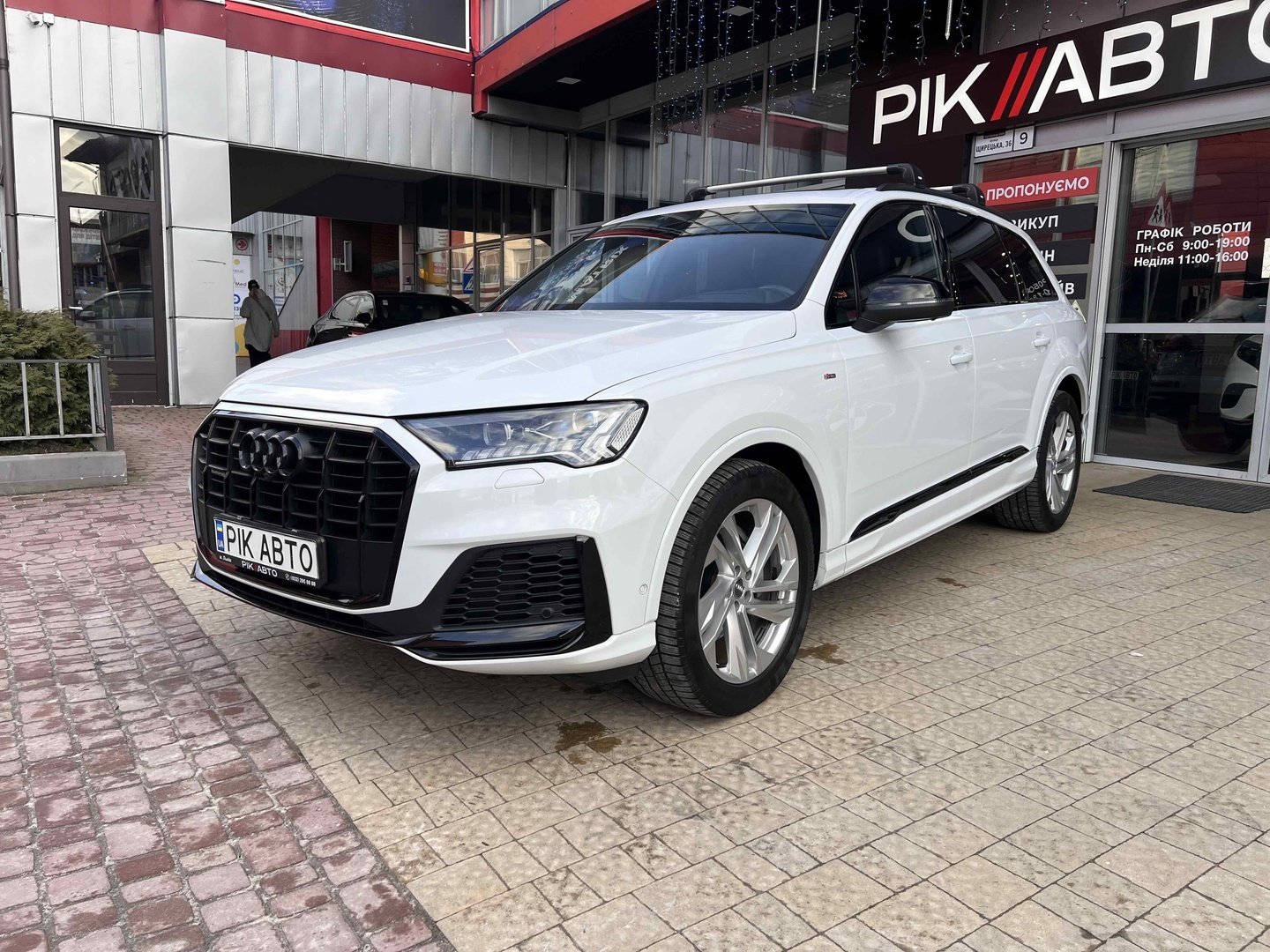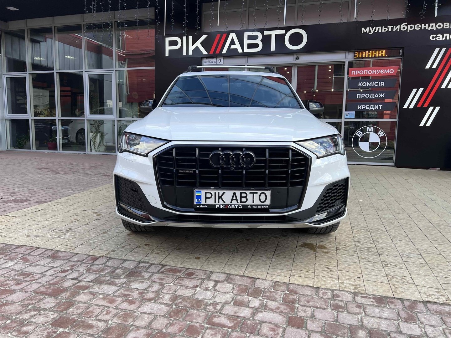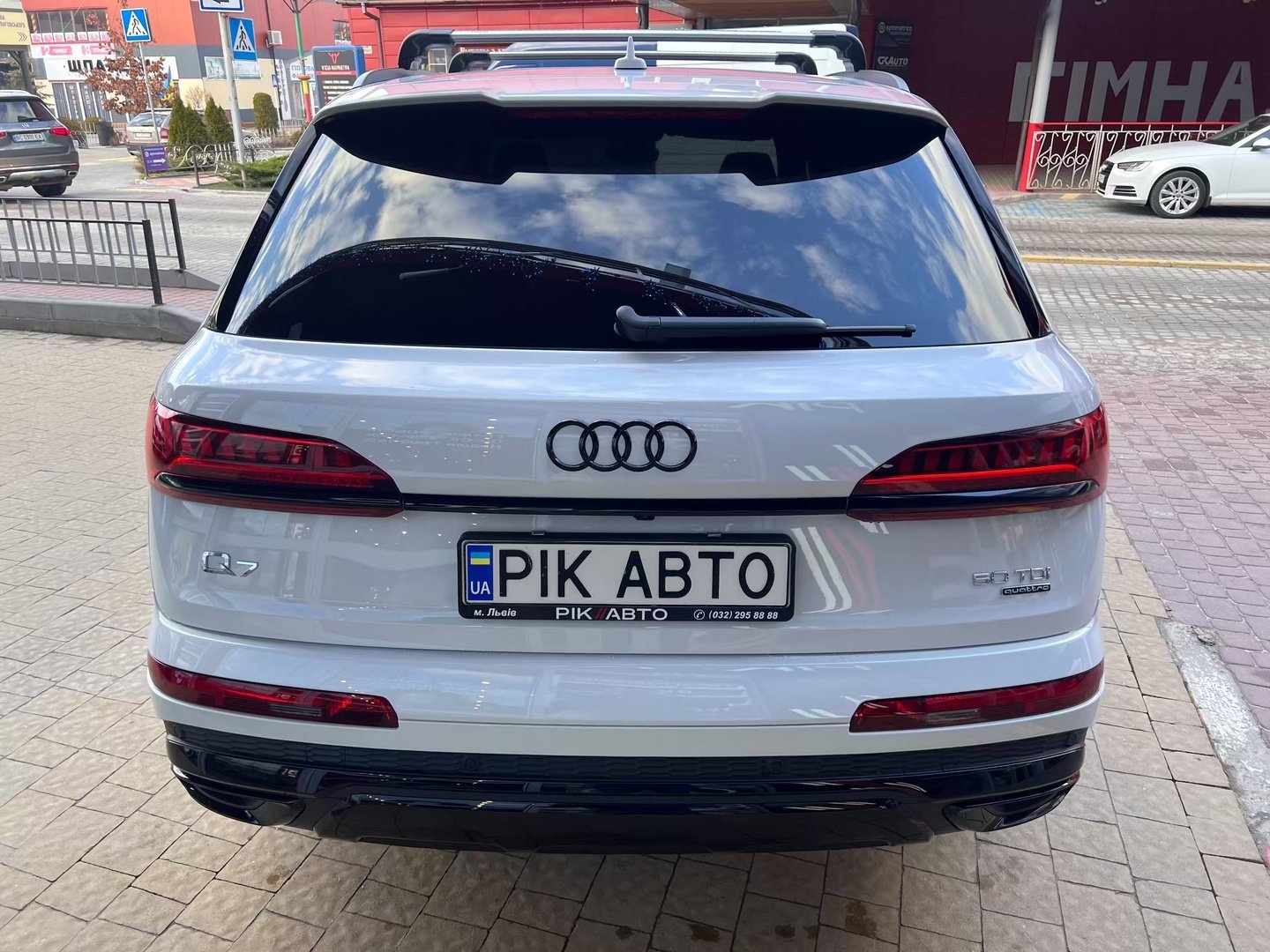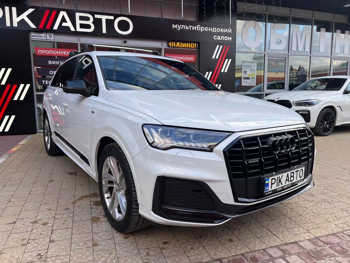 Audi Q7 (Ауді Q7) - повнопривідний кросовер класу «К3». Дебют рестайлінгової версії другого покоління моделі відбувся в червні 2019 року.Оновлений Audi Q7 отримав нову радіаторну решітку з масивними вертикальними прутами ( «візитна картка» останніх SUV марки), іншу більш агресивну оптику (в базі світлодіодна, за доплату - лазерно-люмінофоний дальній) і змінені бампера через які кросовер став на 11 мм довше (5063 мм). Крім цього, на кормі з'явилася хромована перемичка, яка не тільки з'єднує між собою нові світлодіодні задні ліхтарі, а ще й візуально розширює пропорції автомобіля, хоч сама ширина «Ку7» не змінилася - 1970 мм, втім, як висота (1741р мм) і колісна база (2994 мм).