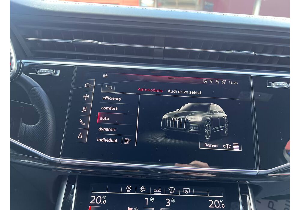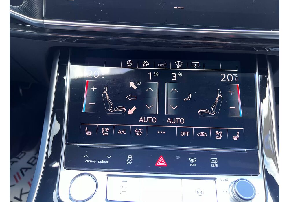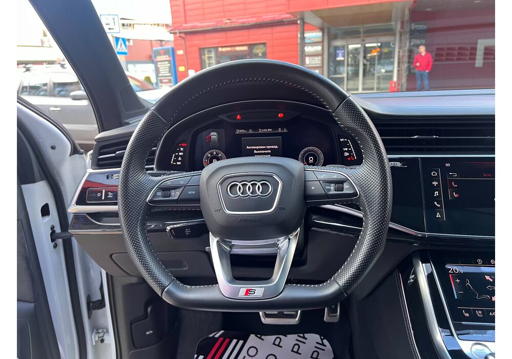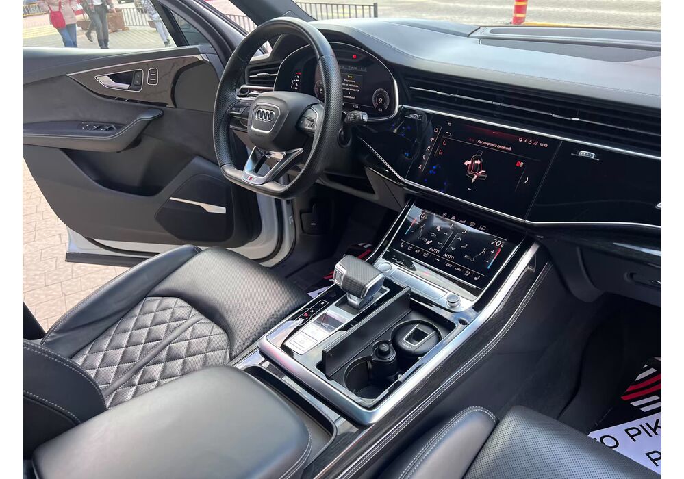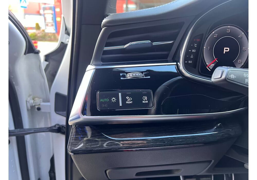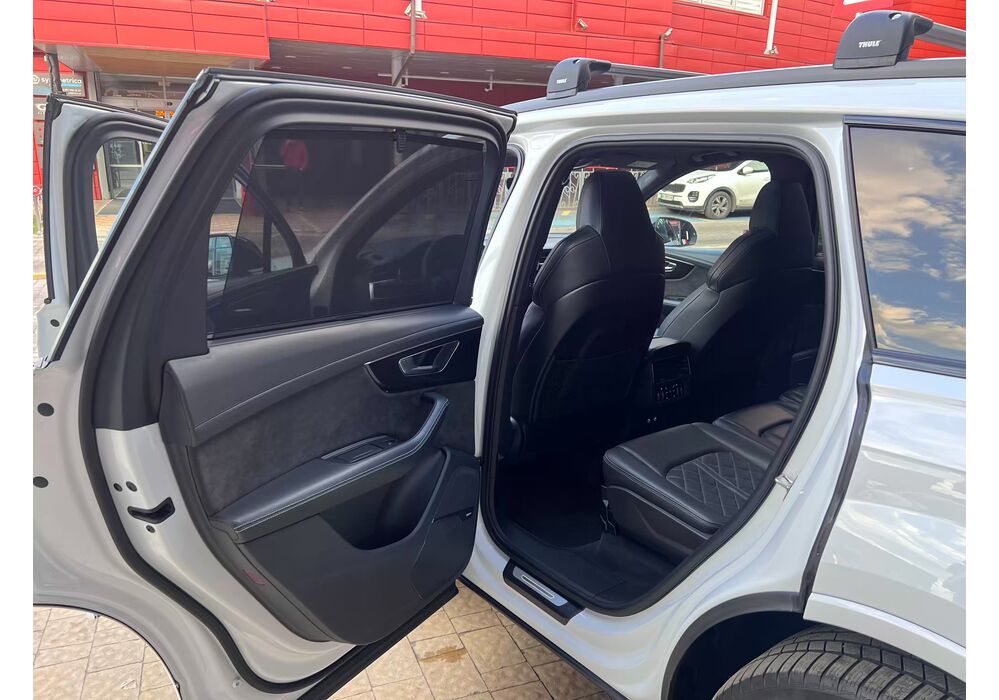 У списку оснащення Ауді Ку7: проекція, панорамний верх, круговий огляд з 3D-картинкою, підігрів вентиляція і масаж сидінь, чотирьохзонний клімат, обігрів рульового колеса, аудіосистема Bang & Olufsen (23 динаміка, підсилювач, сабвуфер) потужністю 1920 Ватт, нічне бачення, адаптивний круїз, утримання в смузі, контроль «мертвих» зон і екстрене гальмування.