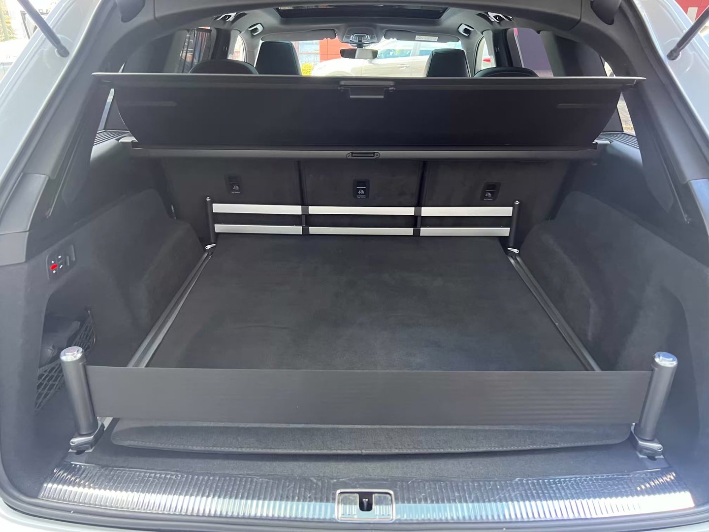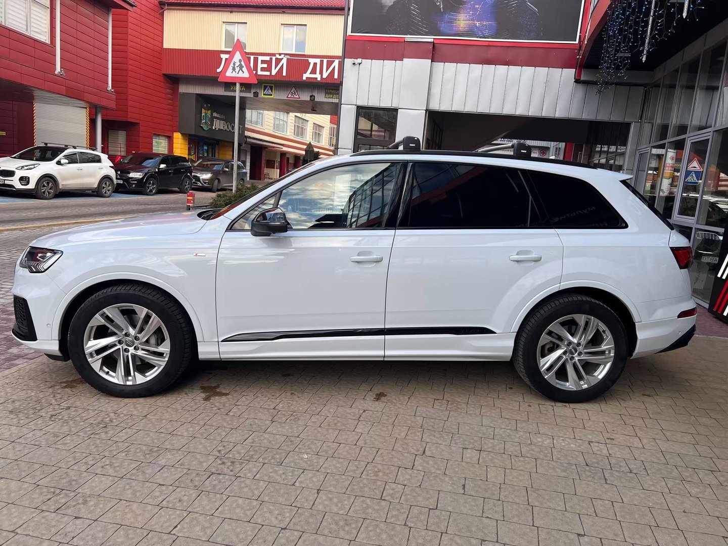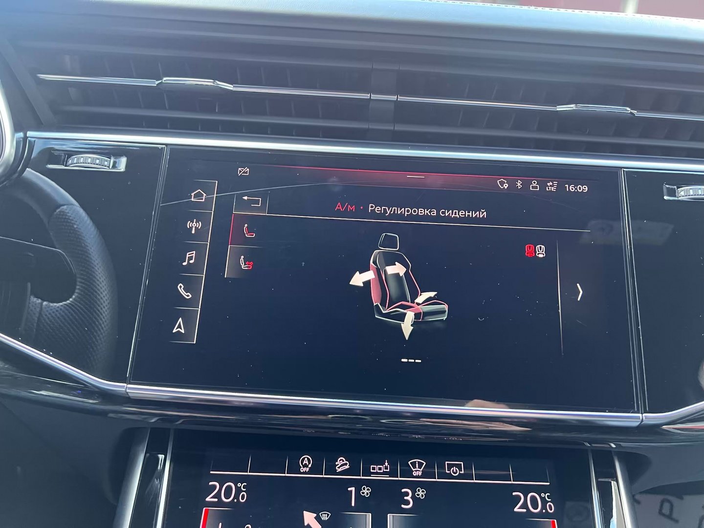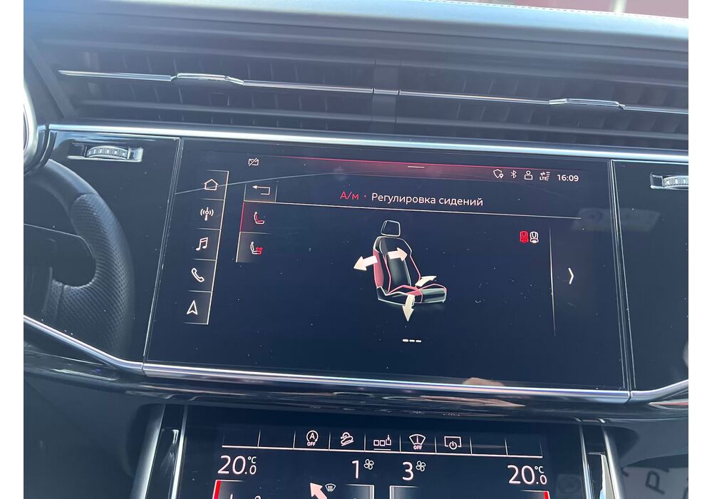 У списку оснащення Ауді Ку7: проекція, панорамний верх, круговий огляд з 3D-картинкою, підігрів вентиляція і масаж сидінь, чотирьохзонний клімат, обігрів рульового колеса, аудіосистема Bang & Olufsen (23 динаміка, підсилювач, сабвуфер) потужністю 1920 Ватт, нічне бачення, адаптивний круїз, утримання в смузі, контроль «мертвих» зон і екстрене гальмування.