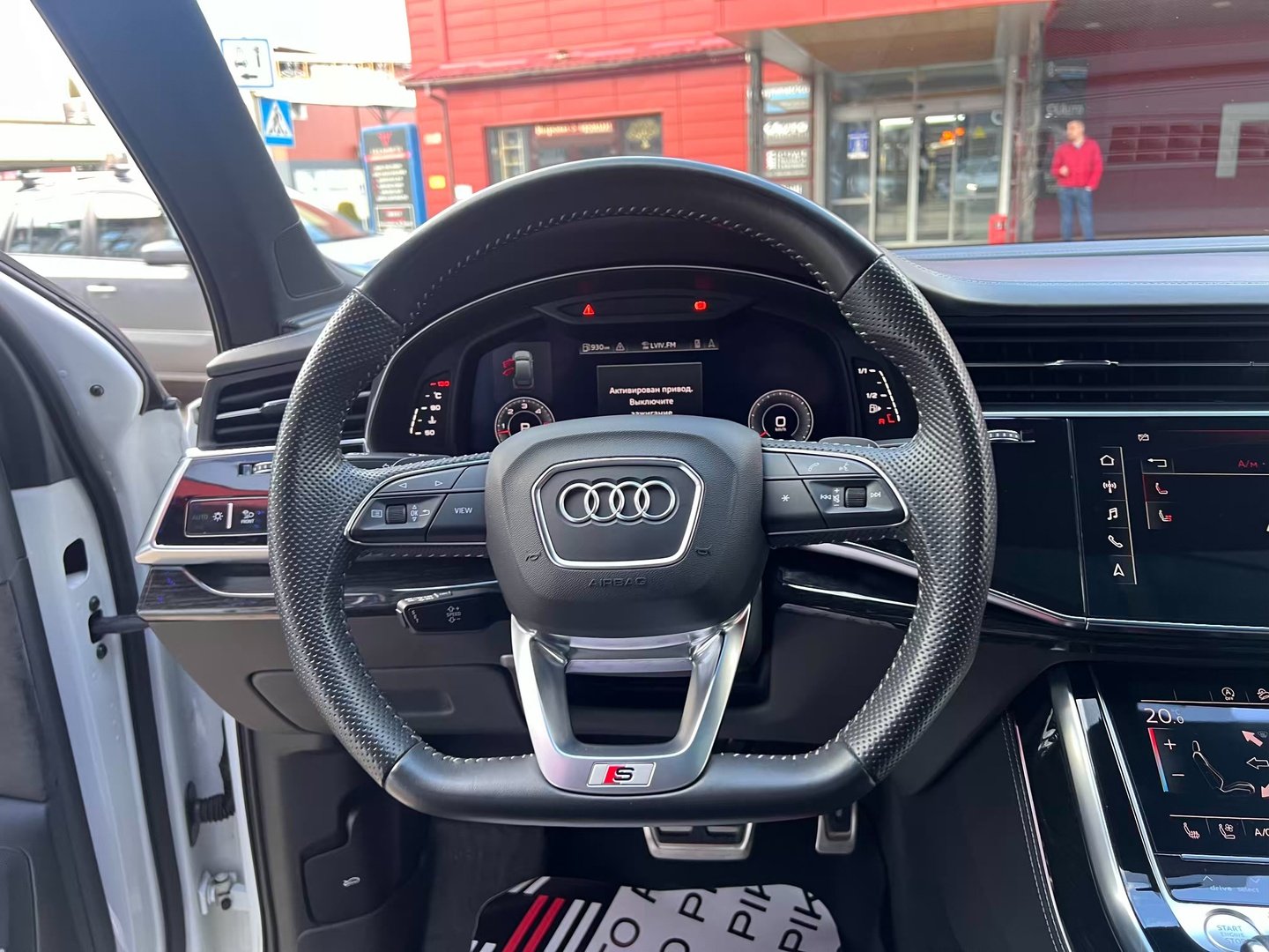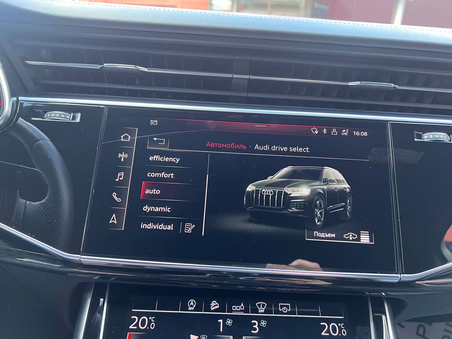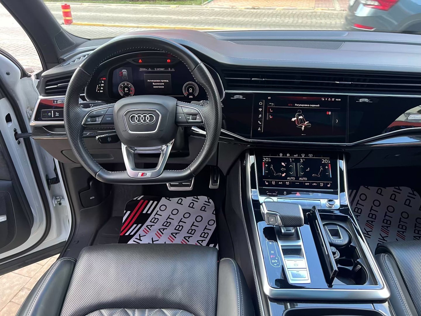 Інтер'єр не став чимось особливим - подібний салон є як у Q8, так і у легкових А6, А7 і А8. Тут точно така ж 12,3-дюймова віртуальна приборка з різною виведеної на неї інформацією, сенсорний 10,1-дюймовий центральний дисплей медіасистеми, що відповідає за безліч налаштувань і навігацію і 8,6-дюймовий тачскрін для введення тексту і управління кліматичною установкою. Виглядає все це витончено, сучасно і елегантно.