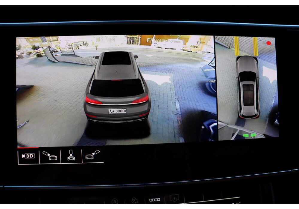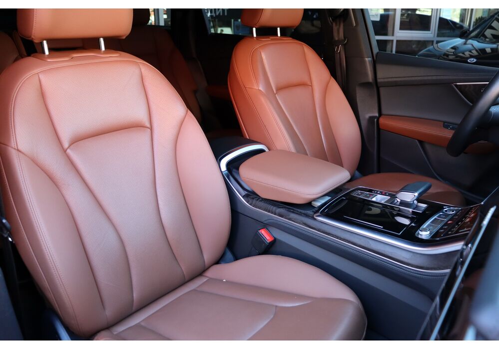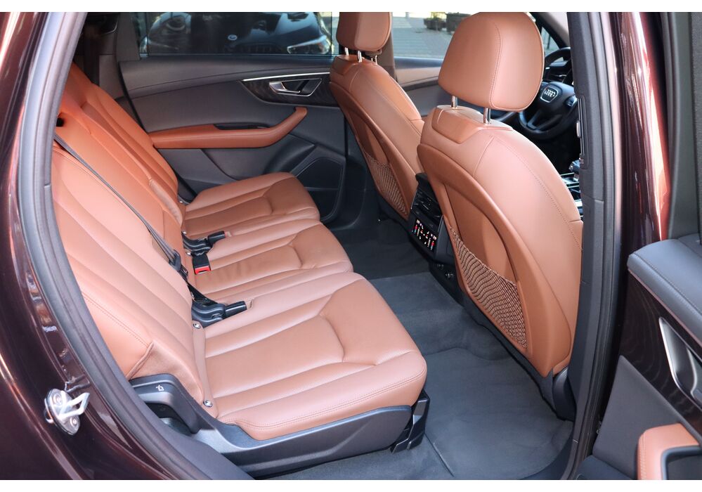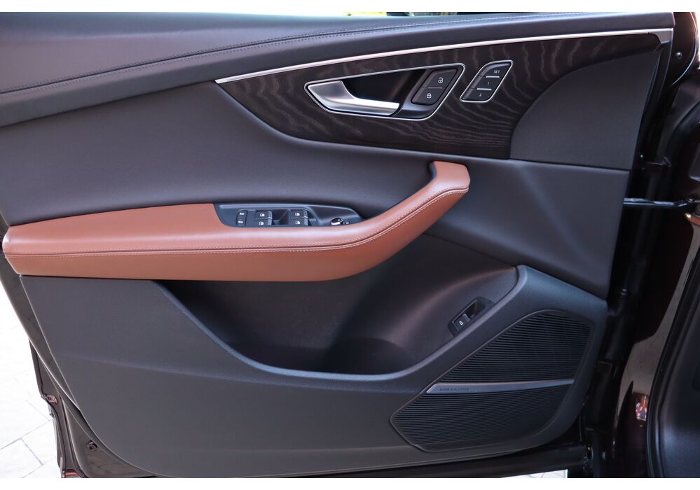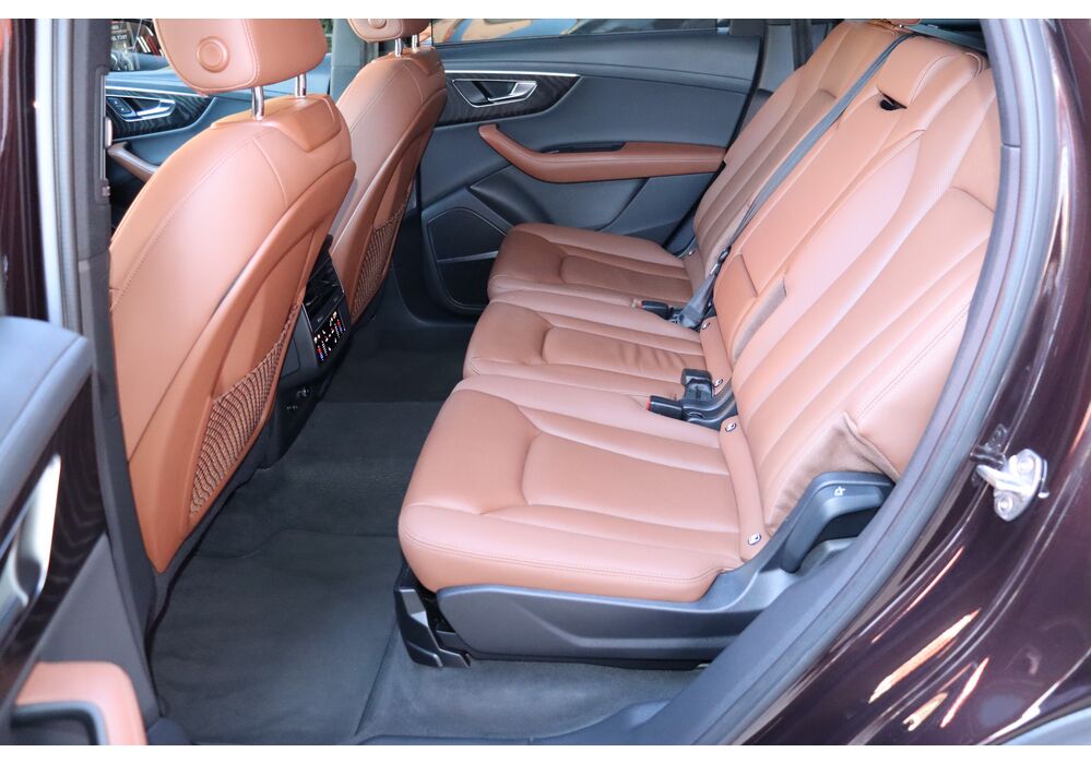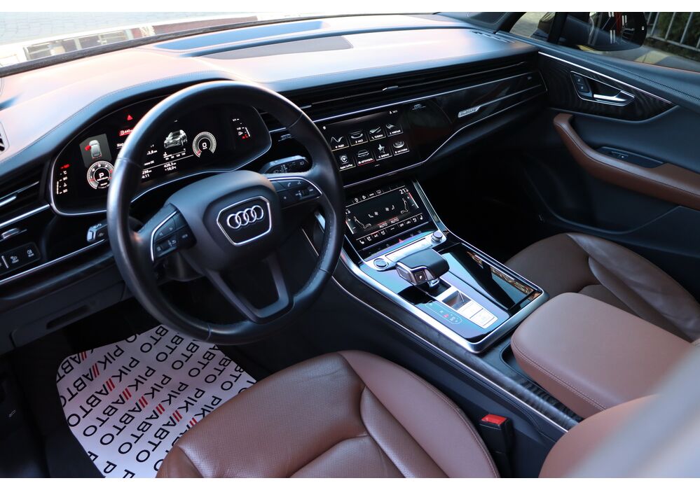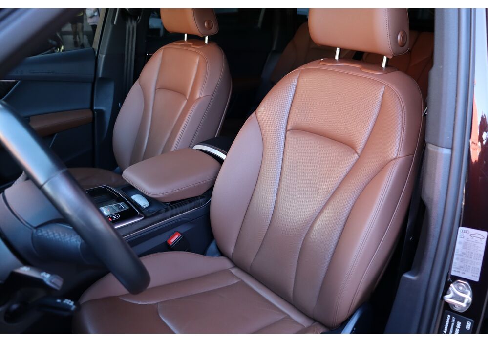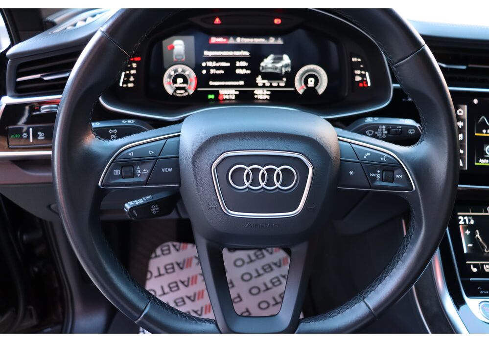 У списку оснащення Ауді Ку7: проекція, панорамний верх, круговий огляд з 3D-картинкою, підігрів вентиляція і масаж сидінь, чотирьохзонний клімат, обігрів рульового колеса, аудіосистема Bang & Olufsen (23 динаміка, підсилювач, сабвуфер) потужністю 1920 Ватт, нічне бачення, адаптивний круїз, утримання в смузі, контроль «мертвих» зон і екстрене гальмування.