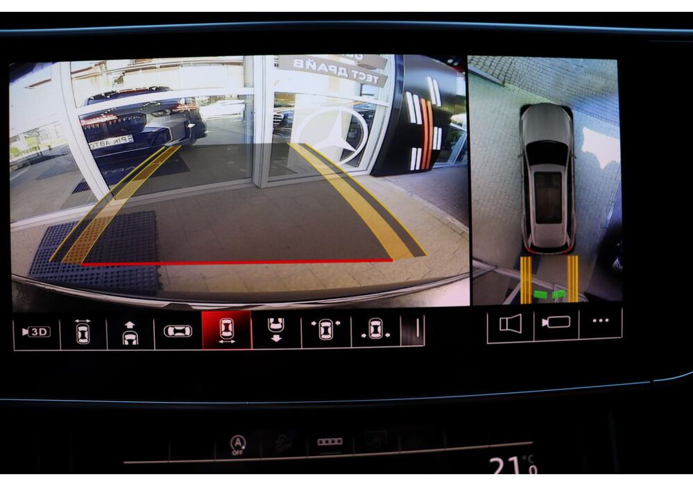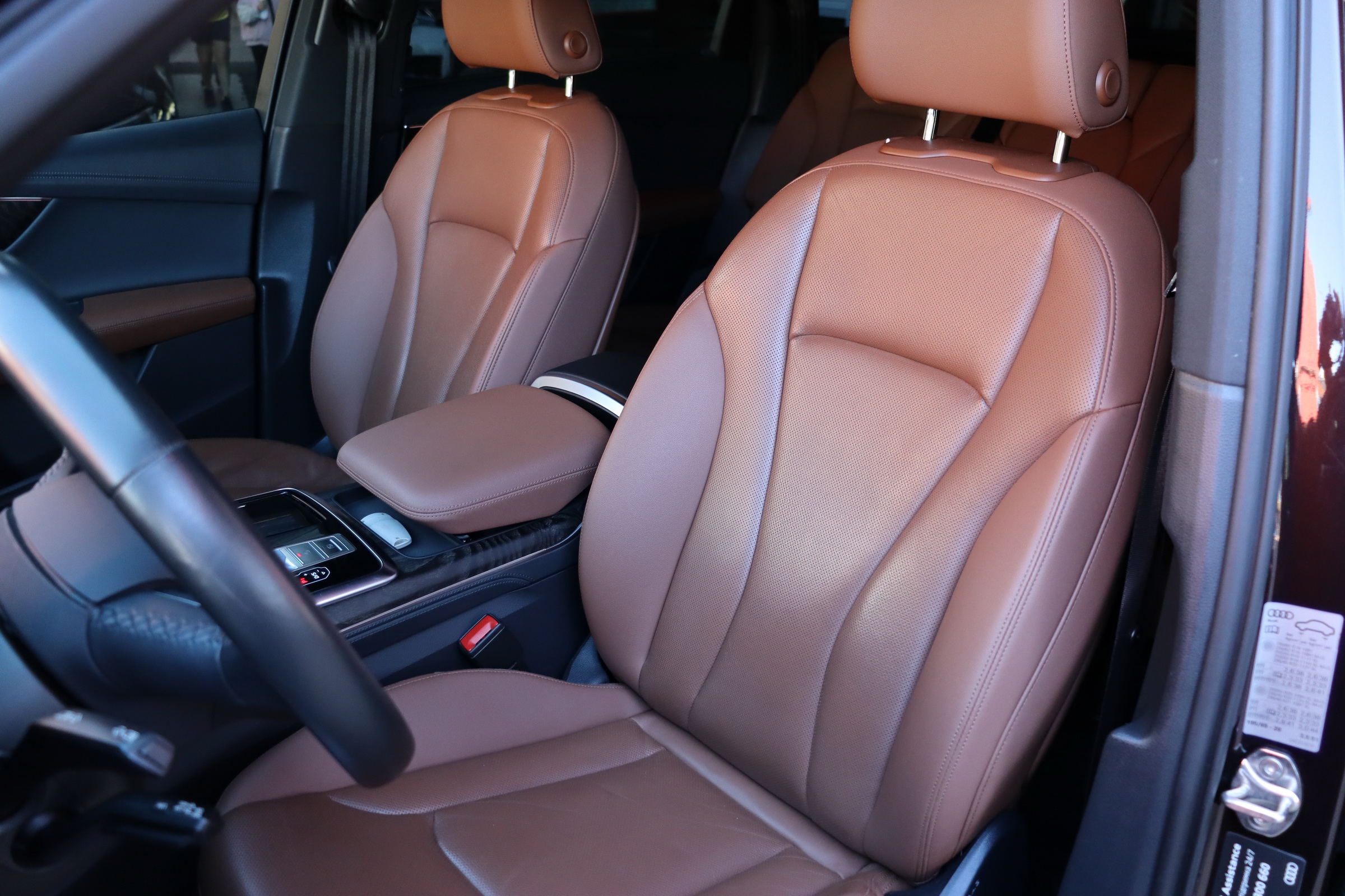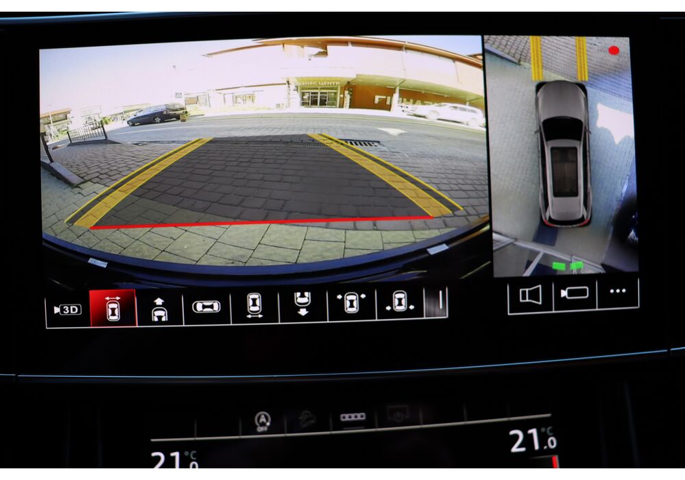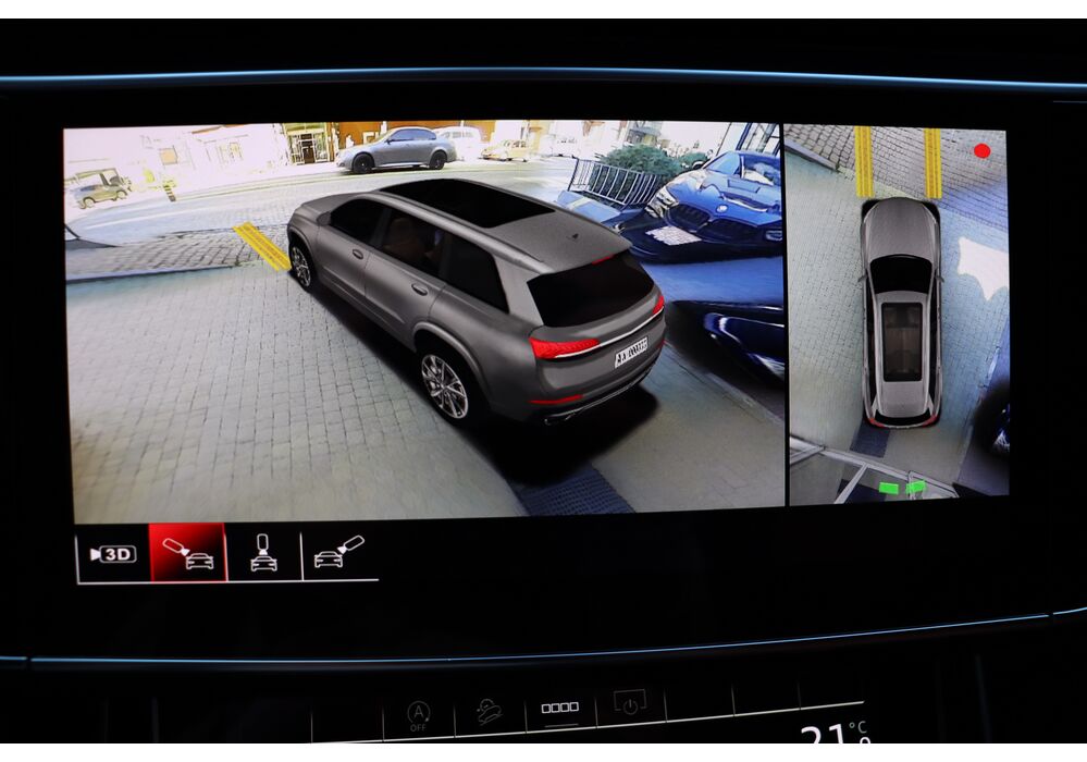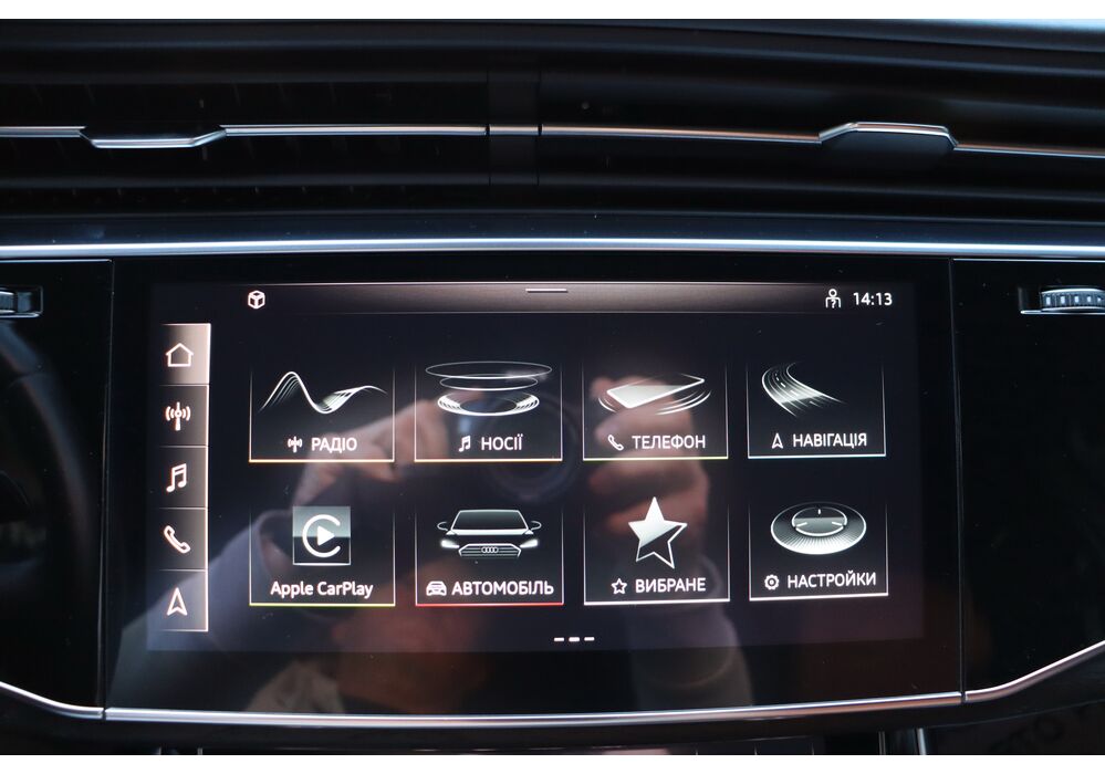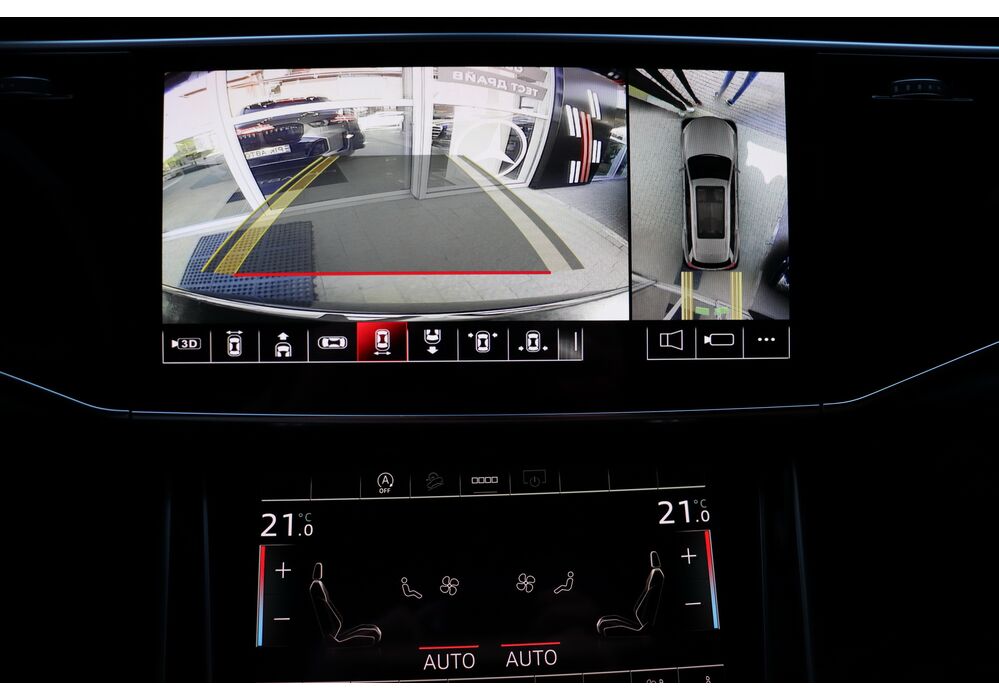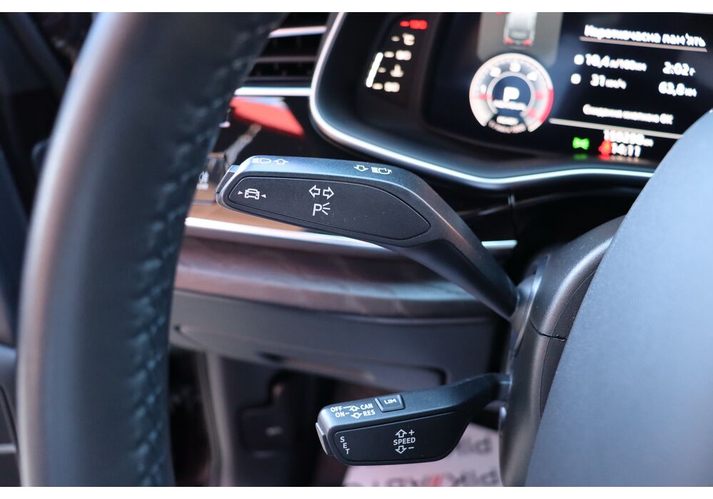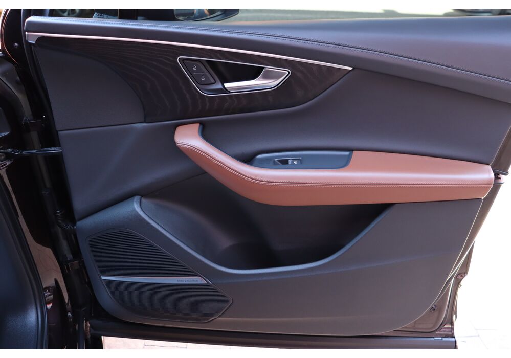 У списку оснащення Ауді Ку7: проекція, панорамний верх, круговий огляд з 3D-картинкою, підігрів вентиляція і масаж сидінь, чотирьохзонний клімат, обігрів рульового колеса, аудіосистема Bang & Olufsen (23 динаміка, підсилювач, сабвуфер) потужністю 1920 Ватт, нічне бачення, адаптивний круїз, утримання в смузі, контроль «мертвих» зон і екстрене гальмування.