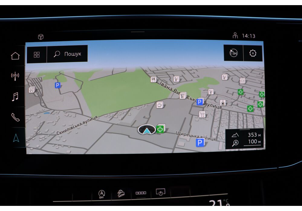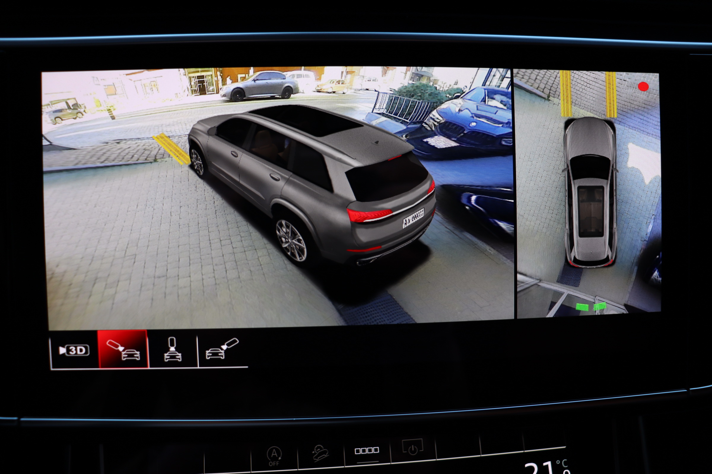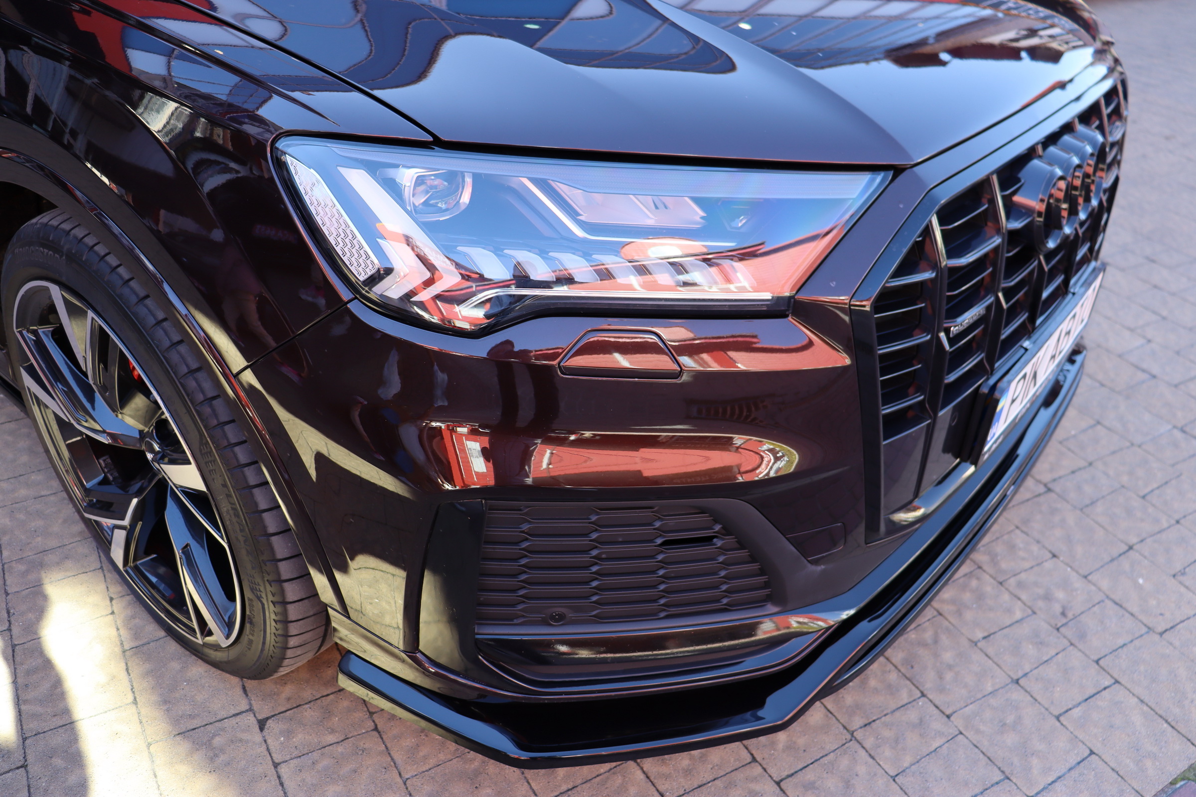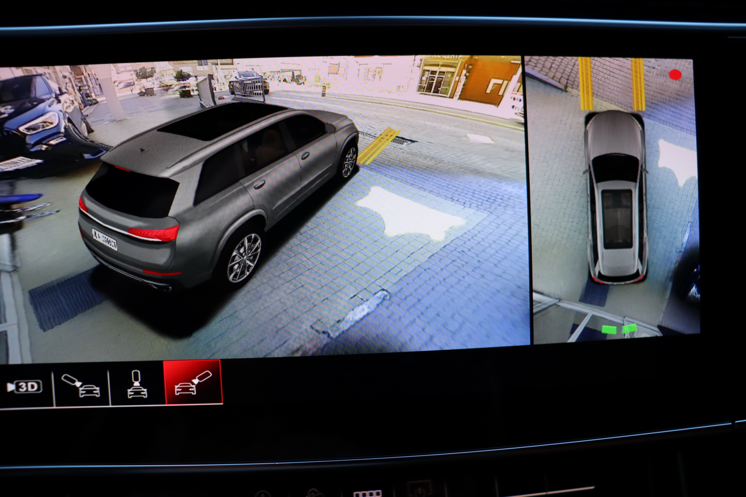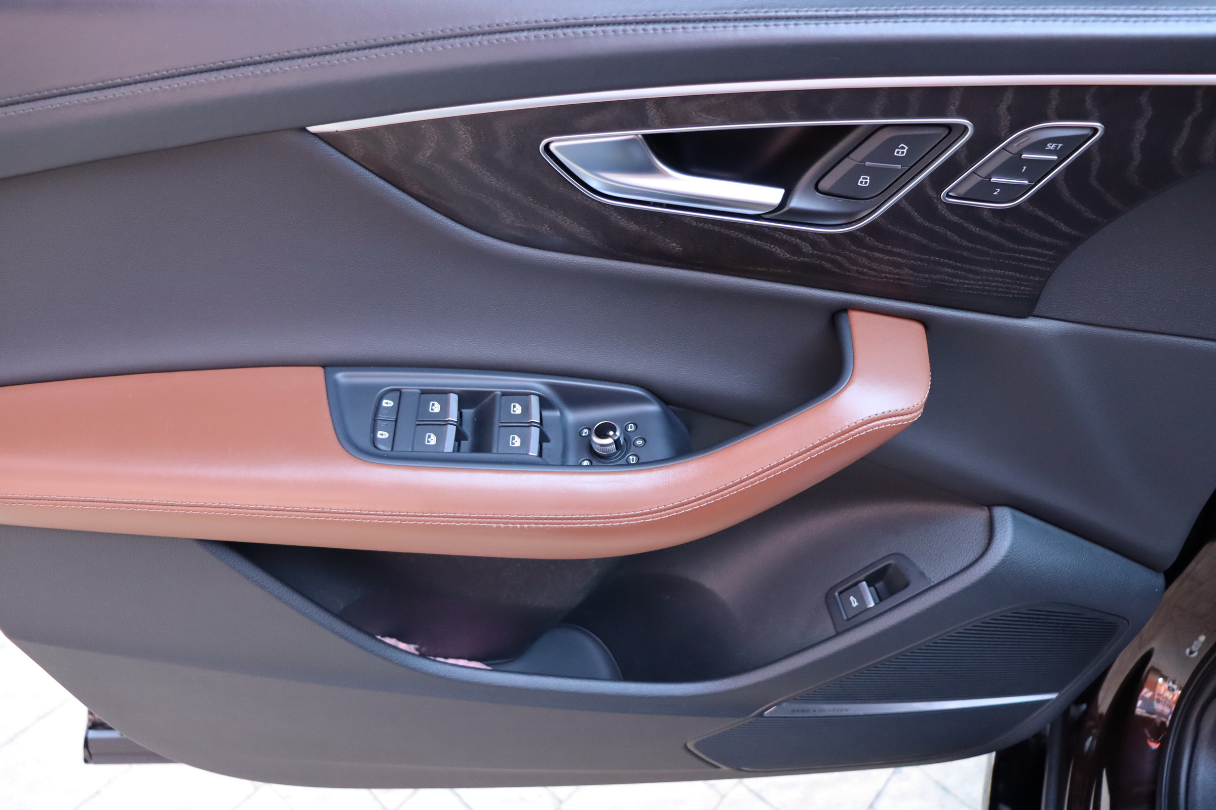 У списку оснащення Ауді Ку7: проекція, панорамний верх, круговий огляд з 3D-картинкою, підігрів вентиляція і масаж сидінь, чотирьохзонний клімат, обігрів рульового колеса, аудіосистема Bang & Olufsen (23 динаміка, підсилювач, сабвуфер) потужністю 1920 Ватт, нічне бачення, адаптивний круїз, утримання в смузі, контроль «мертвих» зон і екстрене гальмування.