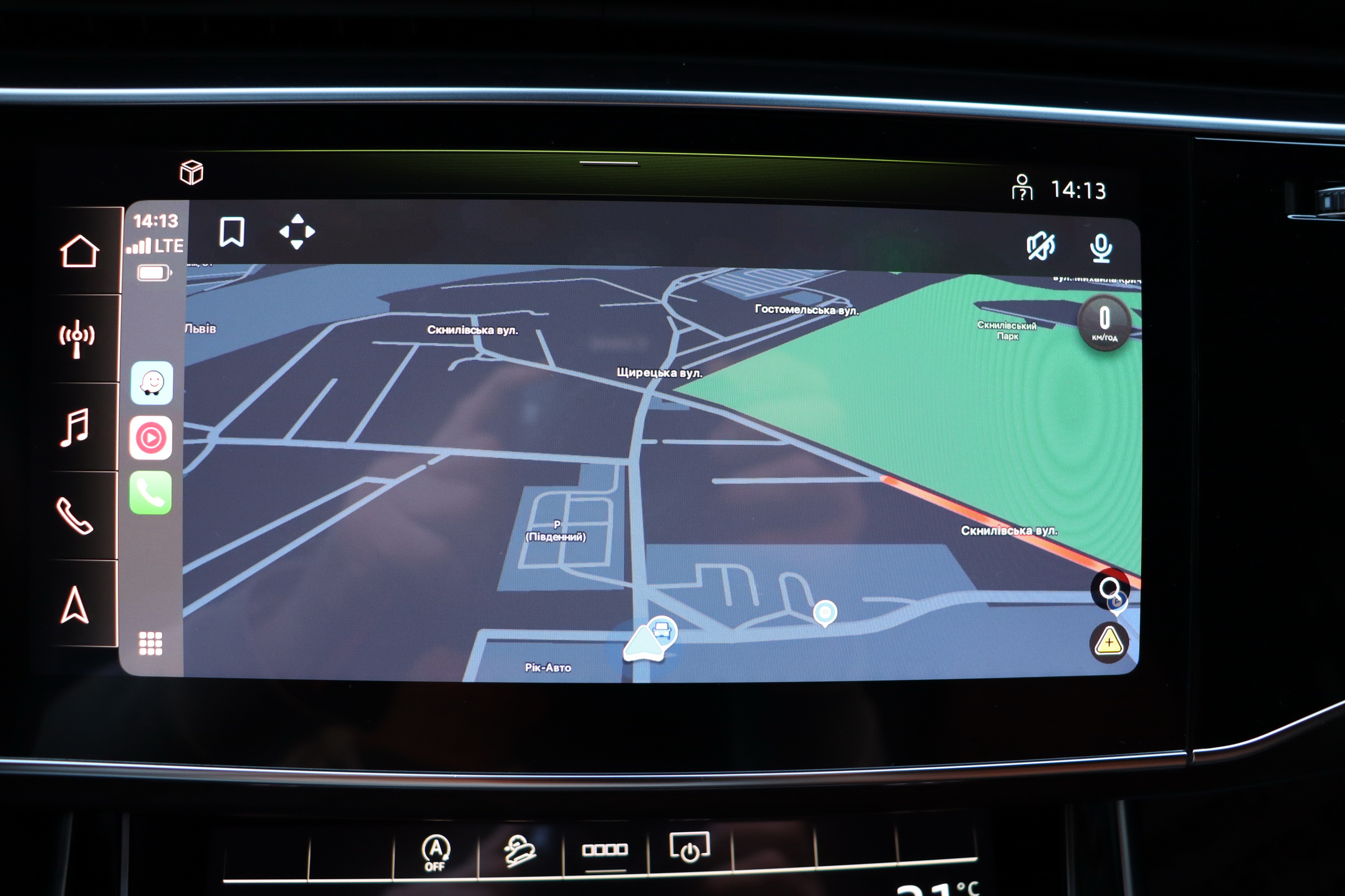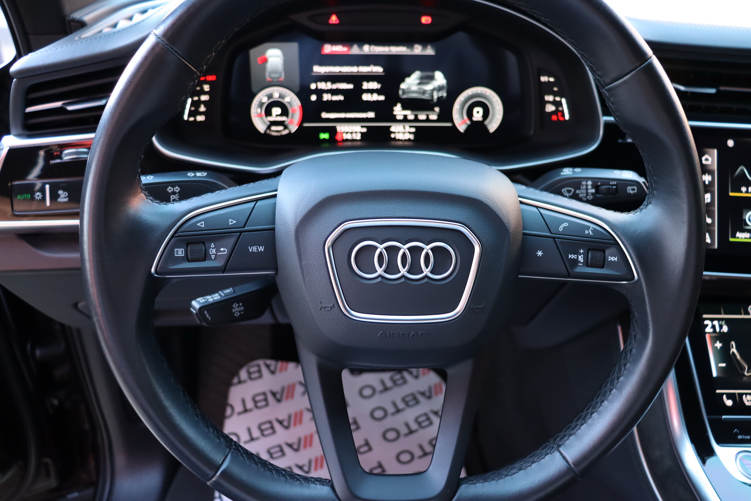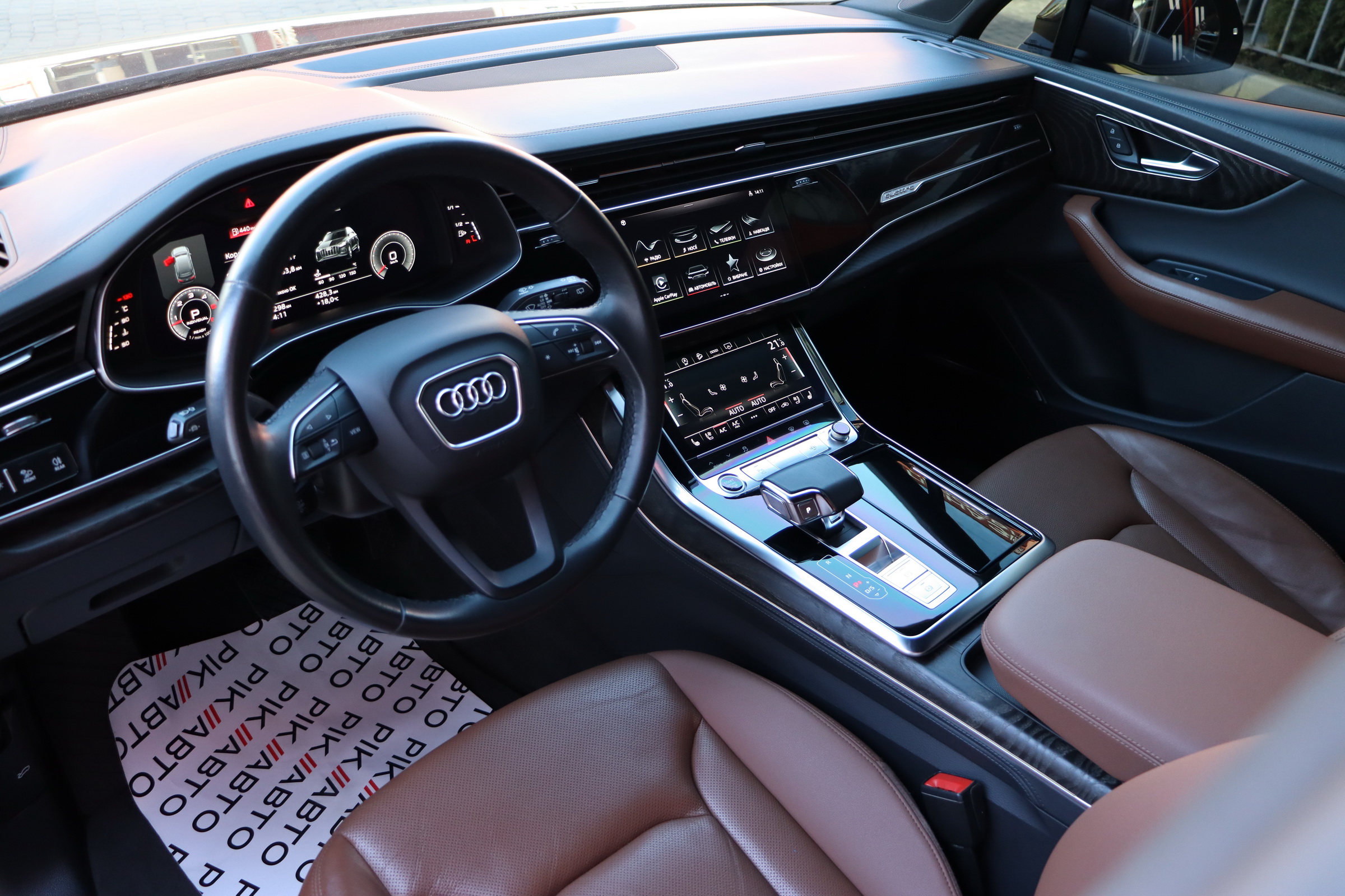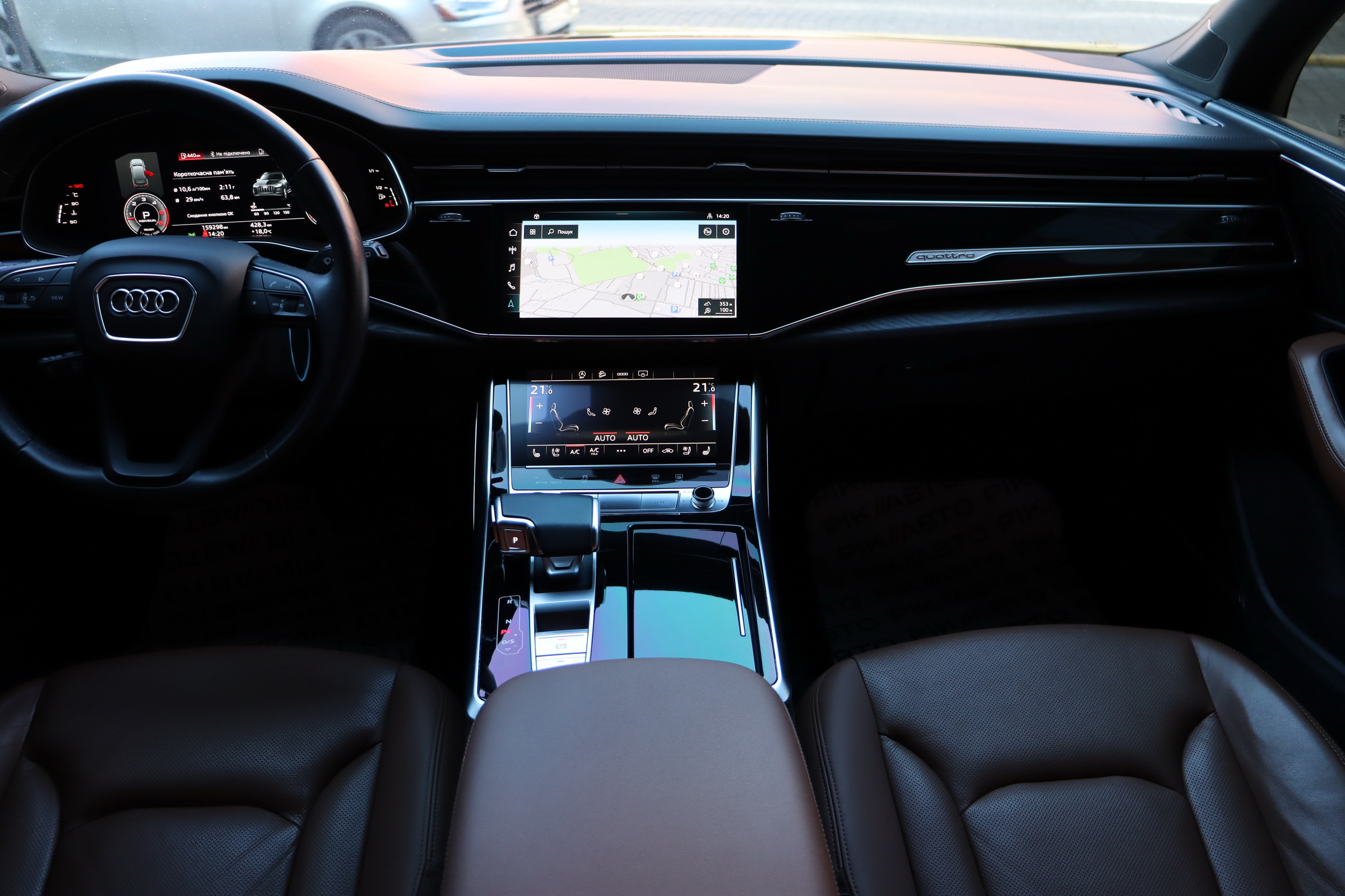 Інтер'єр не став чимось особливим - подібний салон є як у Q8, так і у легкових А6, А7 і А8. Тут точно така ж 12,3-дюймова віртуальна приборка з різною виведеної на неї інформацією, сенсорний 10,1-дюймовий центральний дисплей медіасистеми, що відповідає за безліч налаштувань і навігацію і 8,6-дюймовий тачскрін для введення тексту і управління кліматичною установкою. Виглядає все це витончено, сучасно і елегантно.