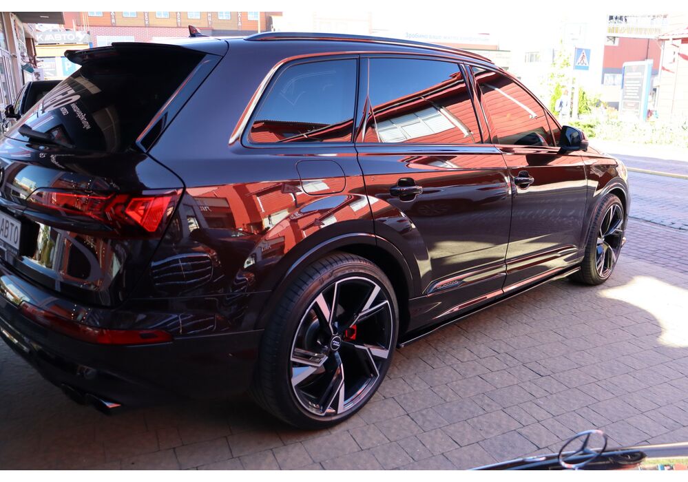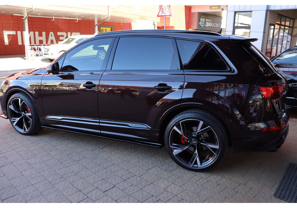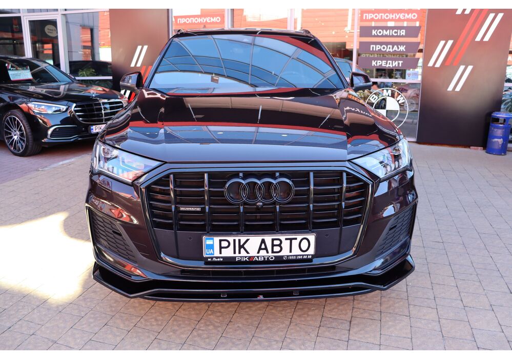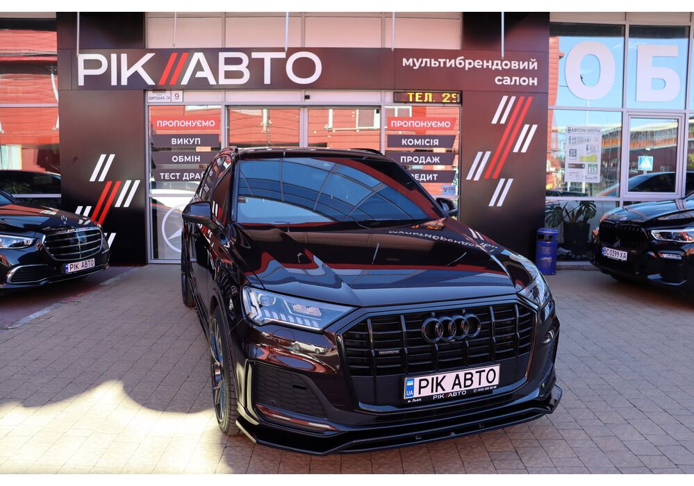Audi Q7 (Ауді Q7) - повнопривідний кросовер класу «К3». Дебют рестайлінгової версії другого покоління моделі відбувся в червні 2019 року.Оновлений Audi Q7 отримав нову радіаторну решітку з масивними вертикальними прутами ( «візитна картка» останніх SUV марки), іншу більш агресивну оптику (в базі світлодіодна, за доплату - лазерно-люмінофоний дальній) і змінені бампера через які кросовер став на 11 мм довше (5063 мм). Крім цього, на кормі з'явилася хромована перемичка, яка не тільки з'єднує між собою нові світлодіодні задні ліхтарі, а ще й візуально розширює пропорції автомобіля, хоч сама ширина «Ку7» не змінилася - 1970 мм, втім, як висота (1741р мм) і колісна база (2994 мм).