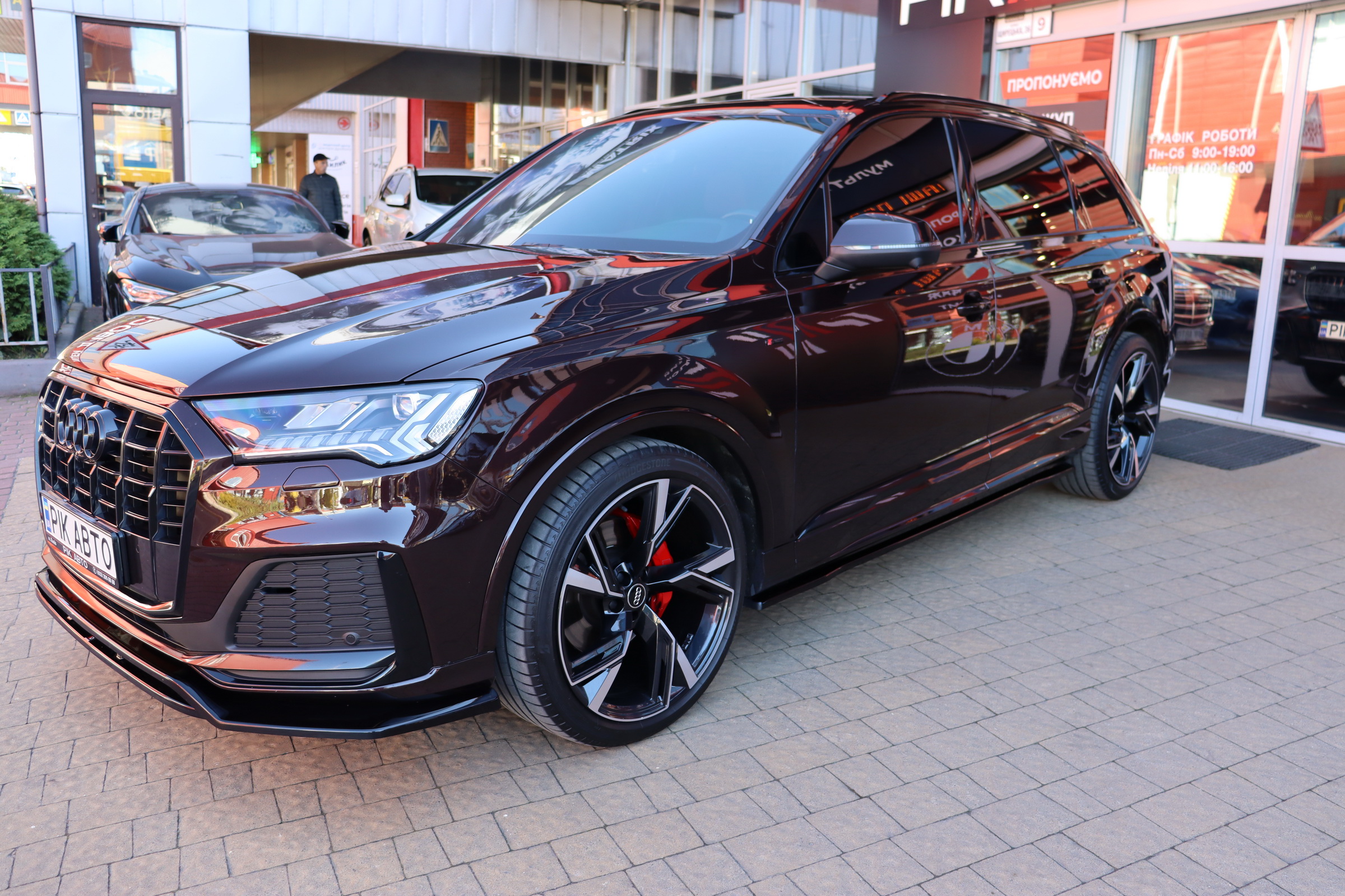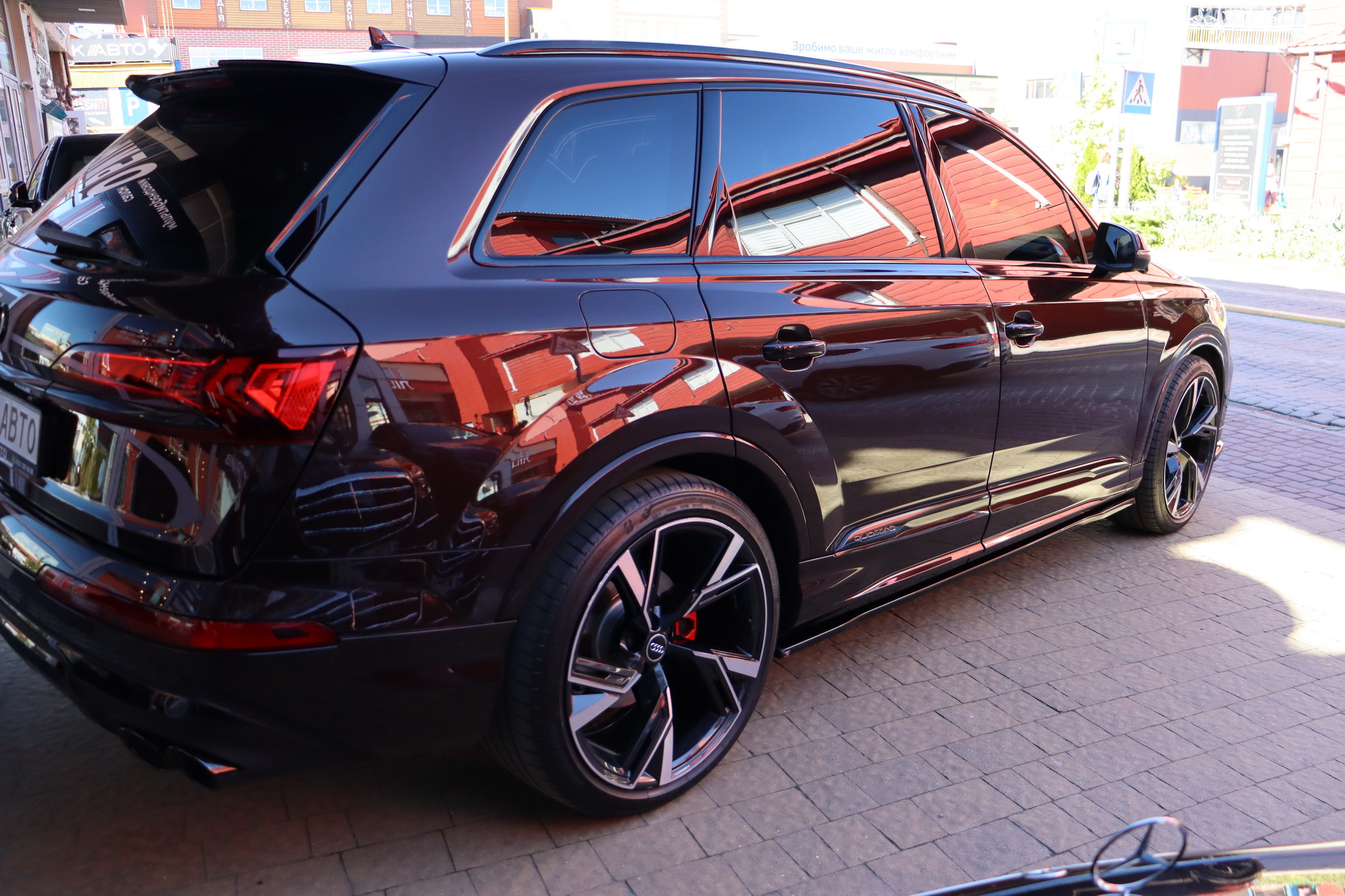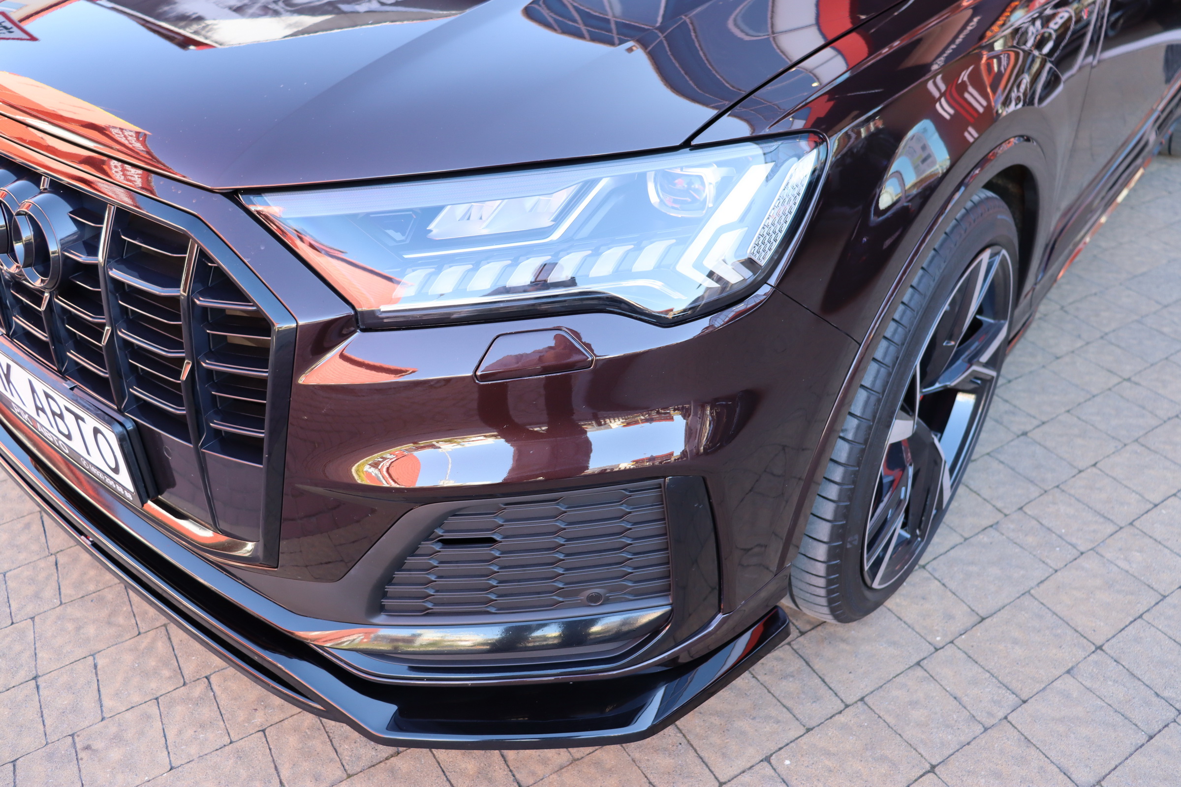 Audi Q7 (Ауді Q7) - повнопривідний кросовер класу «К3». Дебют рестайлінгової версії другого покоління моделі відбувся в червні 2019 року.Оновлений Audi Q7 отримав нову радіаторну решітку з масивними вертикальними прутами ( «візитна картка» останніх SUV марки), іншу більш агресивну оптику (в базі світлодіодна, за доплату - лазерно-люмінофоний дальній) і змінені бампера через які кросовер став на 11 мм довше (5063 мм). Крім цього, на кормі з'явилася хромована перемичка, яка не тільки з'єднує між собою нові світлодіодні задні ліхтарі, а ще й візуально розширює пропорції автомобіля, хоч сама ширина «Ку7» не змінилася - 1970 мм, втім, як висота (1741р мм) і колісна база (2994 мм).