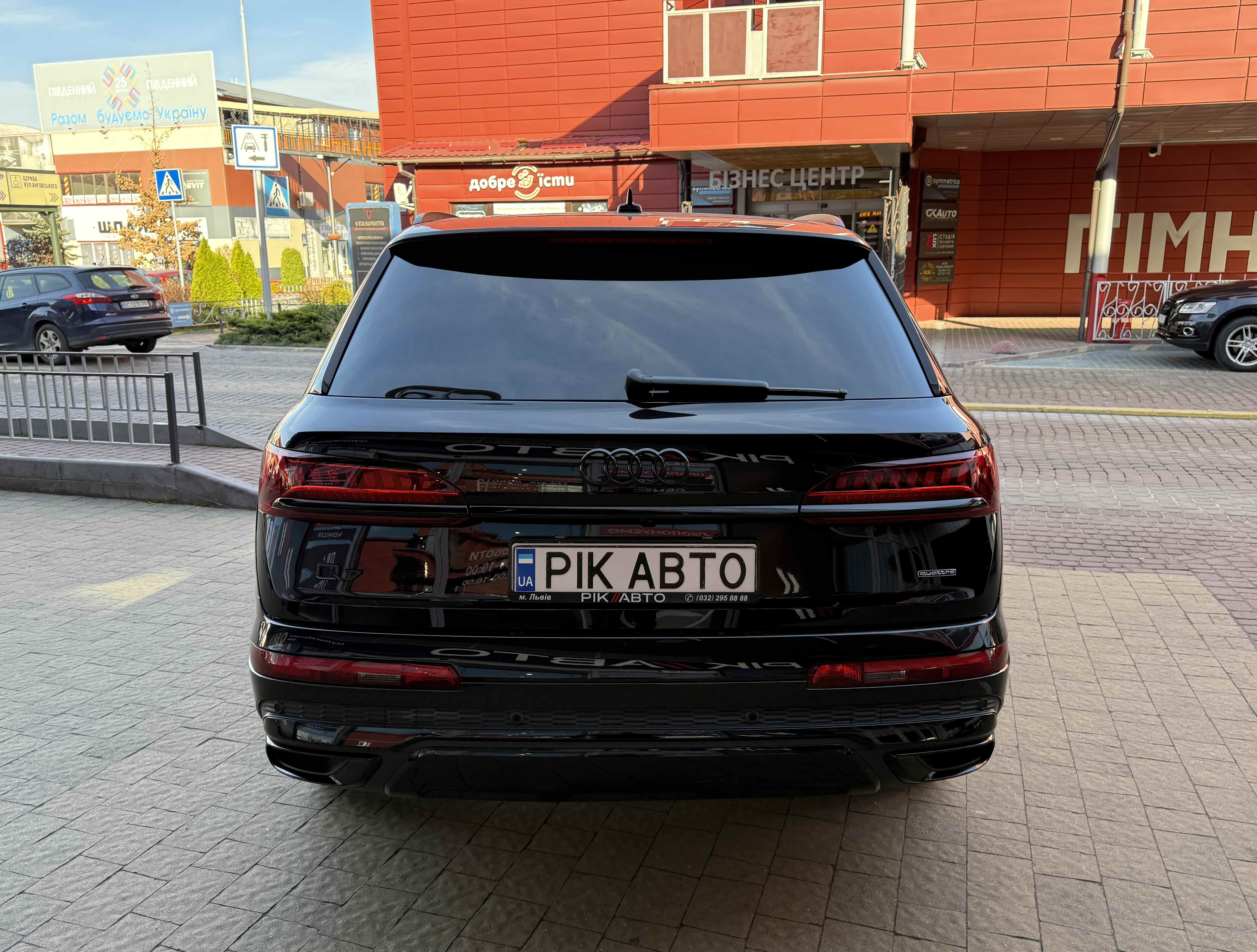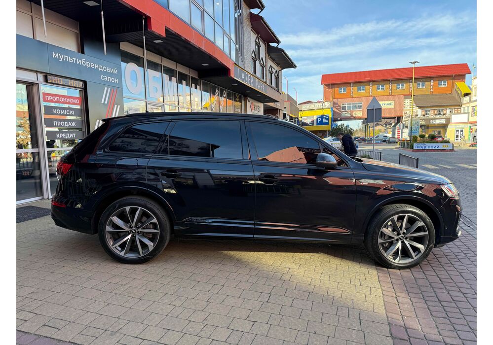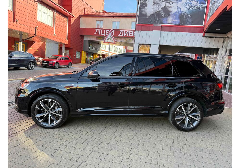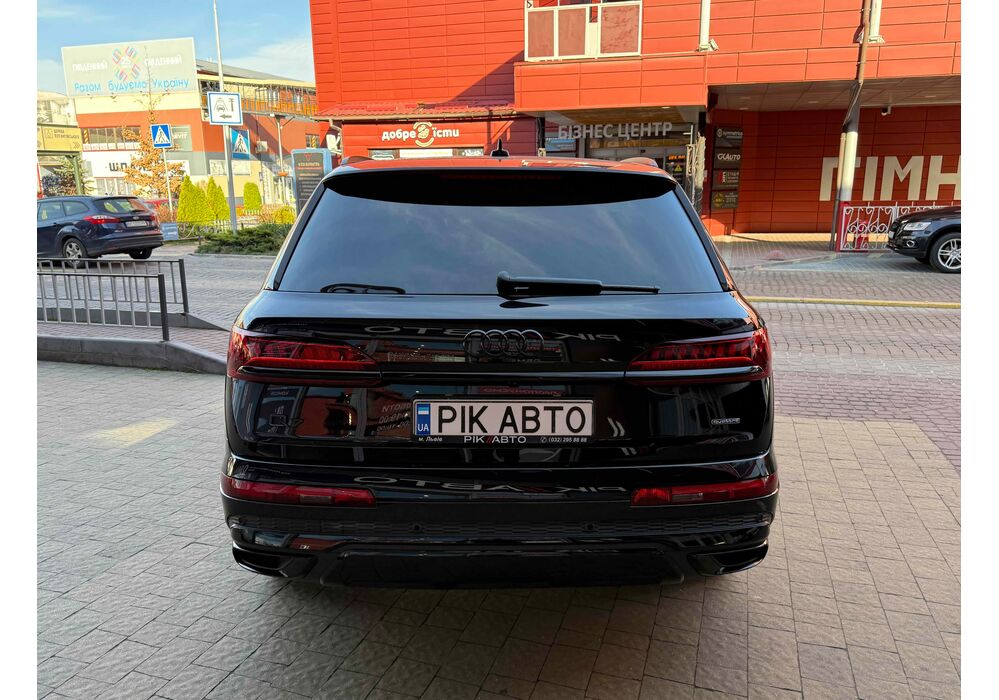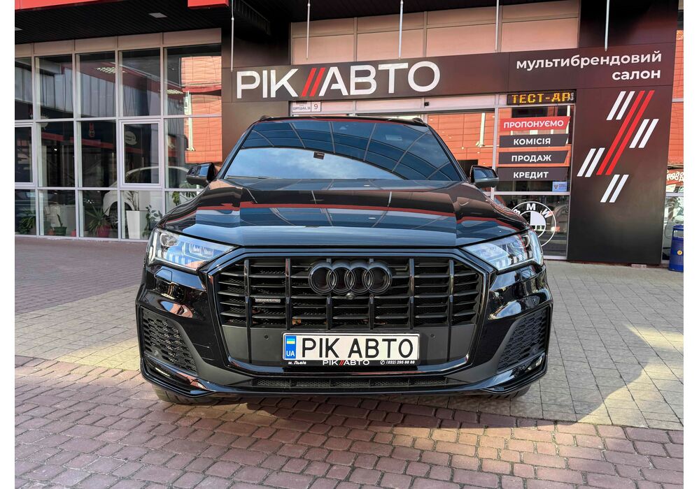 Audi Q7 (Ауді Q7) - повнопривідний кросовер класу «К3». Дебют рестайлінгової версії другого покоління моделі відбувся в червні 2019 року.Оновлений Audi Q7 отримав нову радіаторну решітку з масивними вертикальними прутами ( «візитна картка» останніх SUV марки), іншу більш агресивну оптику (в базі світлодіодна, за доплату - лазерно-люмінофоний дальній) і змінені бампера через які кросовер став на 11 мм довше (5063 мм). Крім цього, на кормі з'явилася хромована перемичка, яка не тільки з'єднує між собою нові світлодіодні задні ліхтарі, а ще й візуально розширює пропорції автомобіля, хоч сама ширина «Ку7» не змінилася - 1970 мм, втім, як висота (1741р мм) і колісна база (2994 мм).