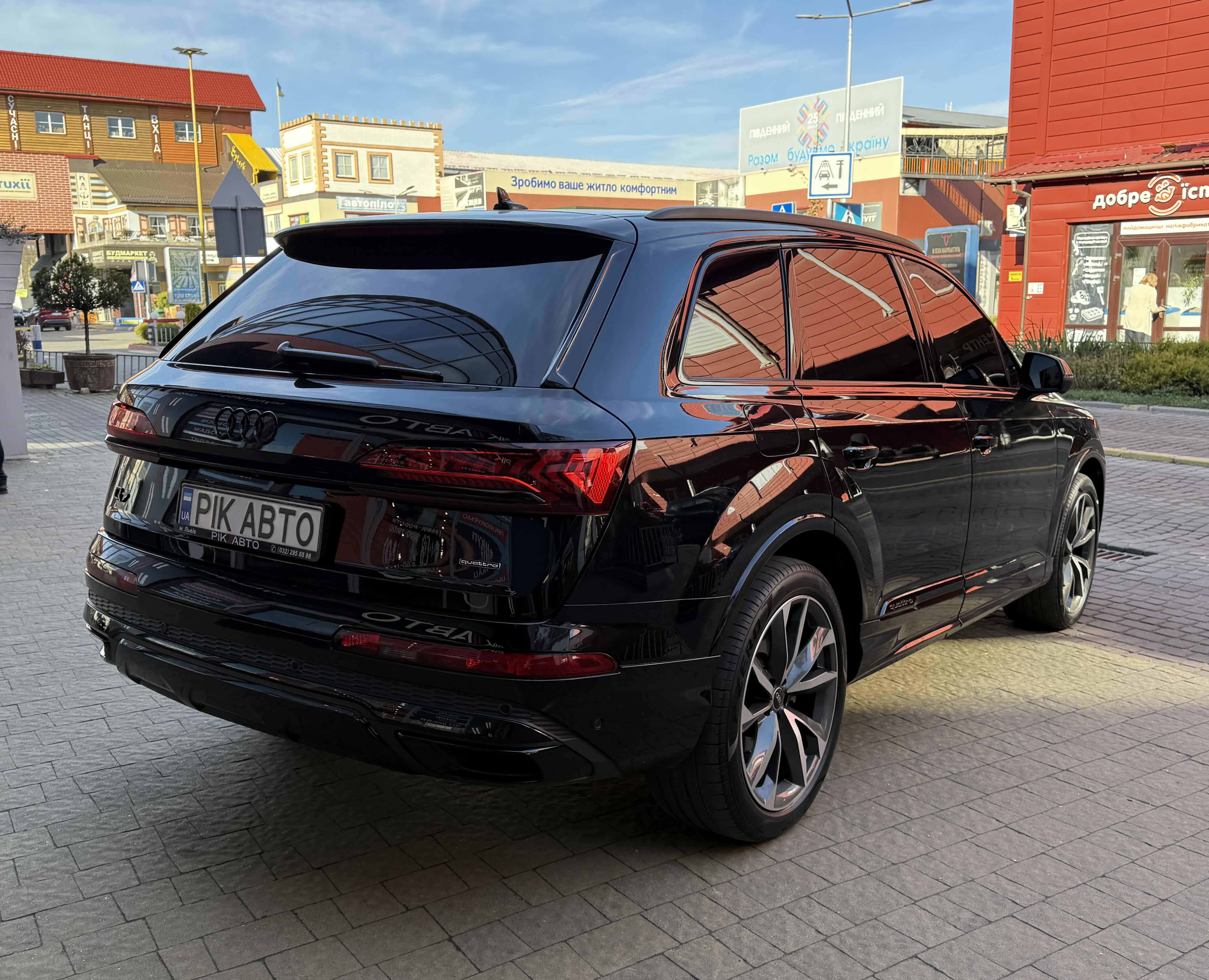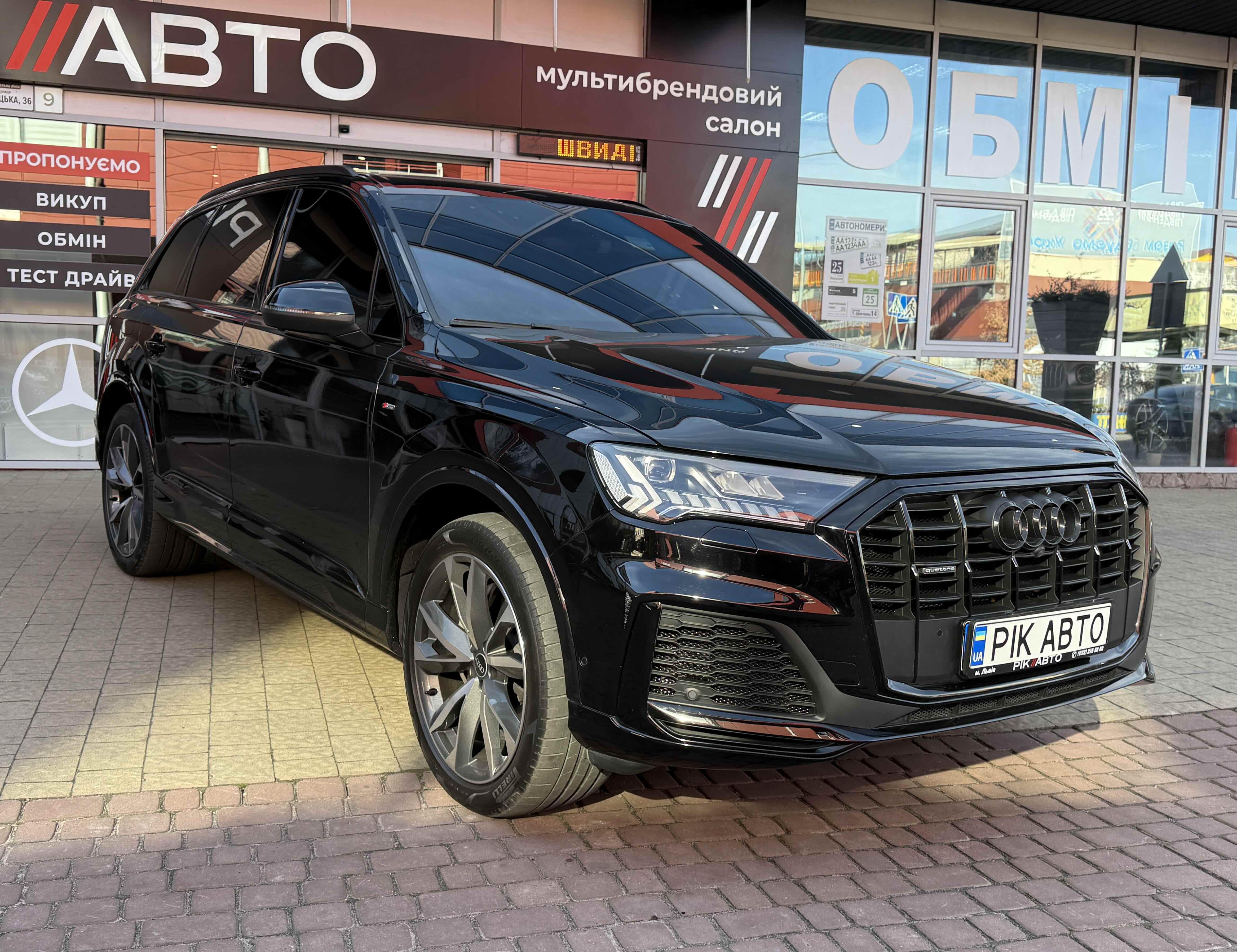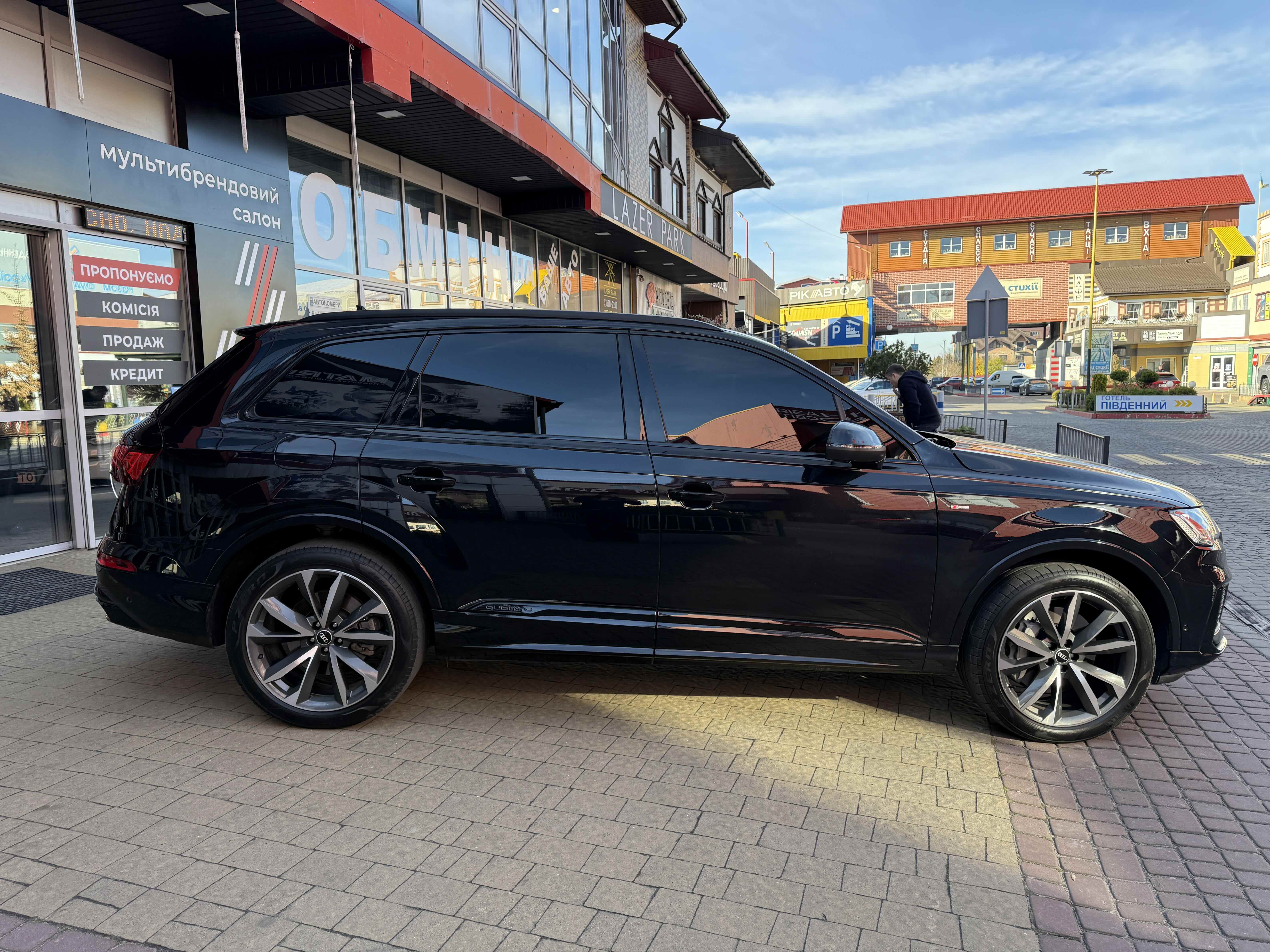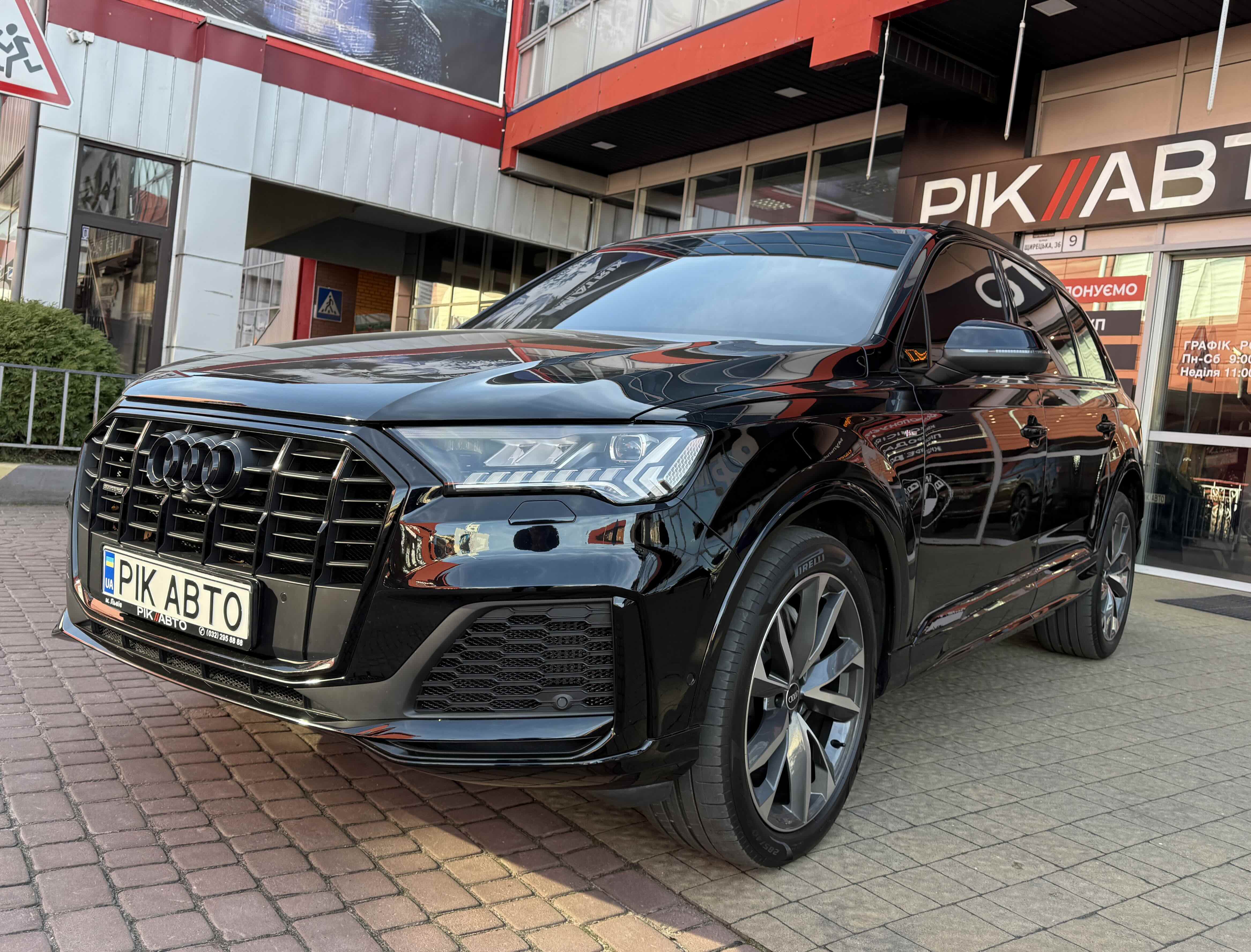 Audi Q7 (Ауді Q7) - повнопривідний кросовер класу «К3». Дебют рестайлінгової версії другого покоління моделі відбувся в червні 2019 року.Оновлений Audi Q7 отримав нову радіаторну решітку з масивними вертикальними прутами ( «візитна картка» останніх SUV марки), іншу більш агресивну оптику (в базі світлодіодна, за доплату - лазерно-люмінофоний дальній) і змінені бампера через які кросовер став на 11 мм довше (5063 мм). Крім цього, на кормі з'явилася хромована перемичка, яка не тільки з'єднує між собою нові світлодіодні задні ліхтарі, а ще й візуально розширює пропорції автомобіля, хоч сама ширина «Ку7» не змінилася - 1970 мм, втім, як висота (1741р мм) і колісна база (2994 мм).