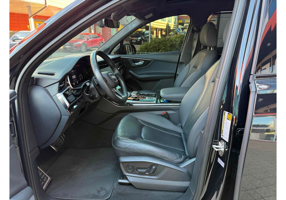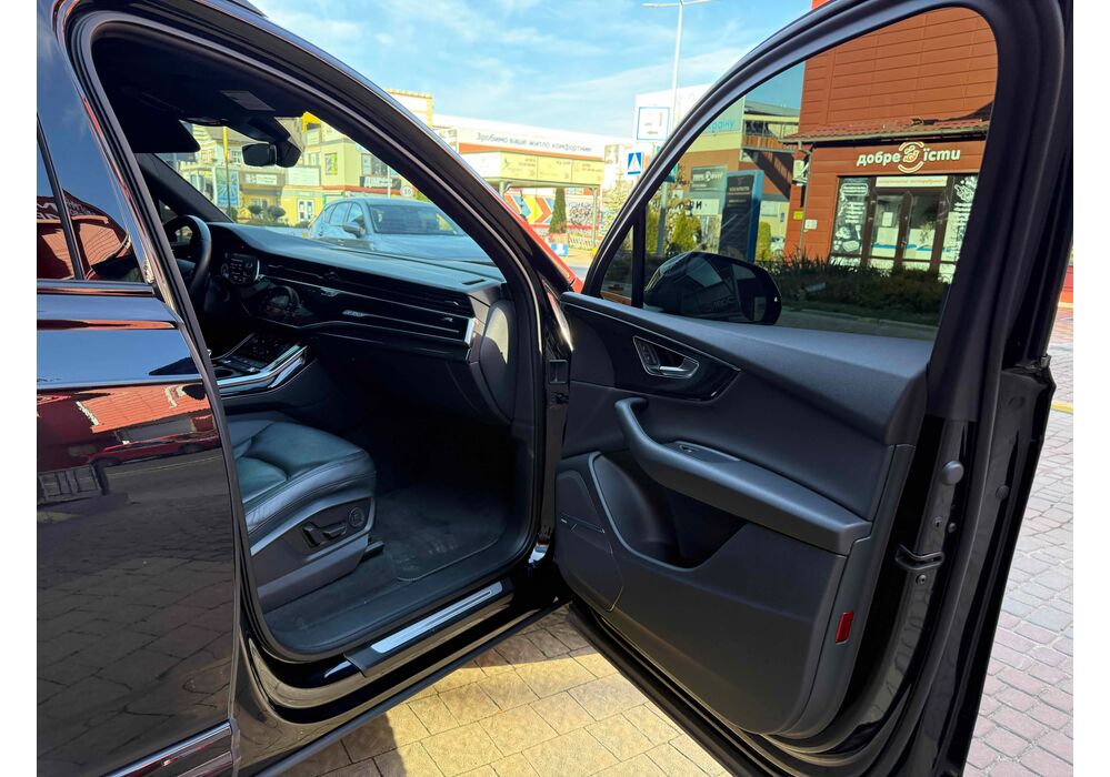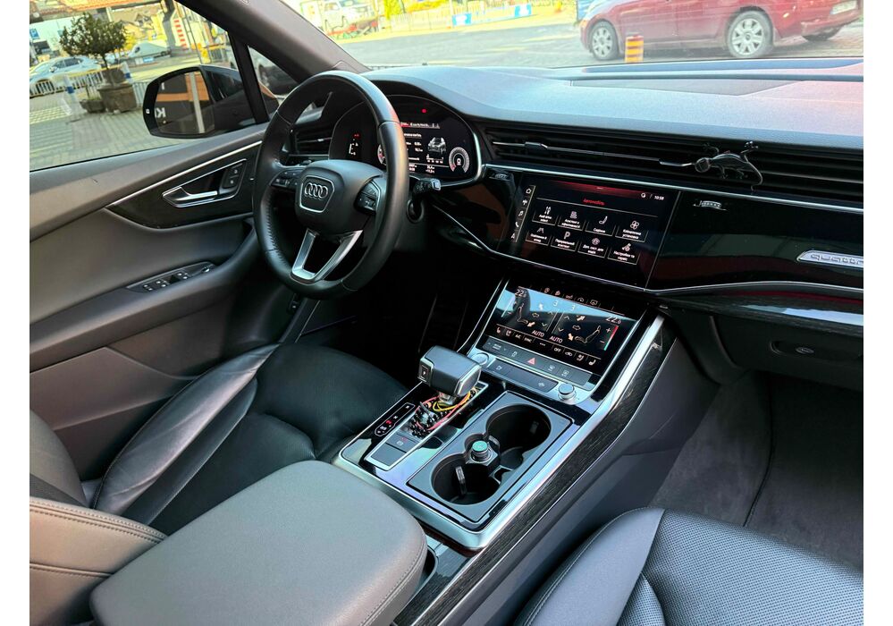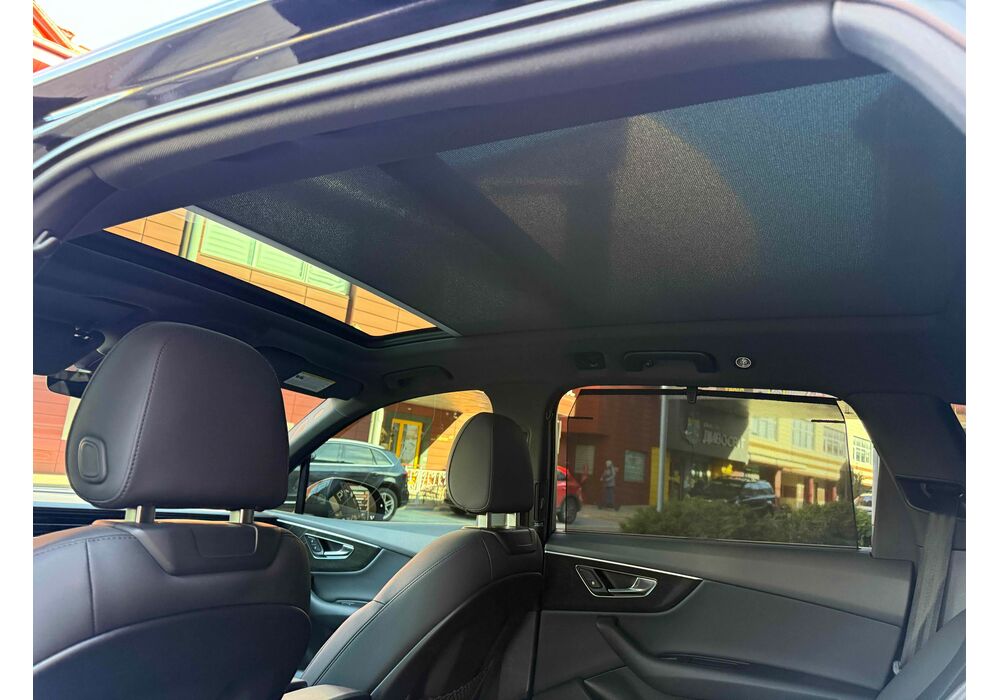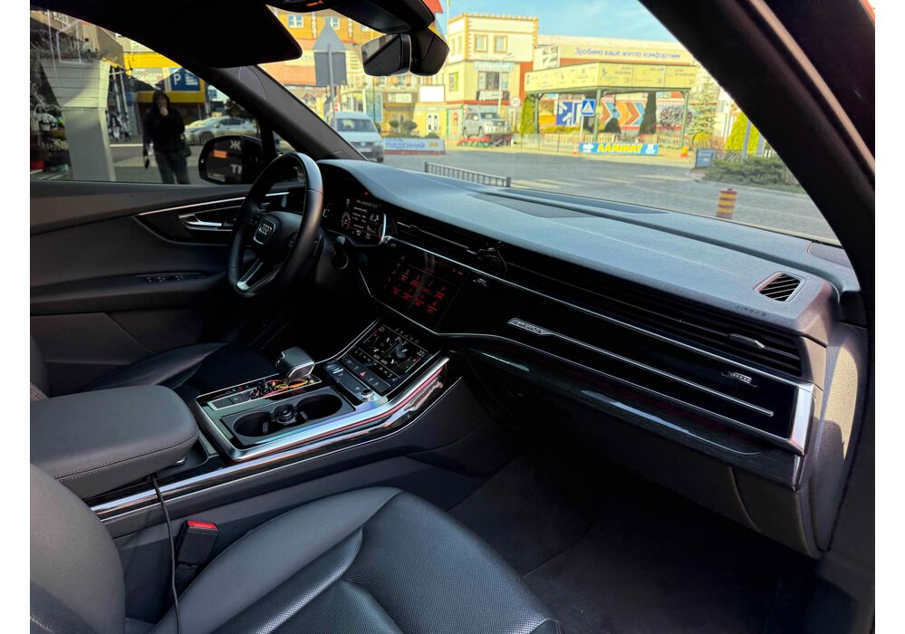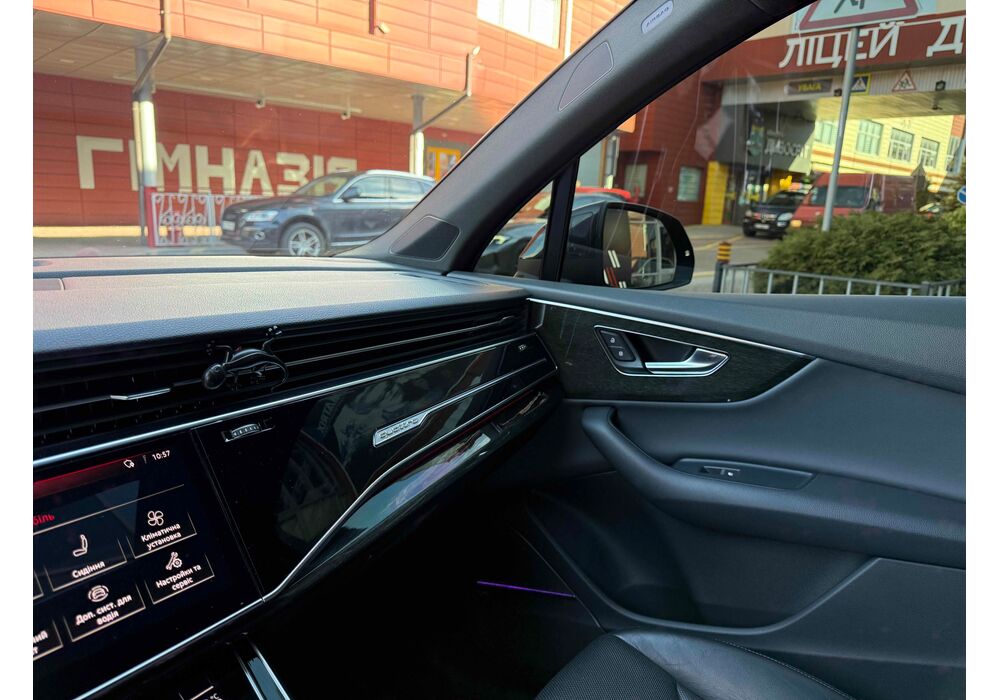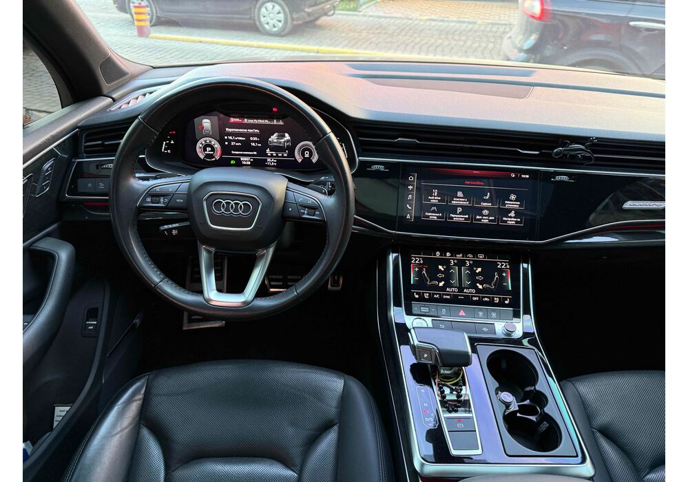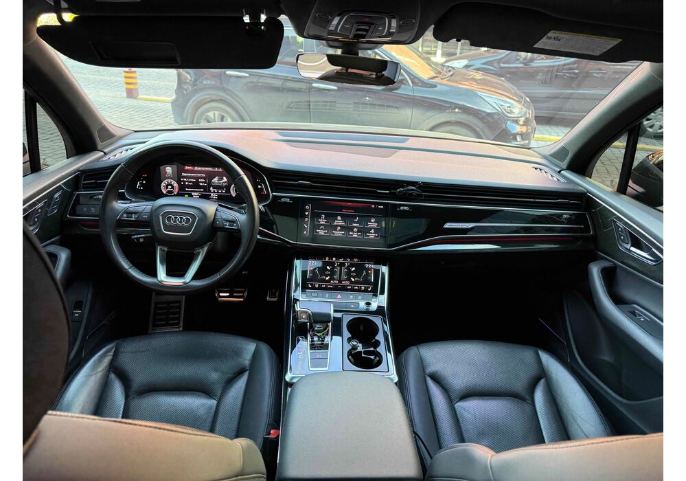 У списку оснащення Ауді Ку7: проекція, панорамний верх, круговий огляд з 3D-картинкою, підігрів вентиляція і масаж сидінь, чотирьохзонний клімат, обігрів рульового колеса, аудіосистема Bang & Olufsen (23 динаміка, підсилювач, сабвуфер) потужністю 1920 Ватт, нічне бачення, адаптивний круїз, утримання в смузі, контроль «мертвих» зон і екстрене гальмування.
