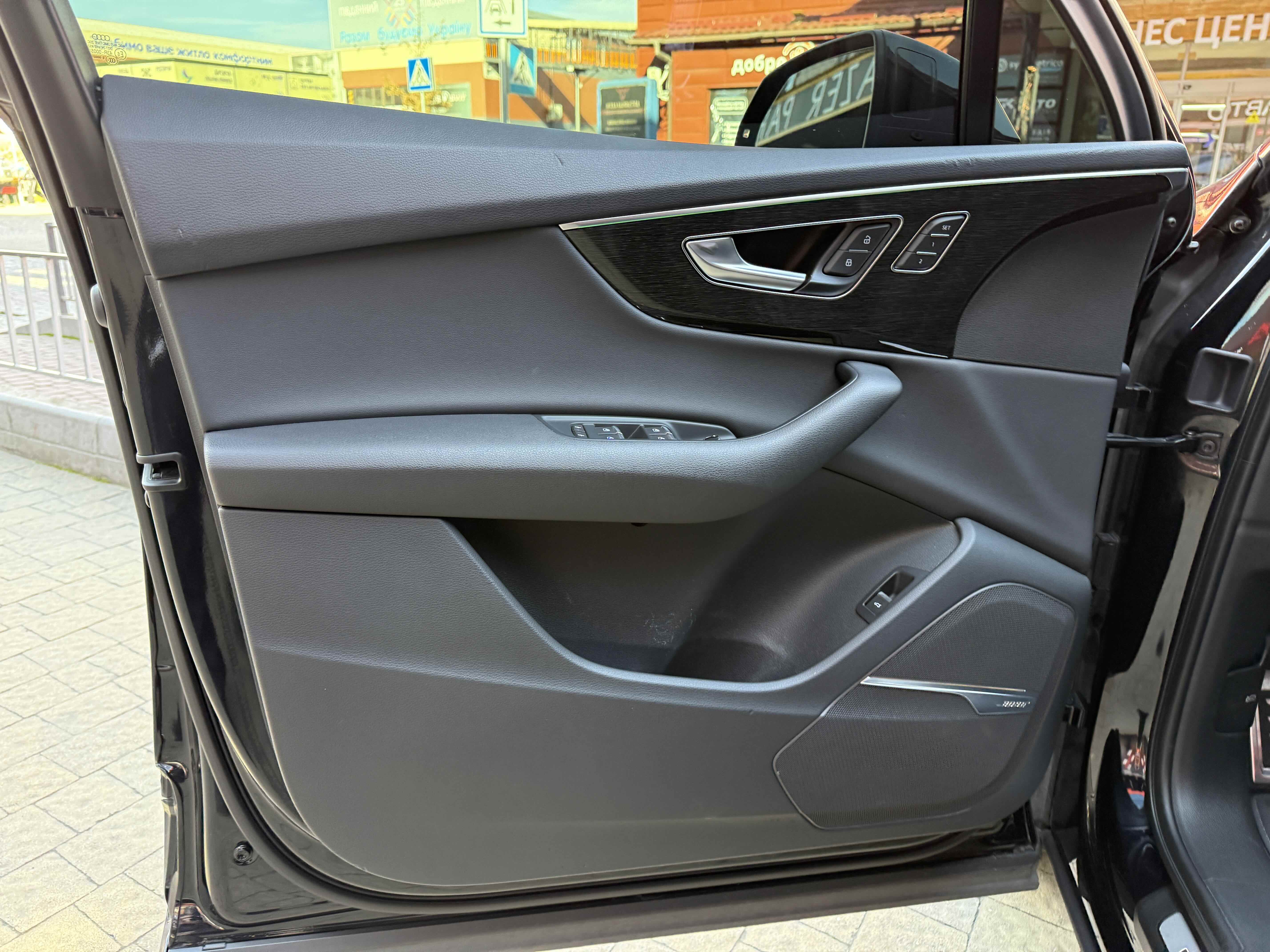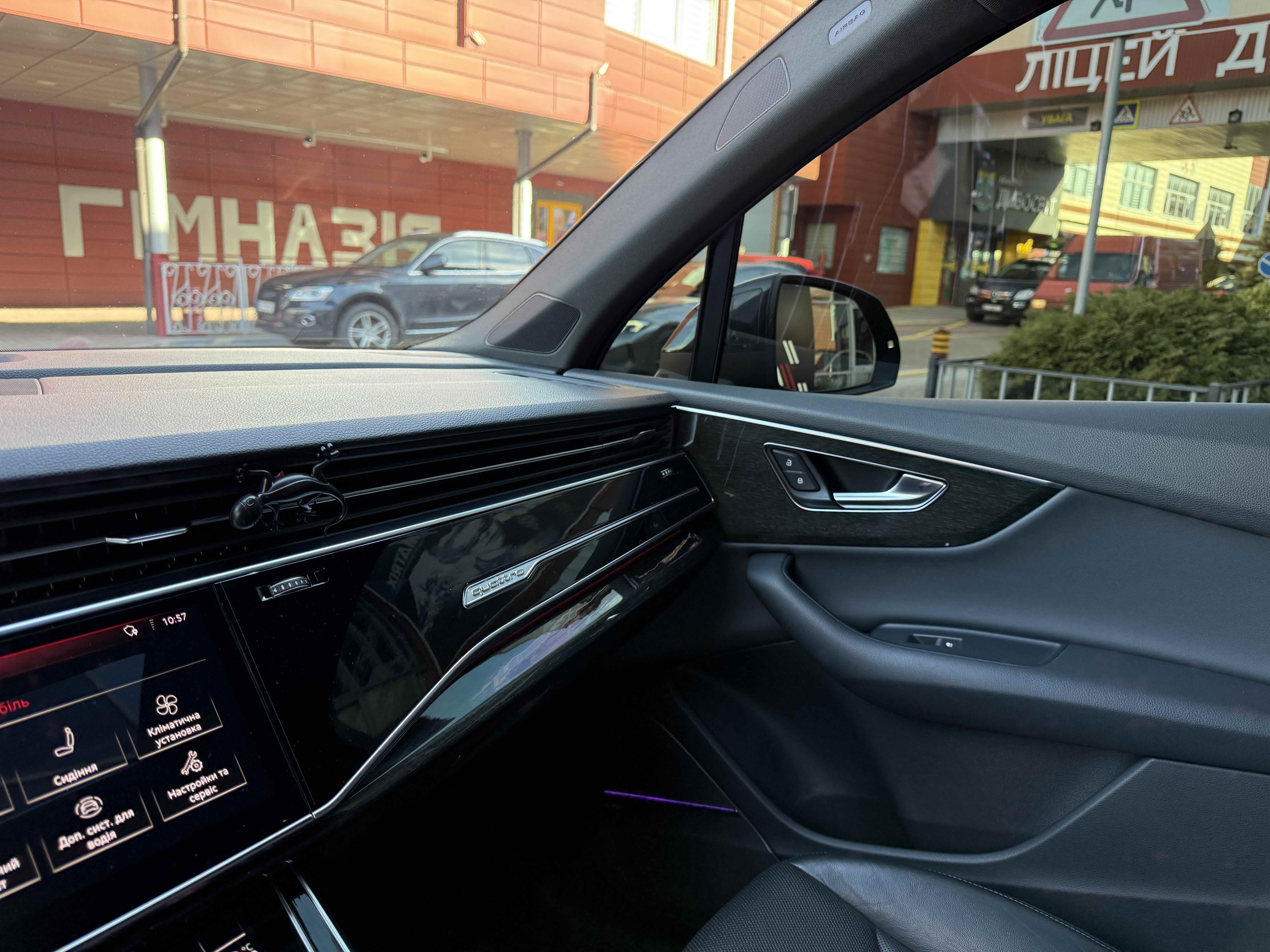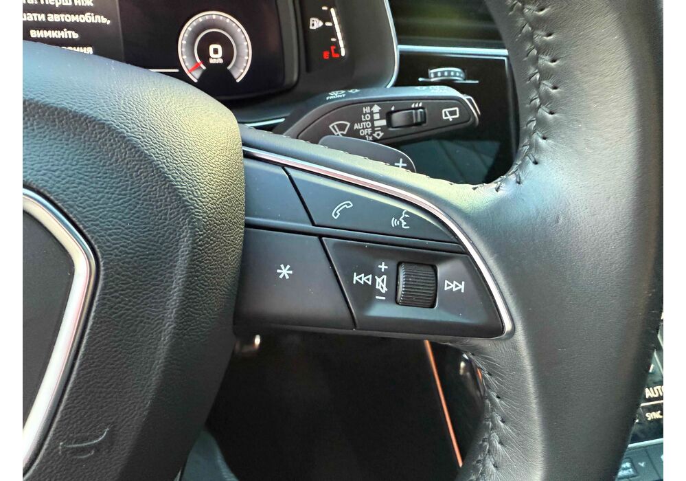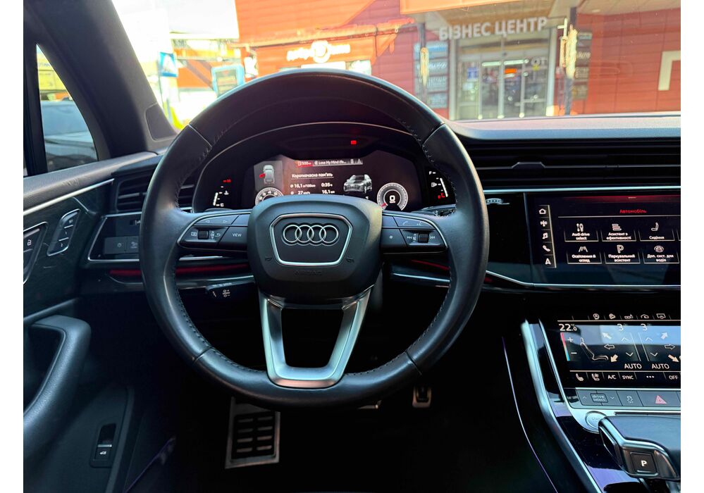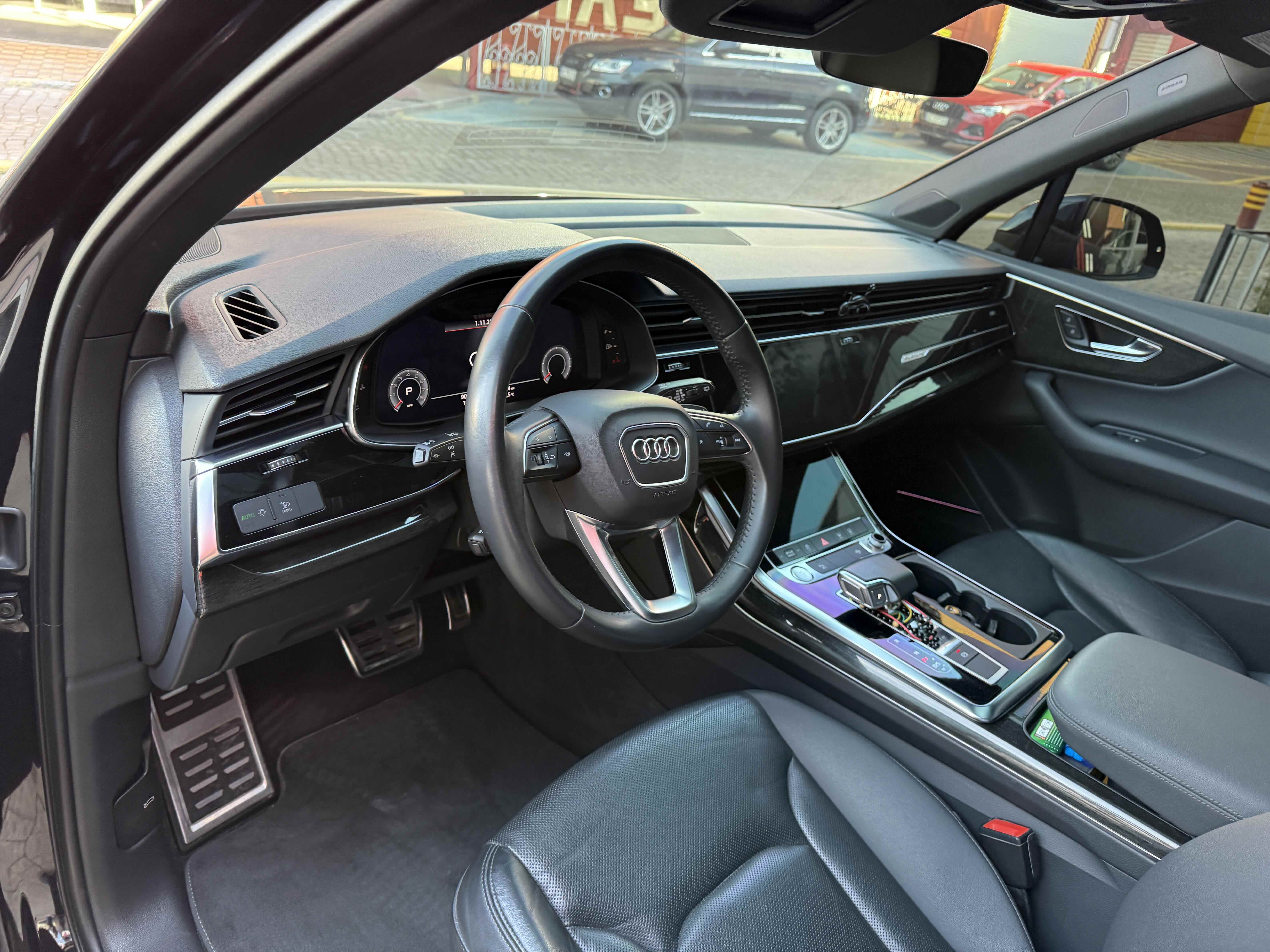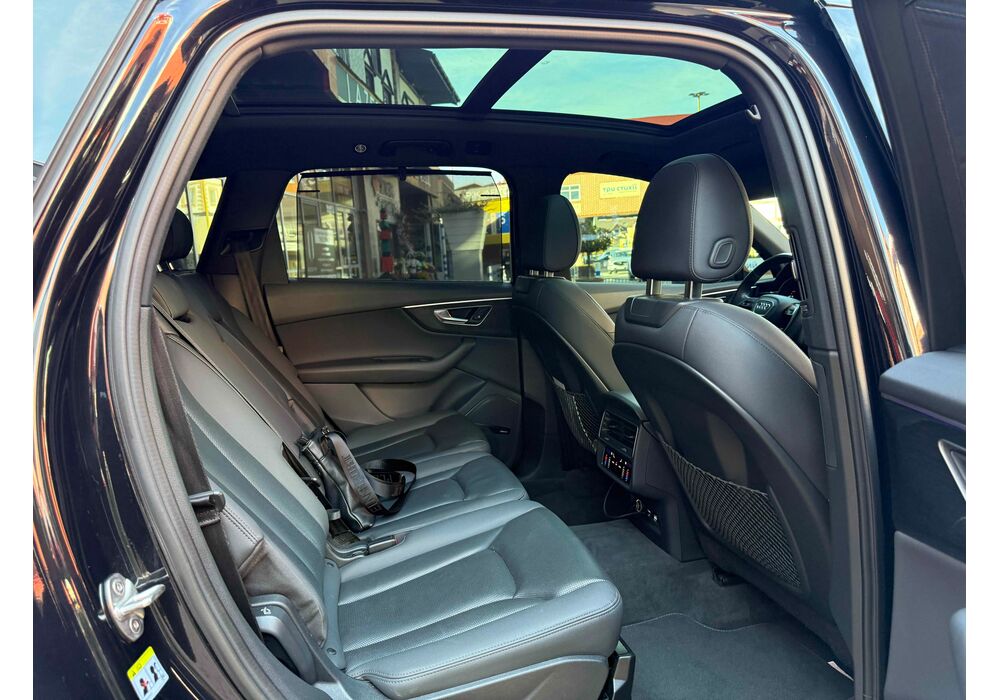 У списку оснащення Ауді Ку7: проекція, панорамний верх, круговий огляд з 3D-картинкою, підігрів вентиляція і масаж сидінь, чотирьохзонний клімат, обігрів рульового колеса, аудіосистема Bang & Olufsen (23 динаміка, підсилювач, сабвуфер) потужністю 1920 Ватт, нічне бачення, адаптивний круїз, утримання в смузі, контроль «мертвих» зон і екстрене гальмування.