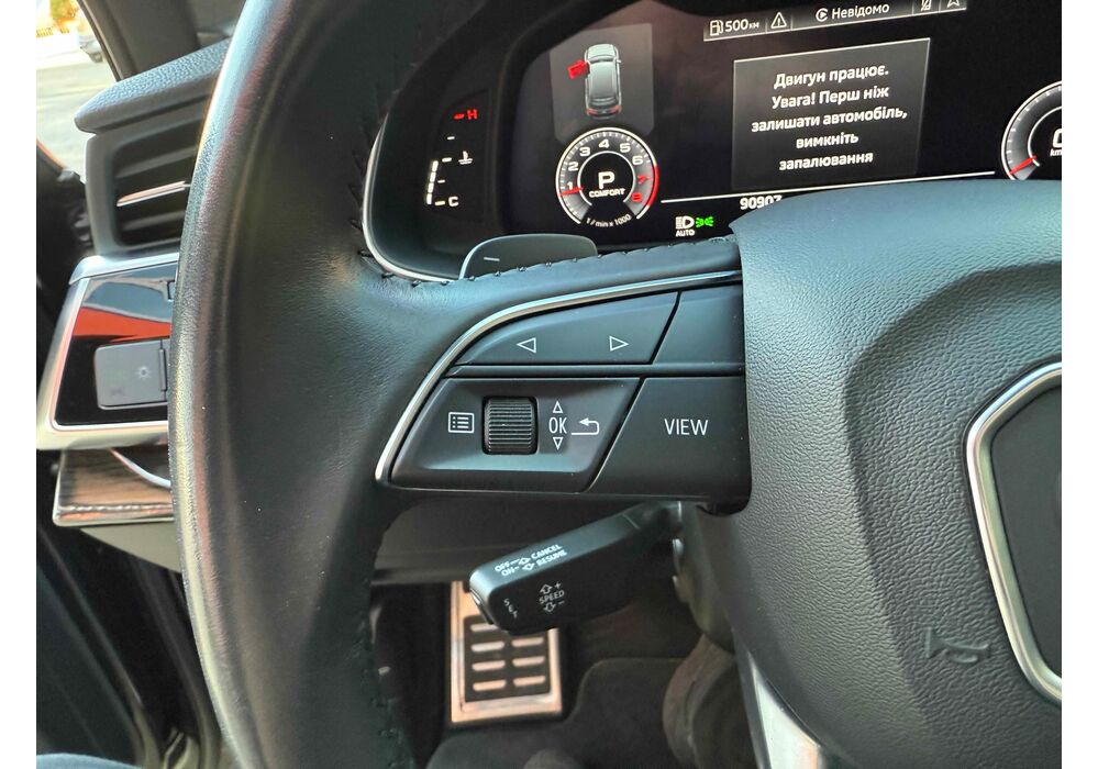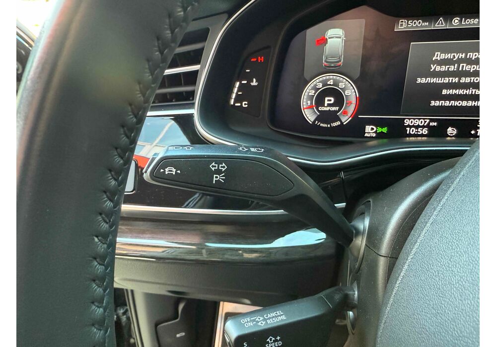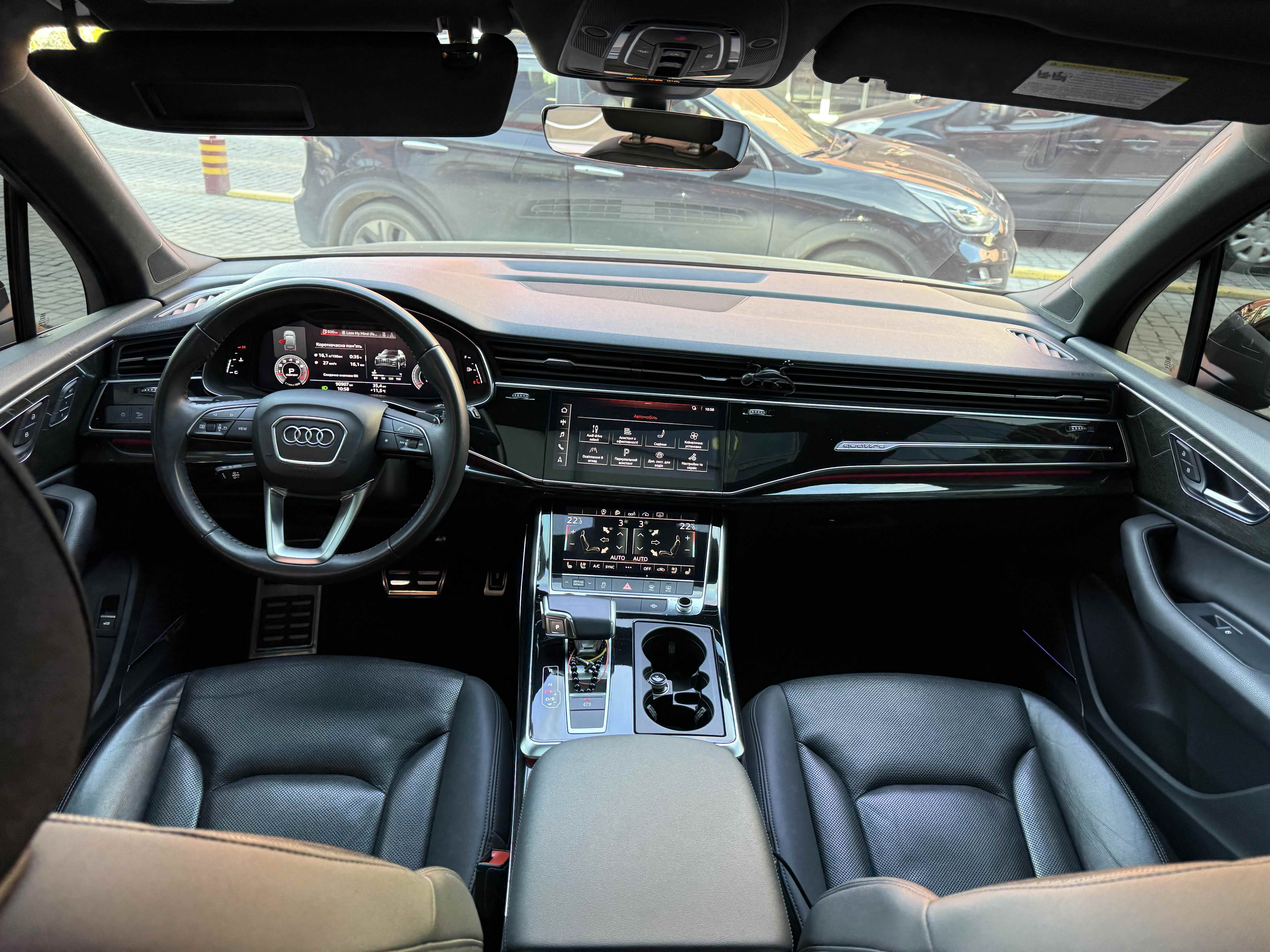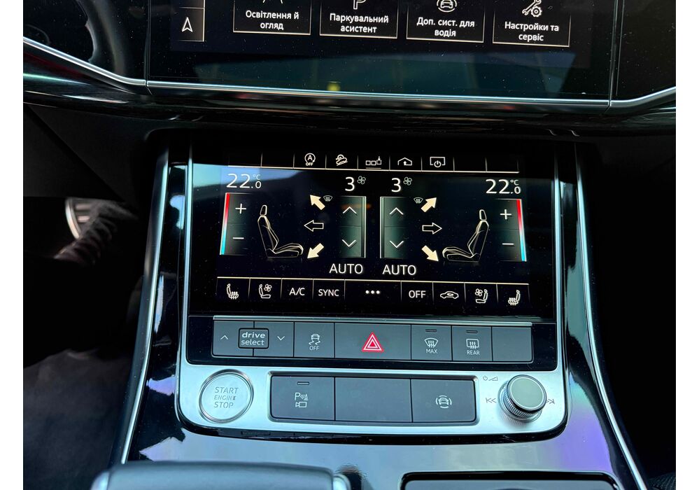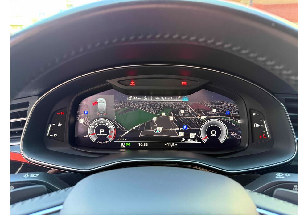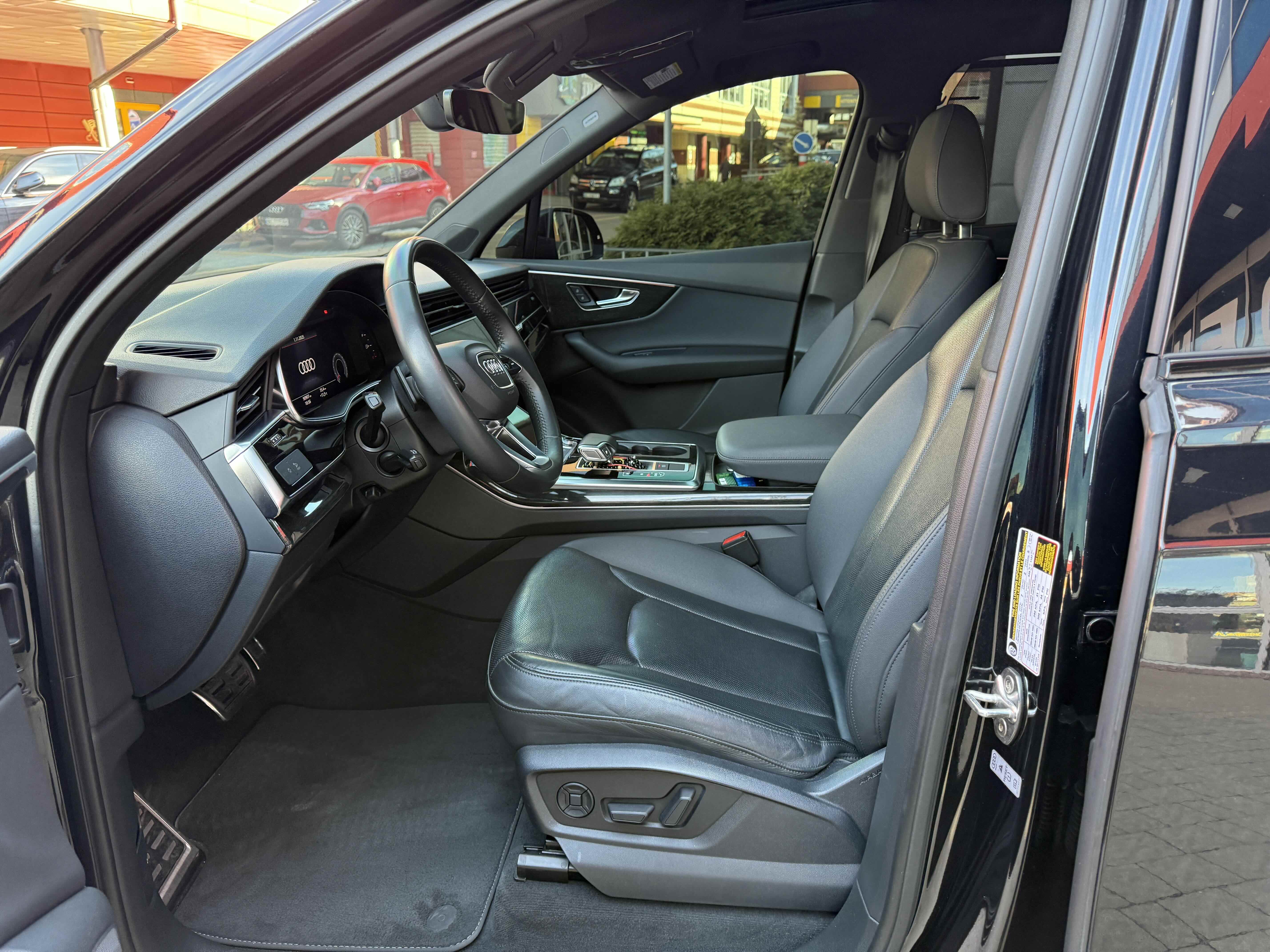 У списку оснащення Ауді Ку7: проекція, панорамний верх, круговий огляд з 3D-картинкою, підігрів вентиляція і масаж сидінь, чотирьохзонний клімат, обігрів рульового колеса, аудіосистема Bang & Olufsen (23 динаміка, підсилювач, сабвуфер) потужністю 1920 Ватт, нічне бачення, адаптивний круїз, утримання в смузі, контроль «мертвих» зон і екстрене гальмування.