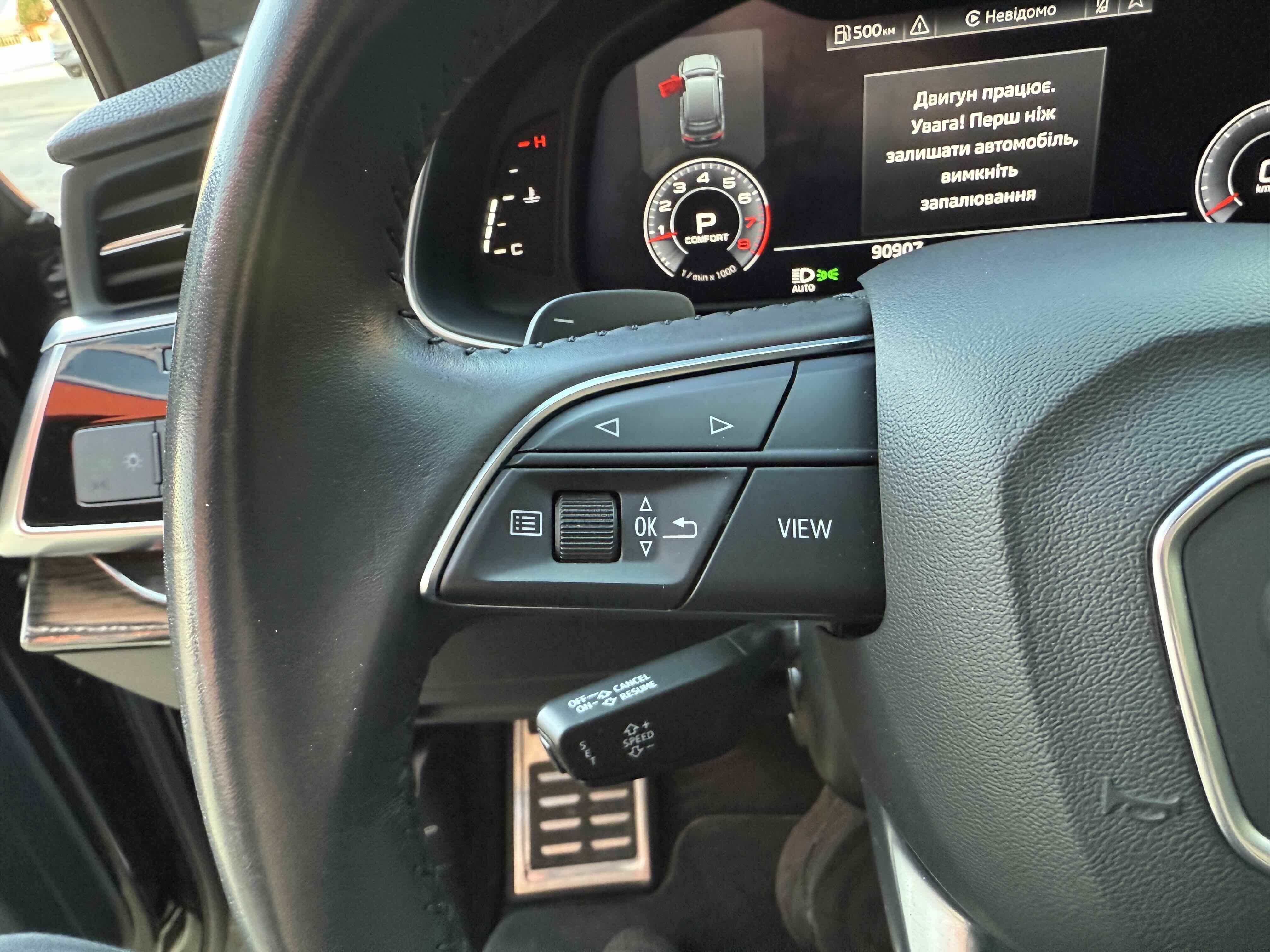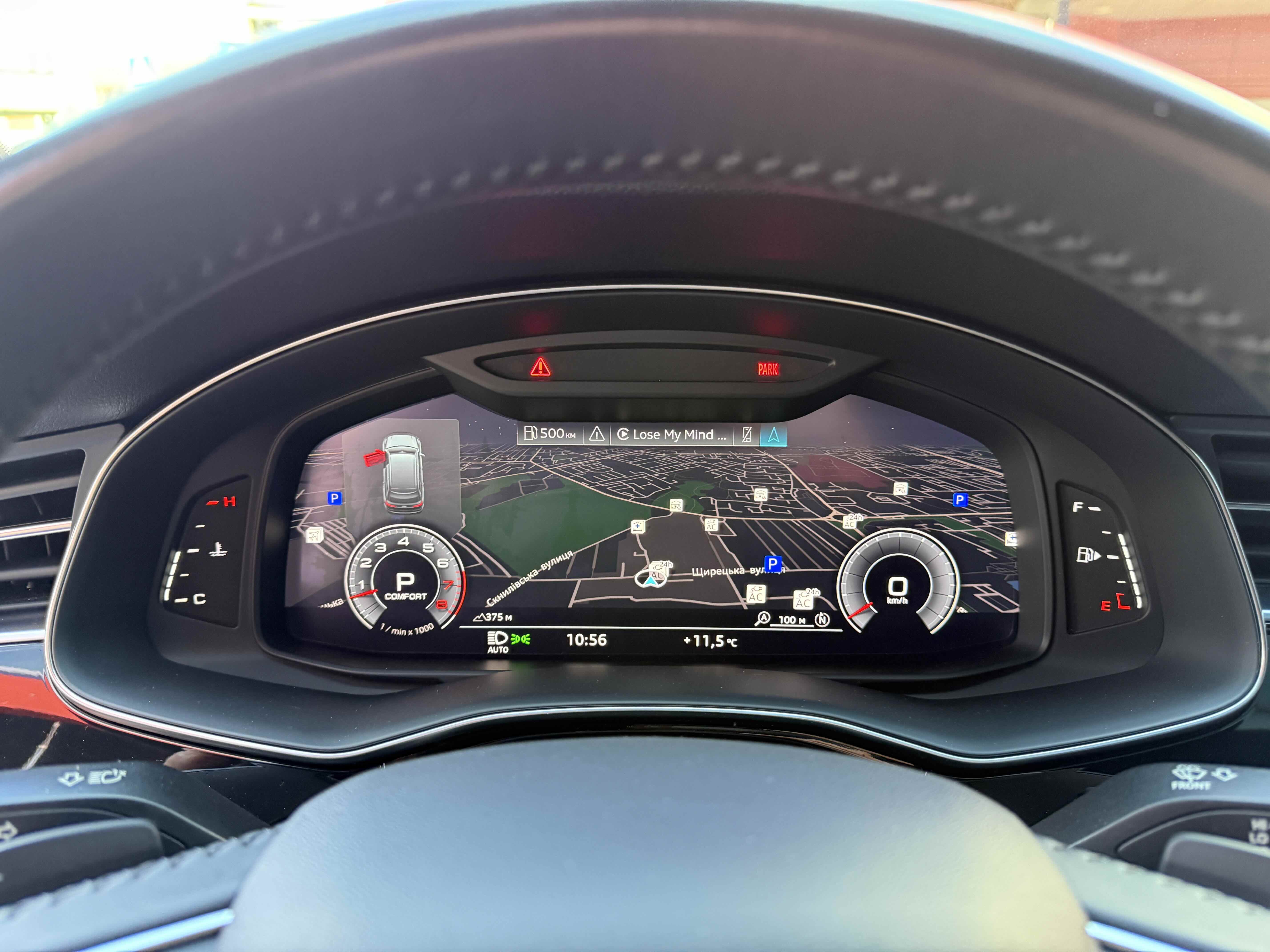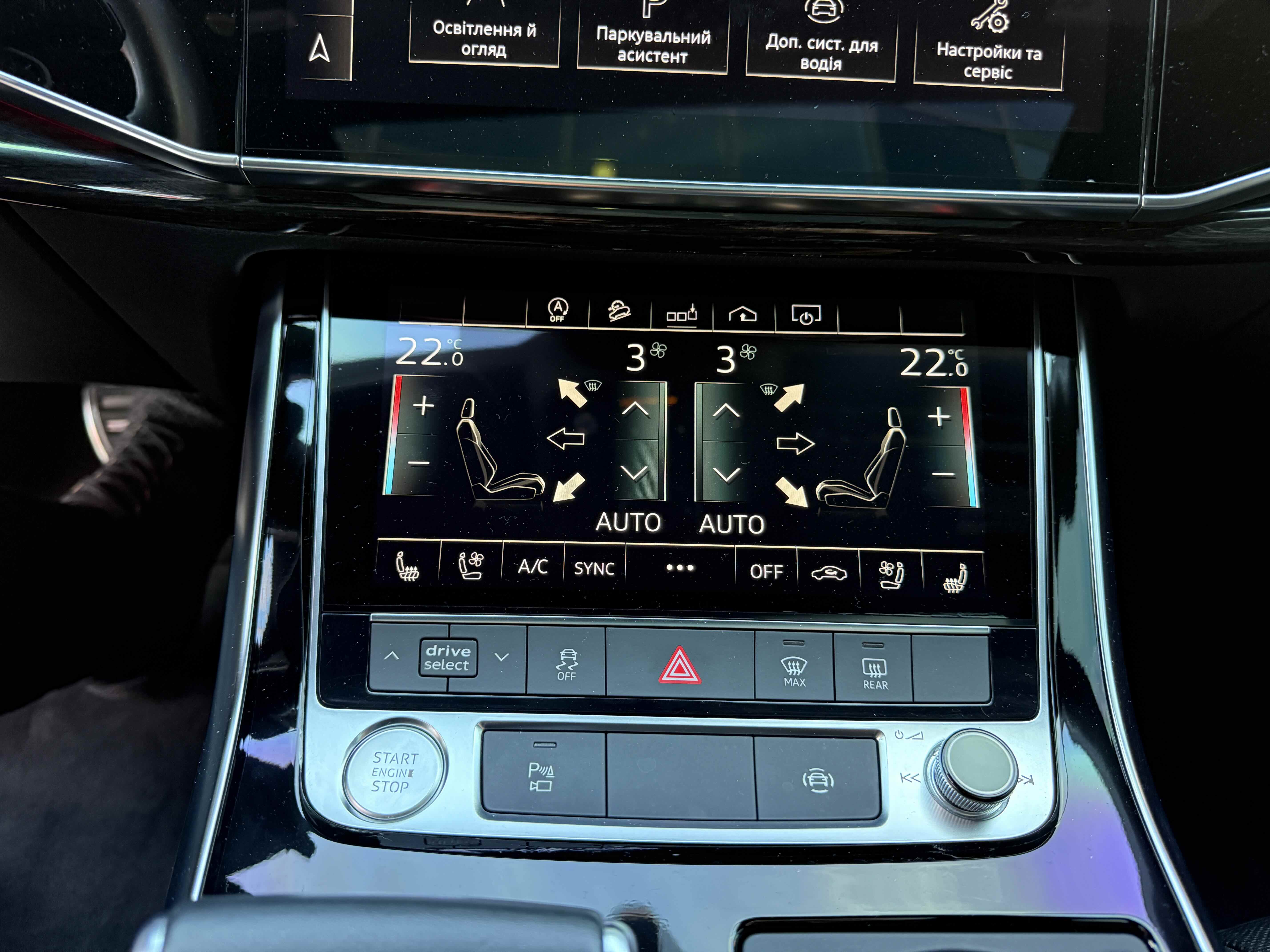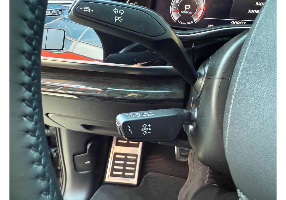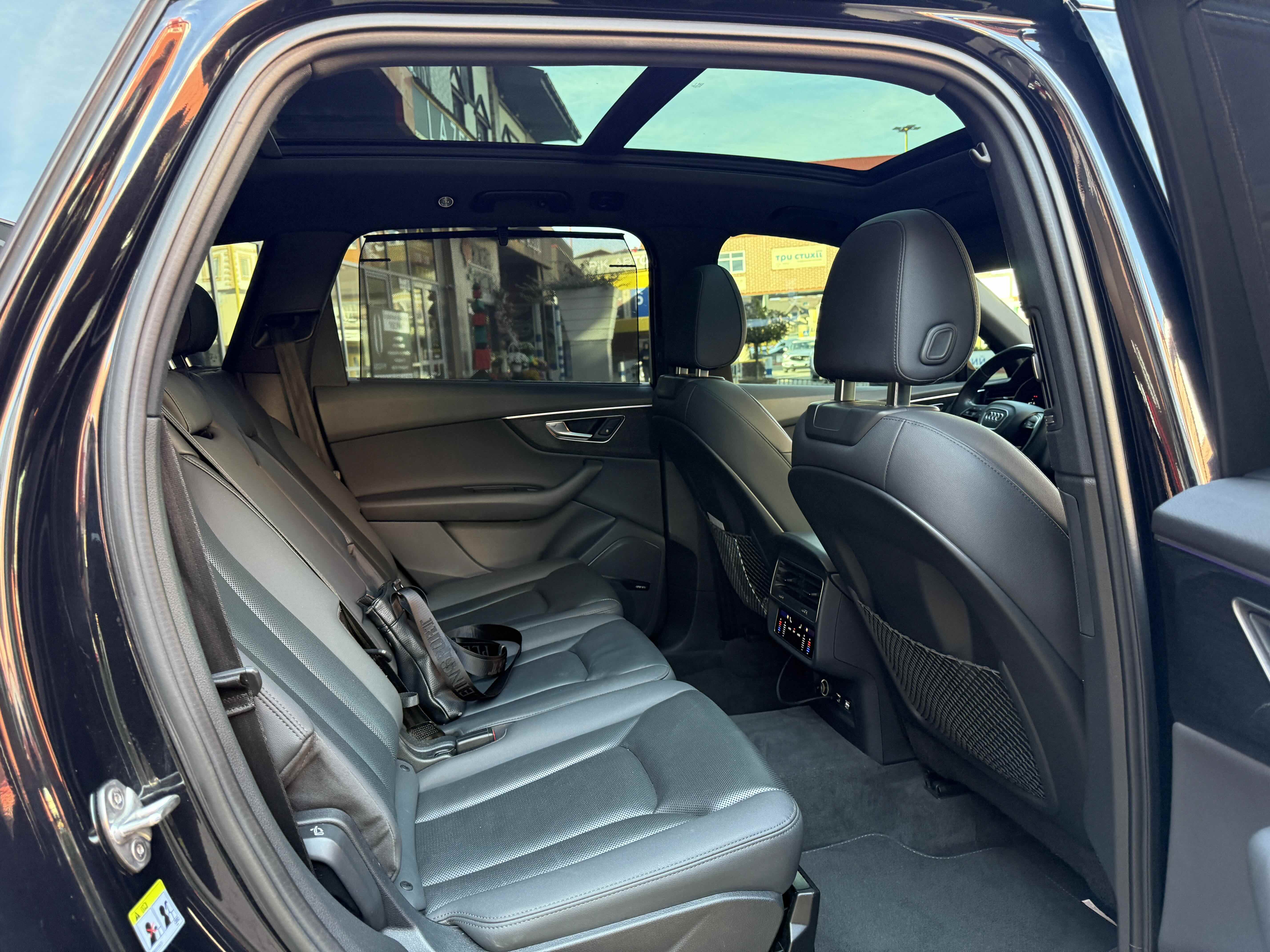 У списку оснащення Ауді Ку7: проекція, панорамний верх, круговий огляд з 3D-картинкою, підігрів вентиляція і масаж сидінь, чотирьохзонний клімат, обігрів рульового колеса, аудіосистема Bang & Olufsen (23 динаміка, підсилювач, сабвуфер) потужністю 1920 Ватт, нічне бачення, адаптивний круїз, утримання в смузі, контроль «мертвих» зон і екстрене гальмування.