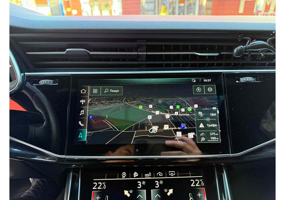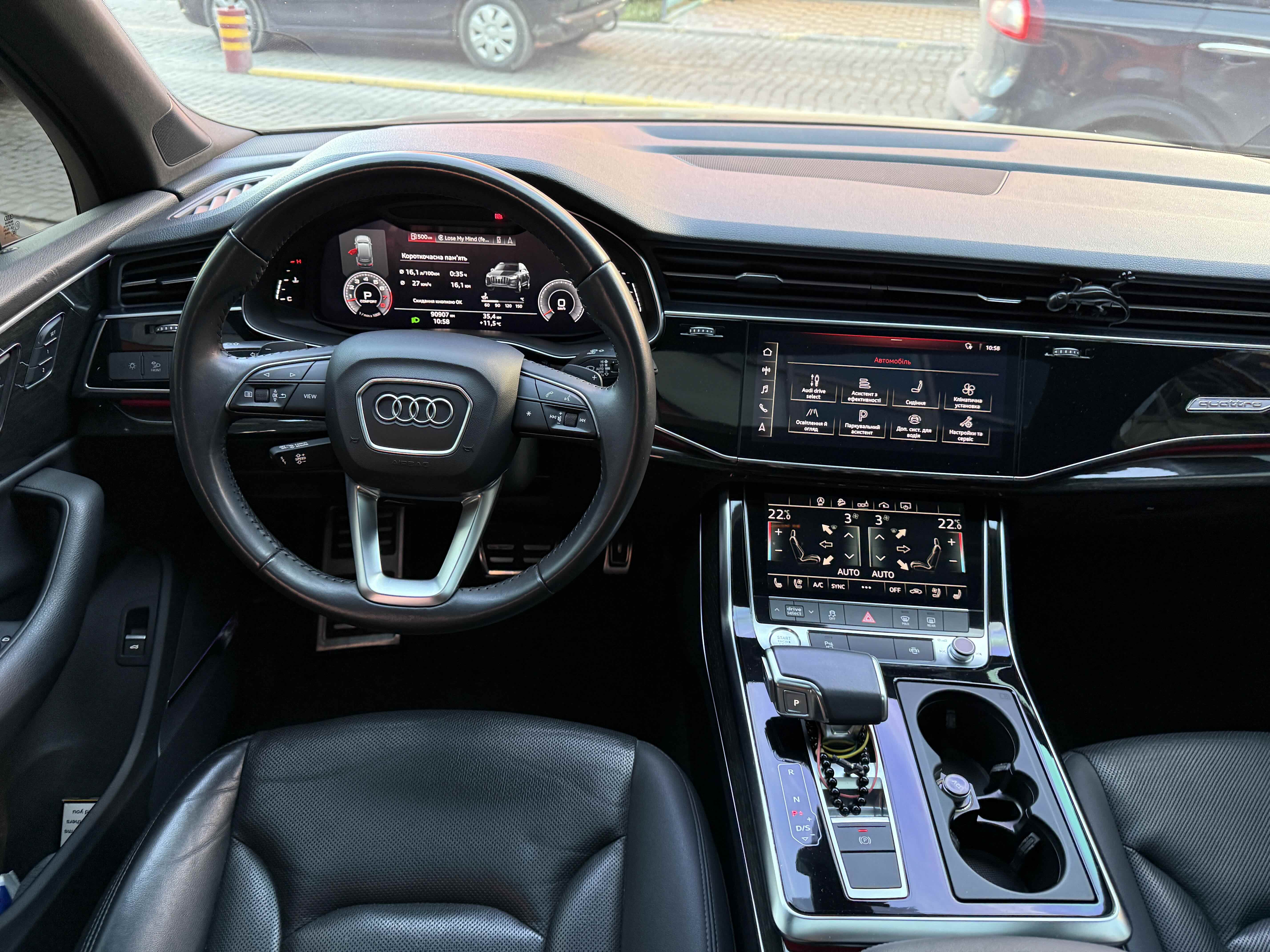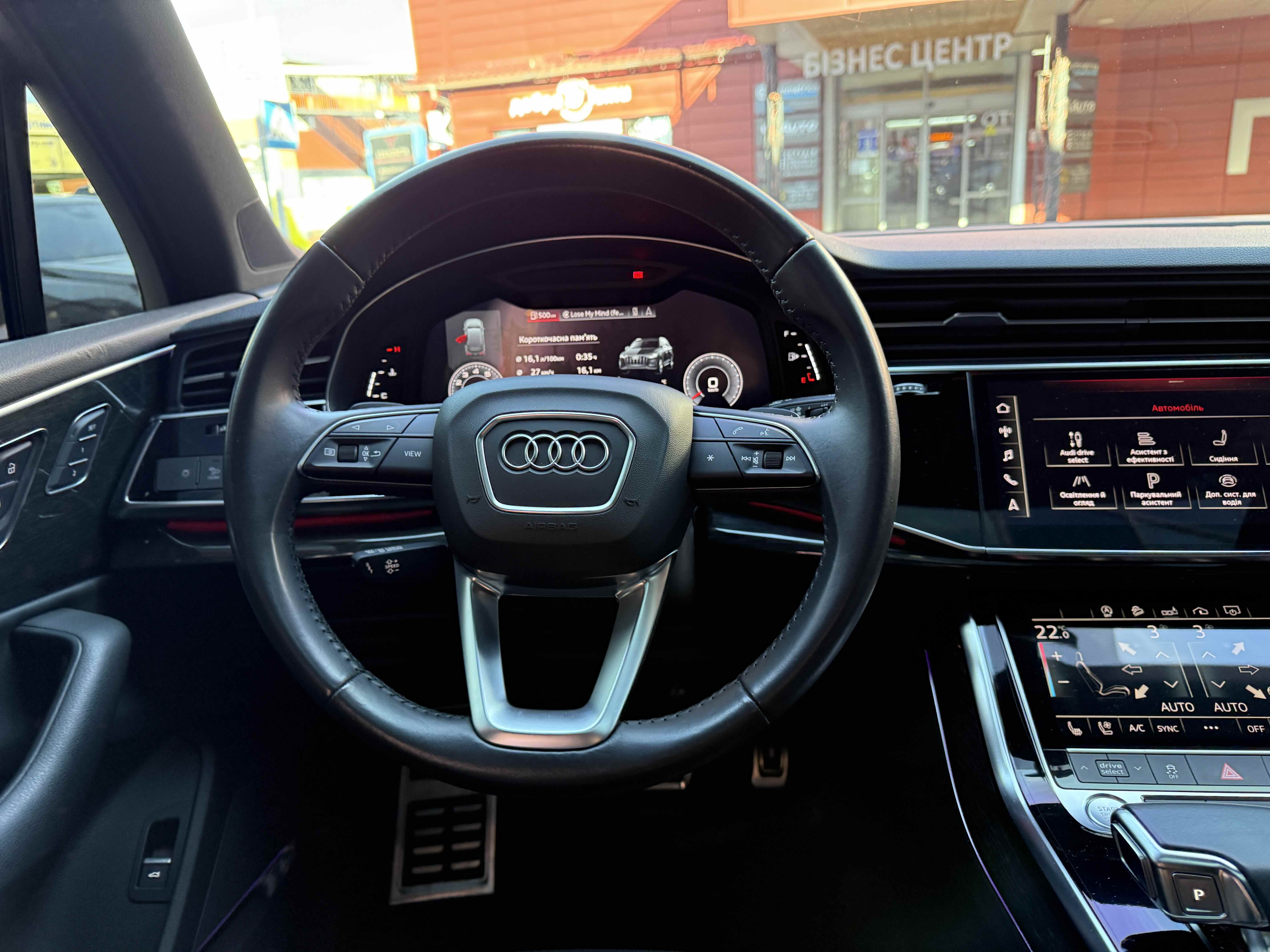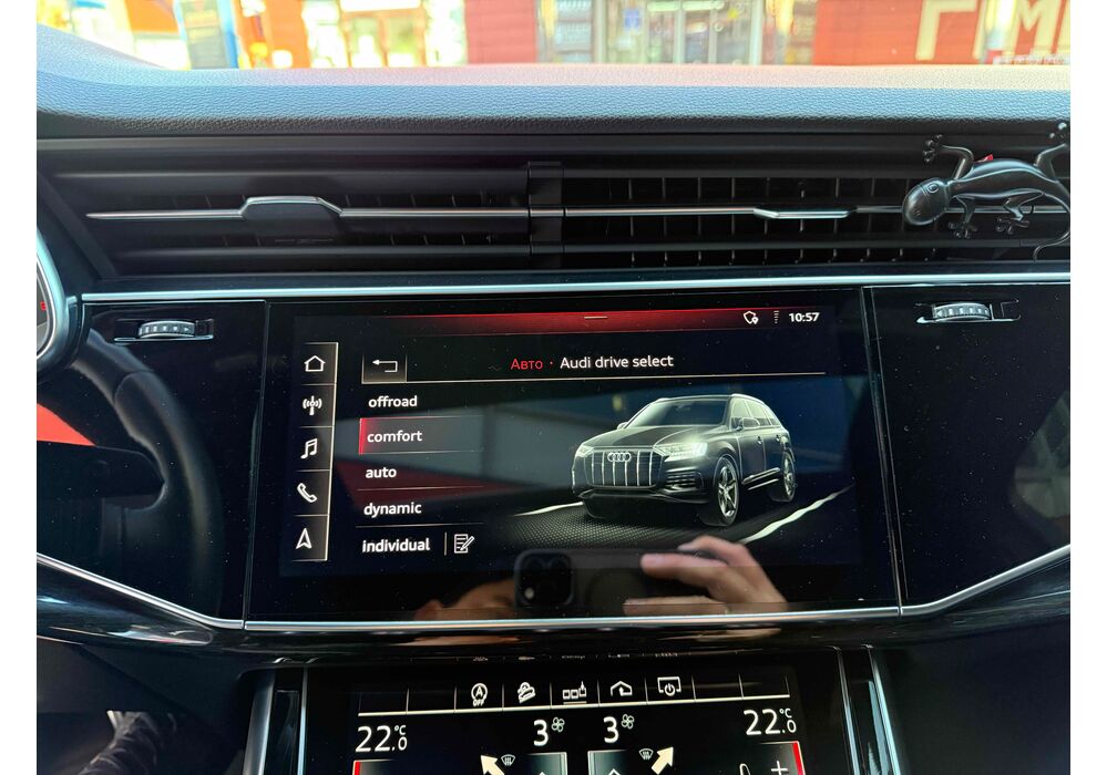 Інтер'єр не став чимось особливим - подібний салон є як у Q8, так і у легкових А6, А7 і А8. Тут точно така ж 12,3-дюймова віртуальна приборка з різною виведеної на неї інформацією, сенсорний 10,1-дюймовий центральний дисплей медіасистеми, що відповідає за безліч налаштувань і навігацію і 8,6-дюймовий тачскрін для введення тексту і управління кліматичною установкою. Виглядає все це витончено, сучасно і елегантно.