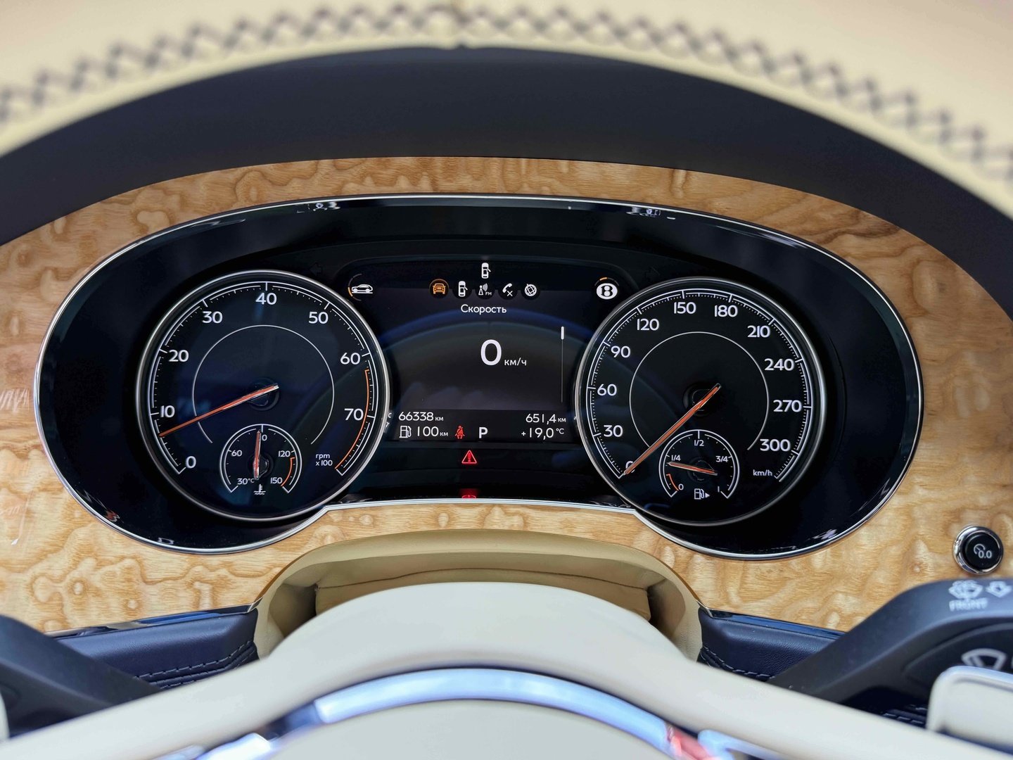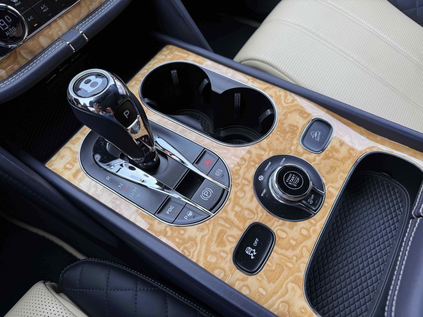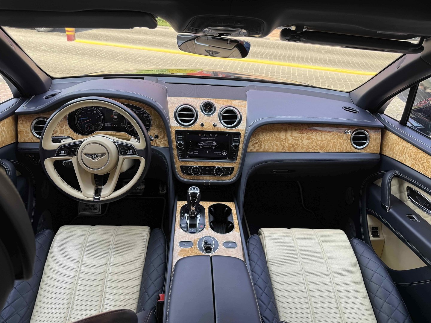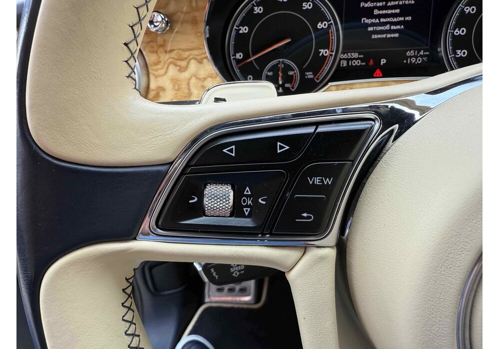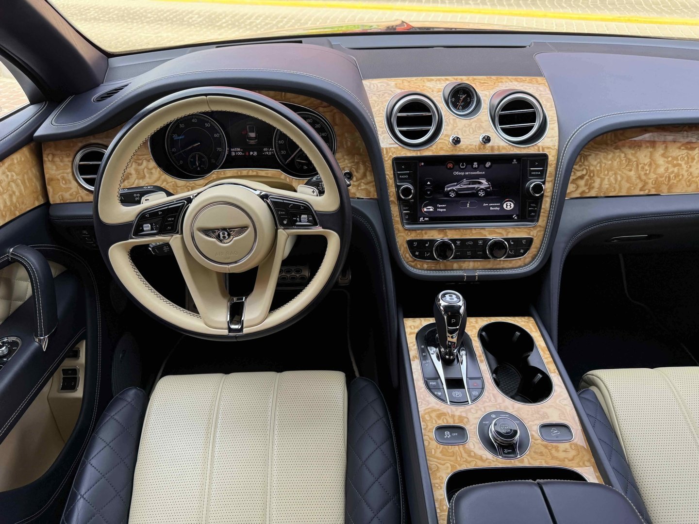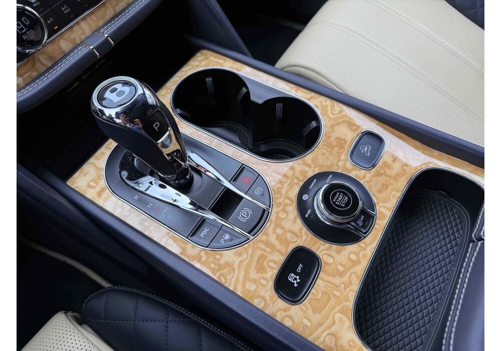 Селектор на центральному тунелі пропонує на вибір вісім режимів руху, найбільш придатних під ту чи іншу поверхню. У вигляді опції в салон можна замовити золоті механічний годинник Breitling Mulliner Tourbillon, інкрустовані діамантами, з автоматичним заведенням. Відтінок золота і колір циферблата - за бажанням власника.