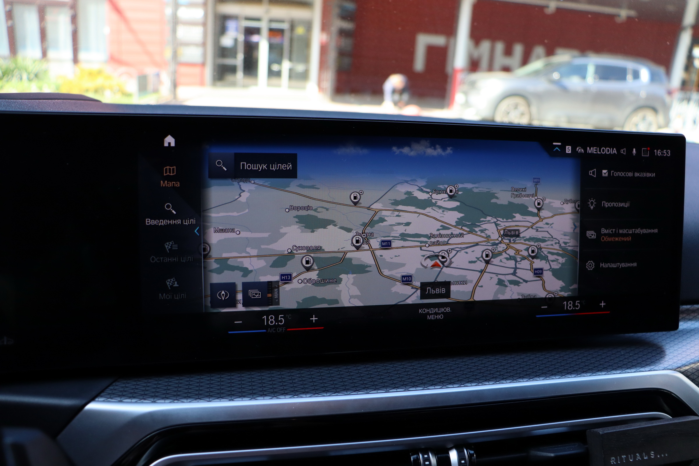 Проектор щитка приладів на склі:
