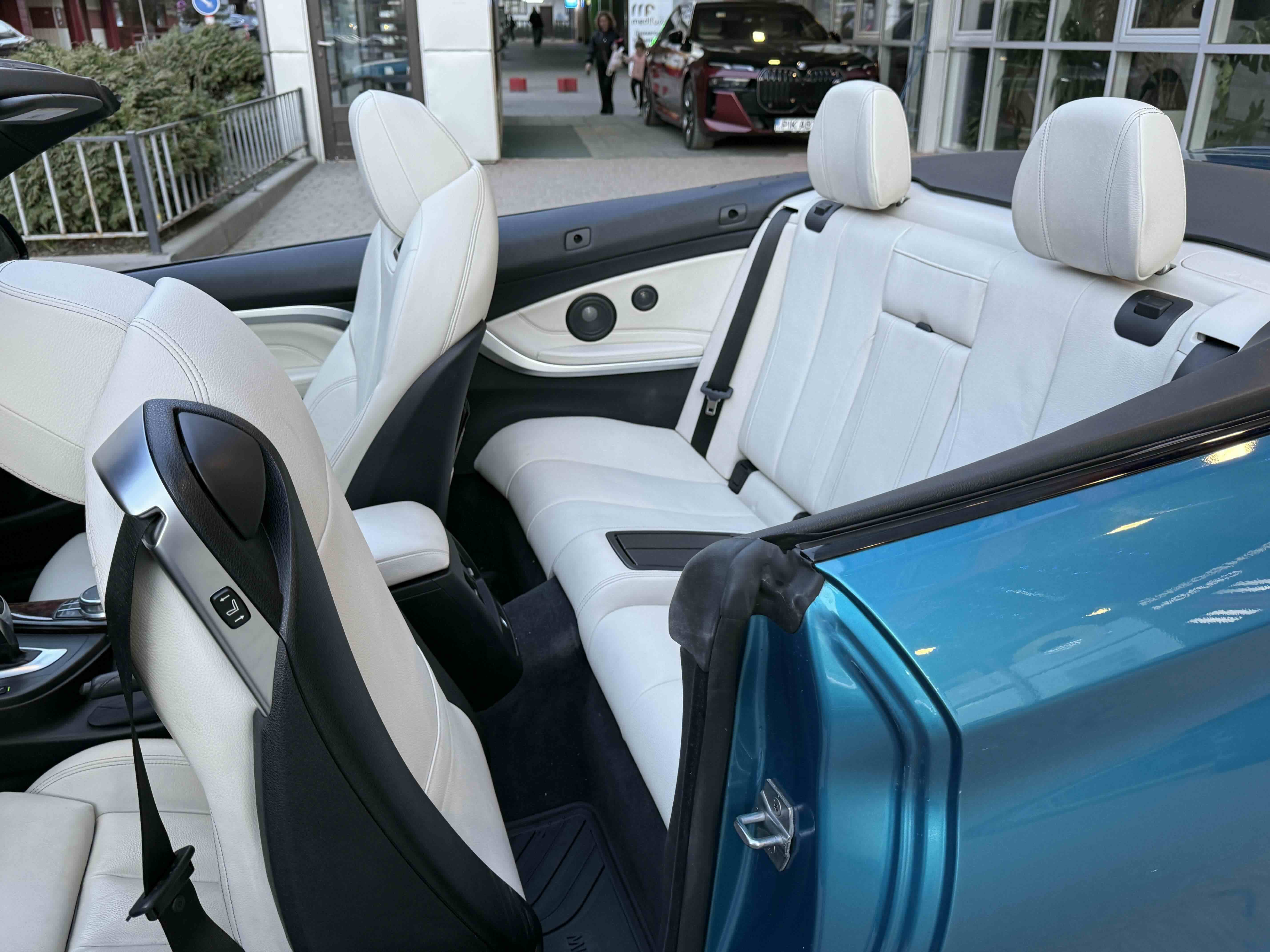Відкрита версія BMW 4-Series отримала жорсткий складаний верх, який складається з трьох частин і здатний "ховатися" в багажник за 20 секунд. У складеному стані він скорочує обсяг 370-літрового відсіку на 150 літрів.