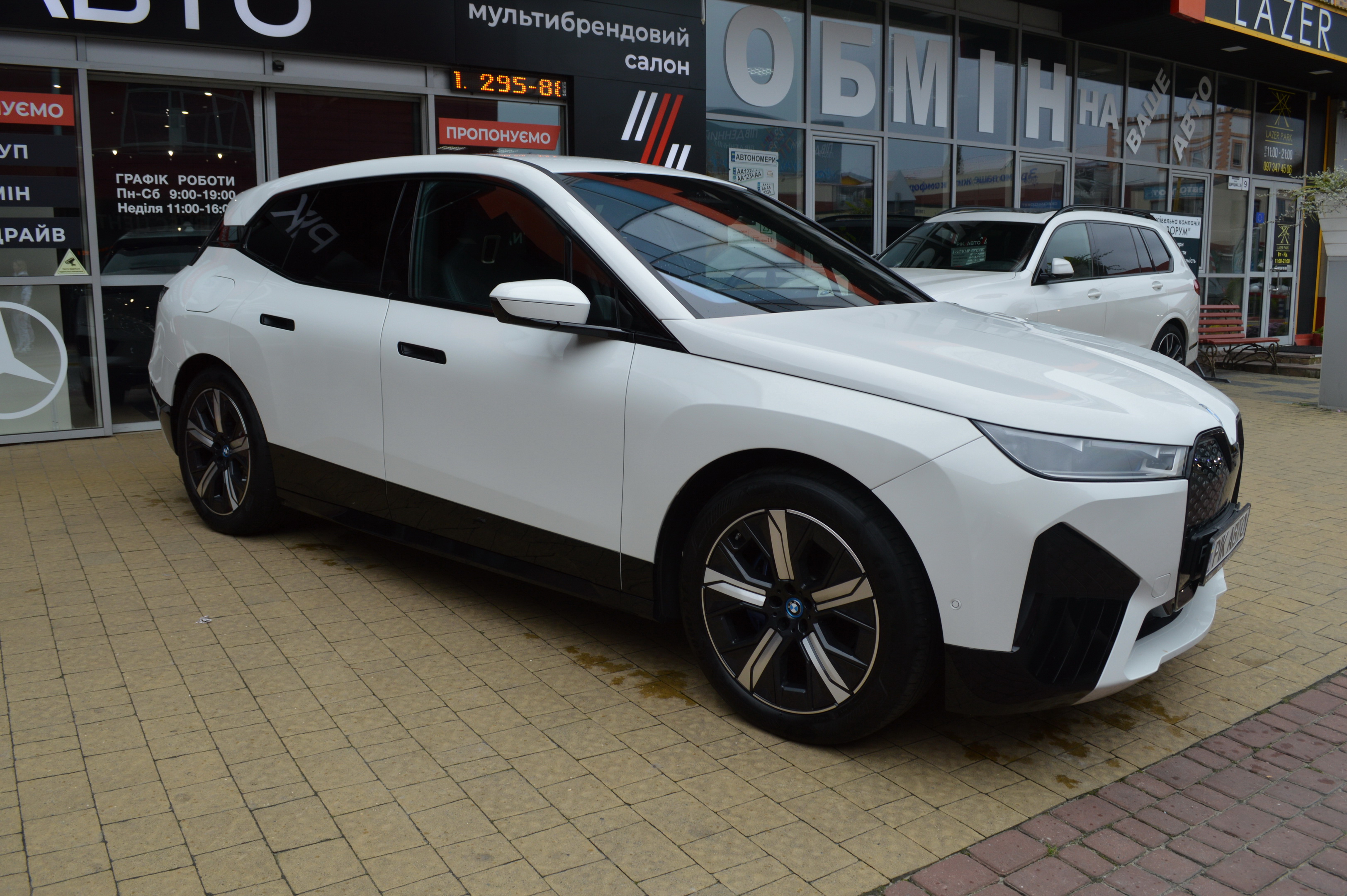 Дизайн нового BMW iX виконаний у стилі SAV (Sport Activity Vehicle). Якщо вірити задумам дизайнерів, то для реалізації новинки використовуються рівні поверхні без ламаних ліній, які, у свою чергу, створюють враження впевненості та надійності. Для порівняння, новий BMW iX за розмірами підходить під габарити нового BMW X5, а ось за висотою ближче до BMW X6. Основою для електричного кросовера послужили 20″ легкосплавні диски, як опція пропонують 21″ або 22″ диски APW, які на 15% легші за стандартні 20-і. Зменшення ваги дисків допомогло збільшити запас ходу одному заряді батарей. Початкова версія BMW iX xDrive40 має потужність 326 л. та крутний момент 630 Нм.