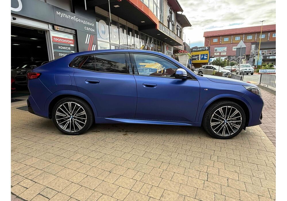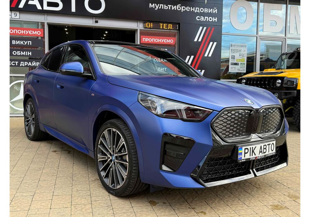 BMW iX2 - електричний кросовер, який вражає своїм виразним дизайном та передовими технологіями. Зберігаючи основні риси концепції iX1, автомобіль вигідно виділяється завдяки своєму спортивному обліку та індивідуальним елементам.