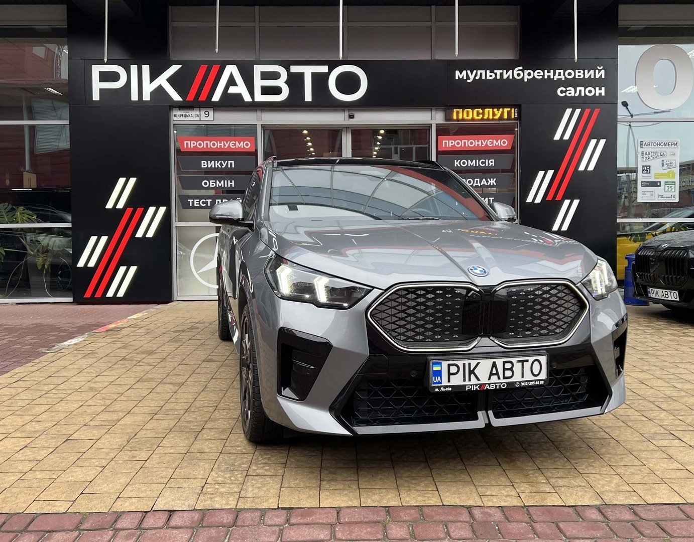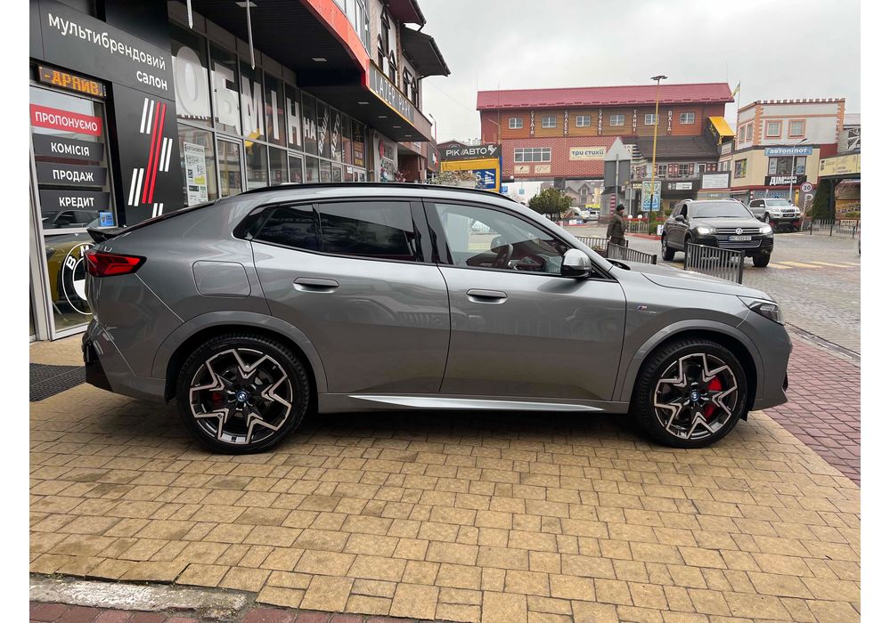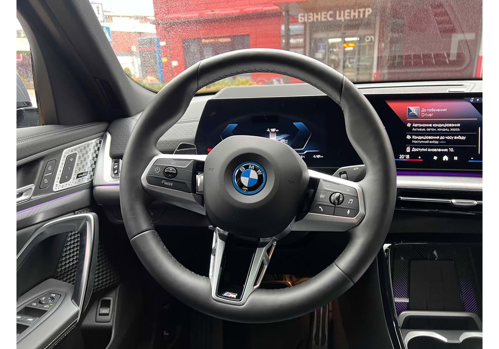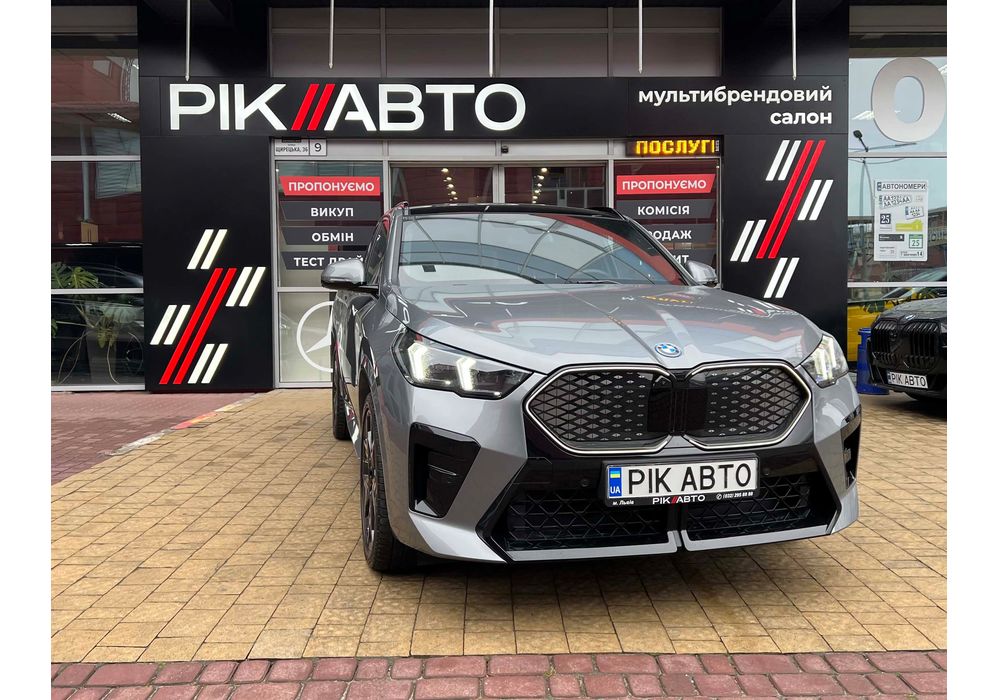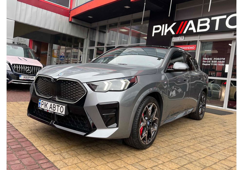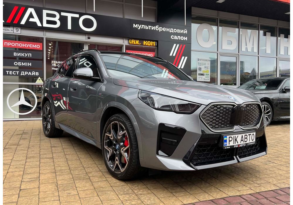 BMW iX2 - електричний кросовер, який вражає своїм виразним дизайном та передовими технологіями. Зберігаючи основні риси концепції iX1, автомобіль вигідно виділяється завдяки своєму спортивному обліку та індивідуальним елементам.