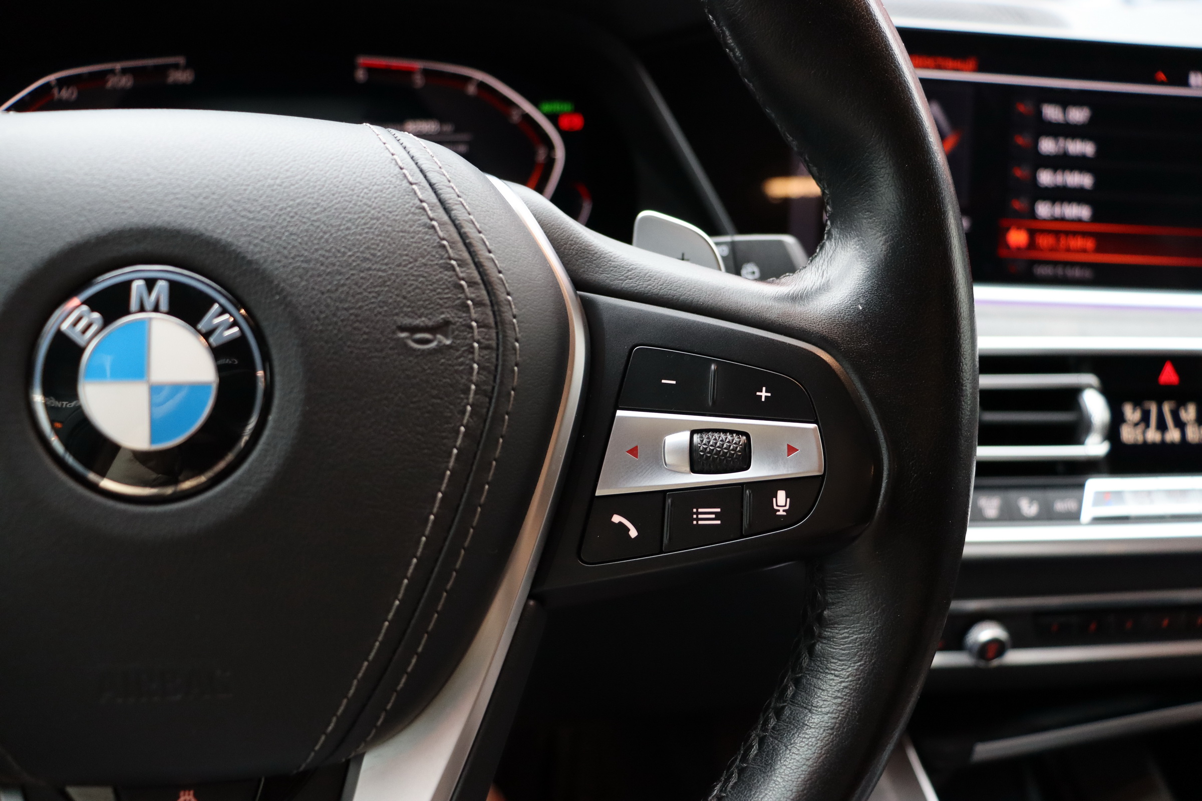 Праворуч влаштувався "телевізор" нової мультимедіа iDrive 7.0 такого ж розміру. Дизайнери пішли по шляху Mercedes-Benz, об'єднавши його в єдиний блок з приборки. При цьому перегородка між екранами більш явна, а центральна консоль помітно розгорнута до водія. Кнопка запуску двигуна перебралася на центральний тунель - ближче до подіуму КПП.