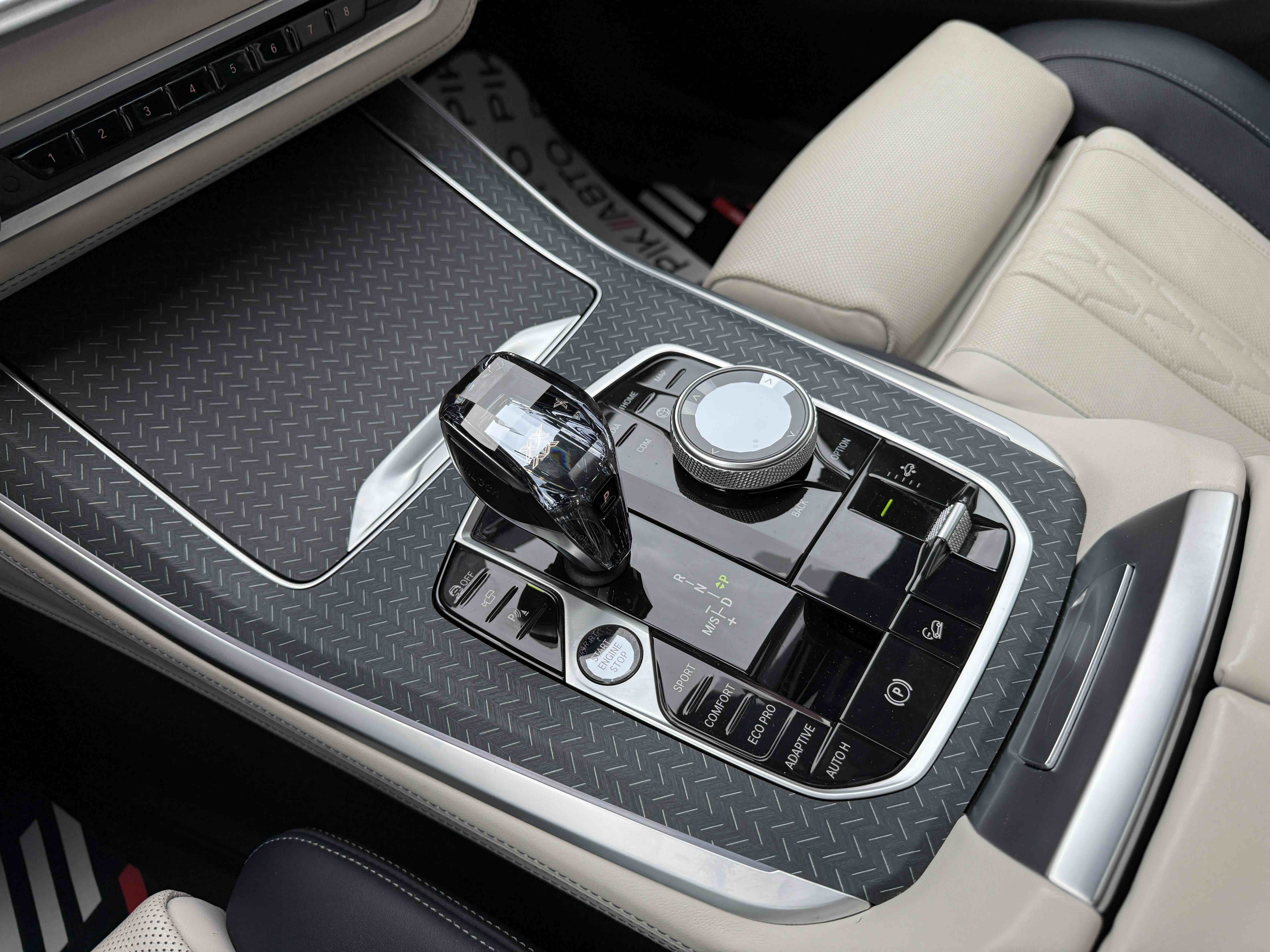 Праворуч влаштувався "телевізор" нової мультимедіа iDrive 7.0 такого ж розміру. Дизайнери пішли по шляху Mercedes-Benz, об'єднавши його в єдиний блок з приборки. При цьому перегородка між екранами більш явна, а центральна консоль помітно розгорнута до водія. Кнопка запуску двигуна перебралася на центральний тунель - ближче до подіуму КПП.