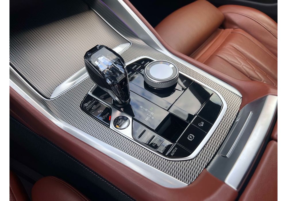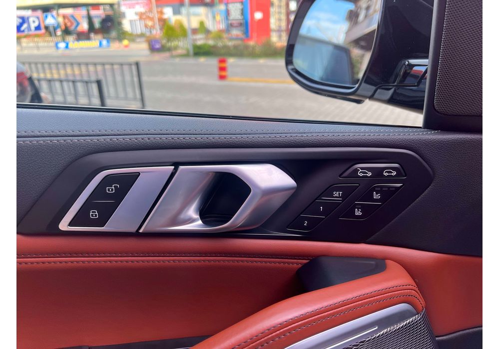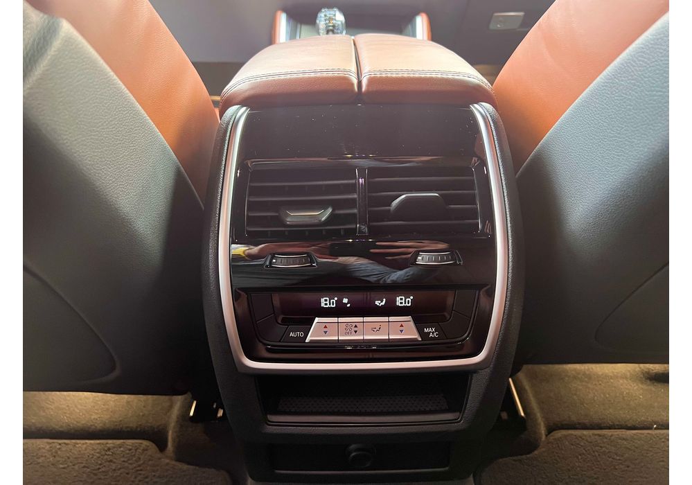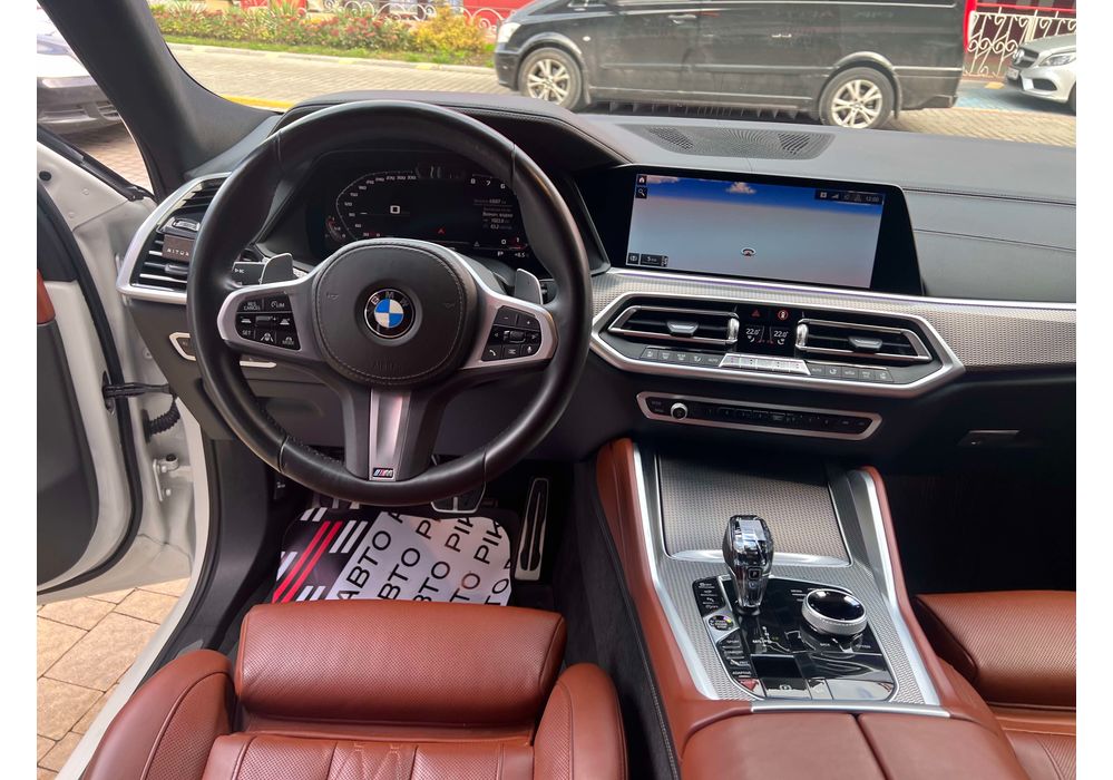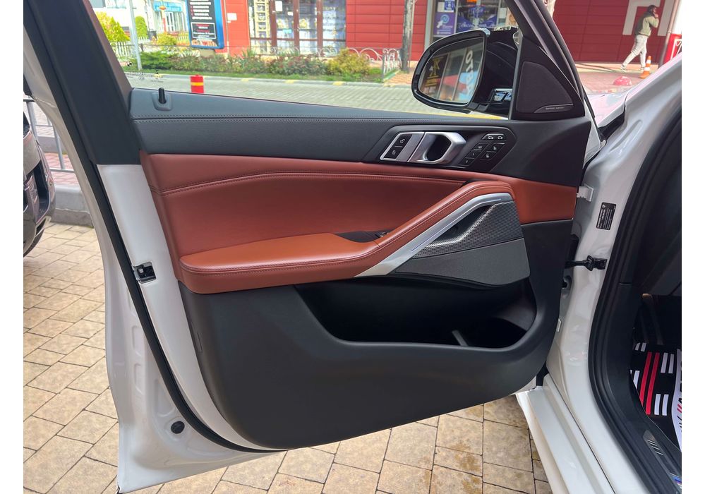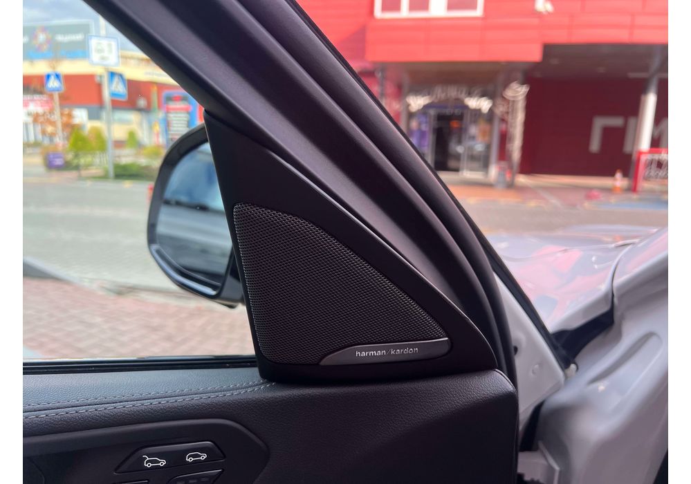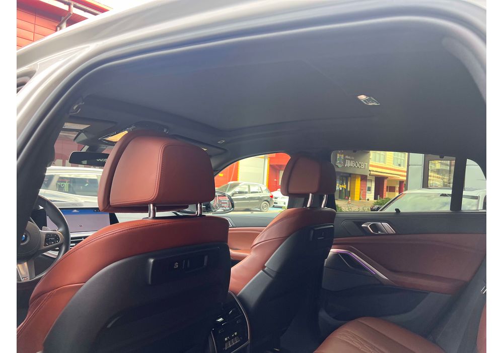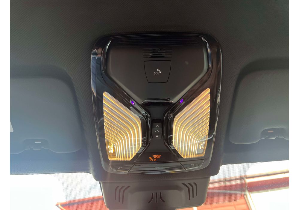 З опцій: панорамний дах, скляні елементи салону (селектор КПП, кнопка запуску двигуна, «шайба» iDrive і «крутилка» гучності звуку), чотирьохзонний клімат, проекція, адаптивний круїз, прилад нічного бачення, камери 360, помічник при русі заднім ходом, утримання в смузі, моніторинг мертвих зон, екстрене гальмування, контроль знаків і багато іншого.