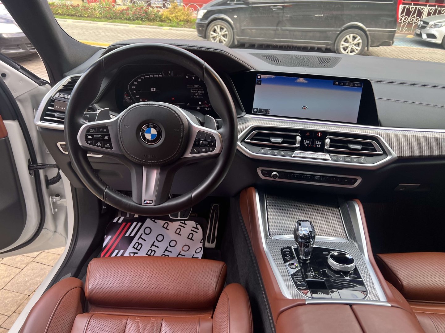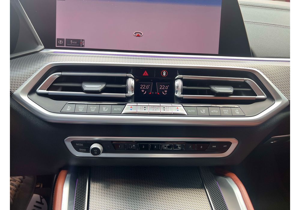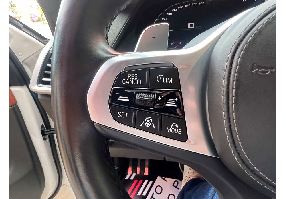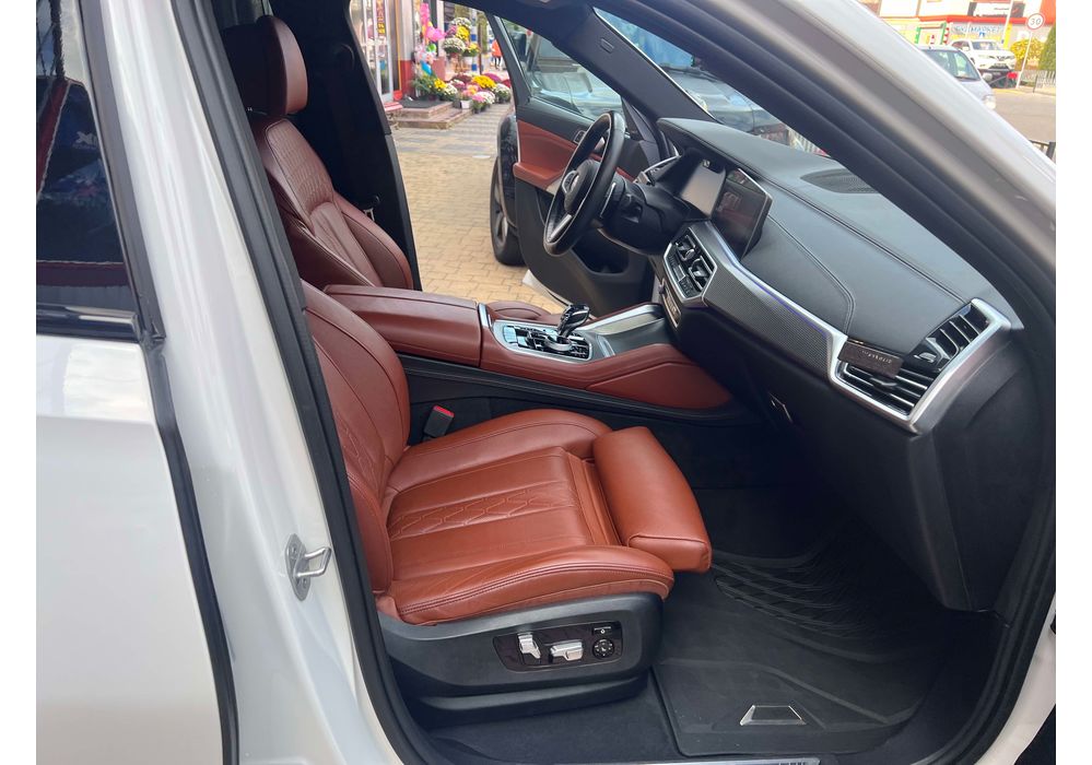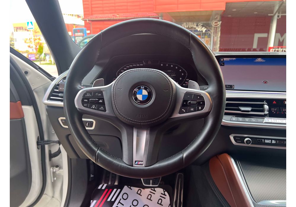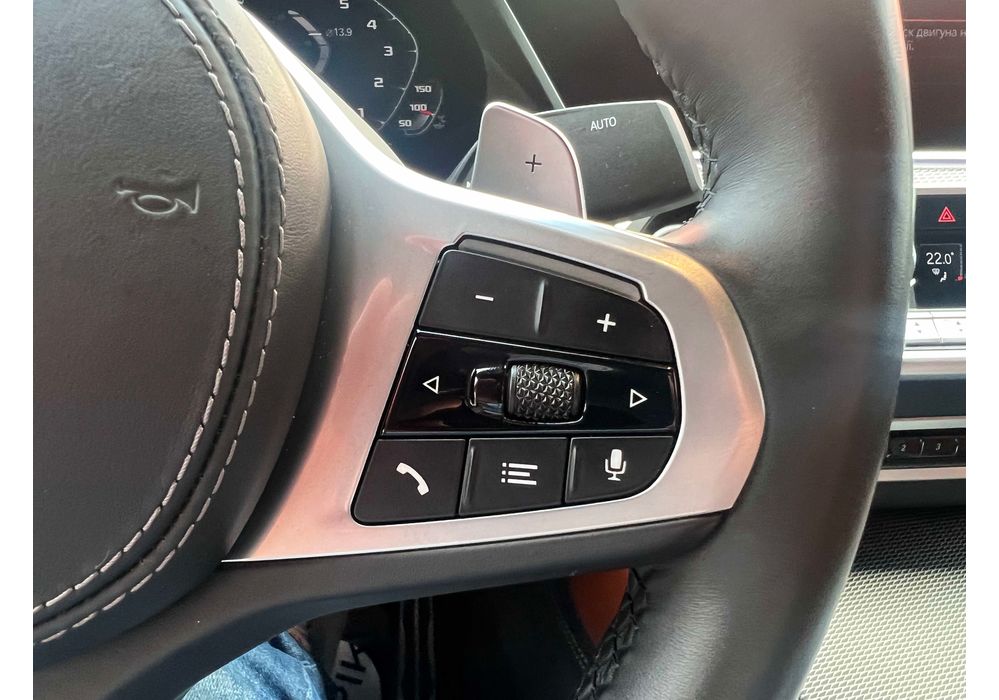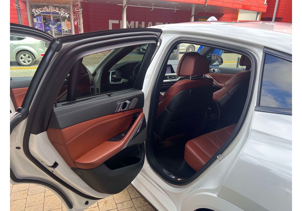 З опцій: панорамний дах, скляні елементи салону (селектор КПП, кнопка запуску двигуна, «шайба» iDrive і «крутилка» гучності звуку), чотирьохзонний клімат, проекція, адаптивний круїз, прилад нічного бачення, камери 360, помічник при русі заднім ходом, утримання в смузі, моніторинг мертвих зон, екстрене гальмування, контроль знаків і багато іншого.