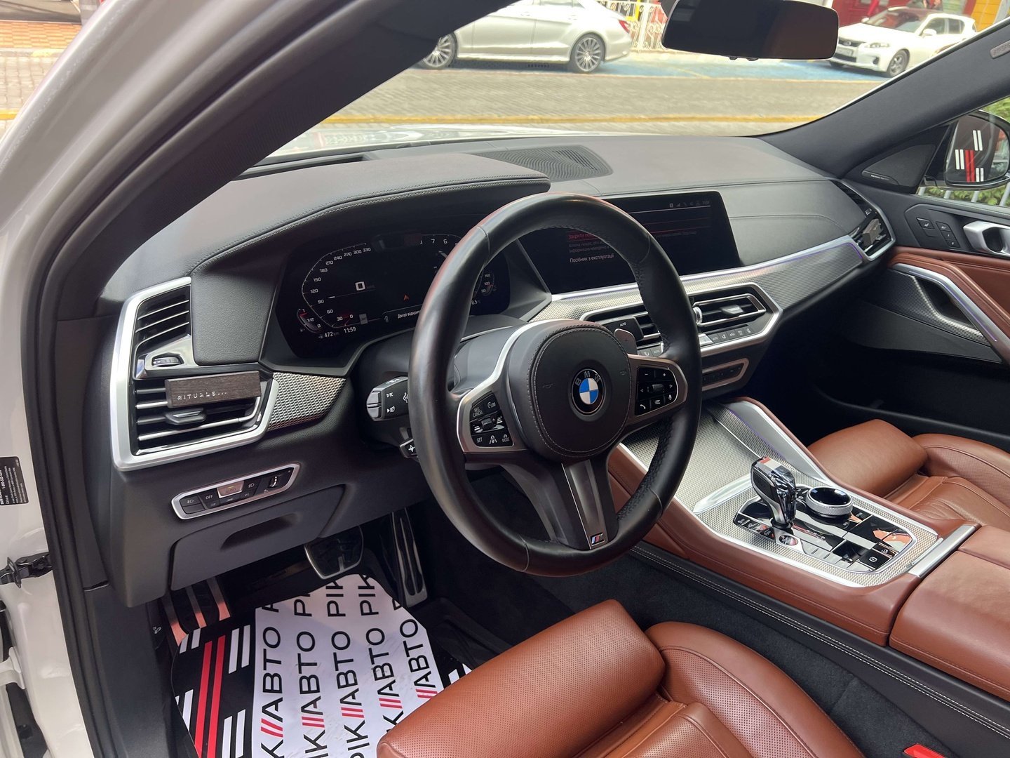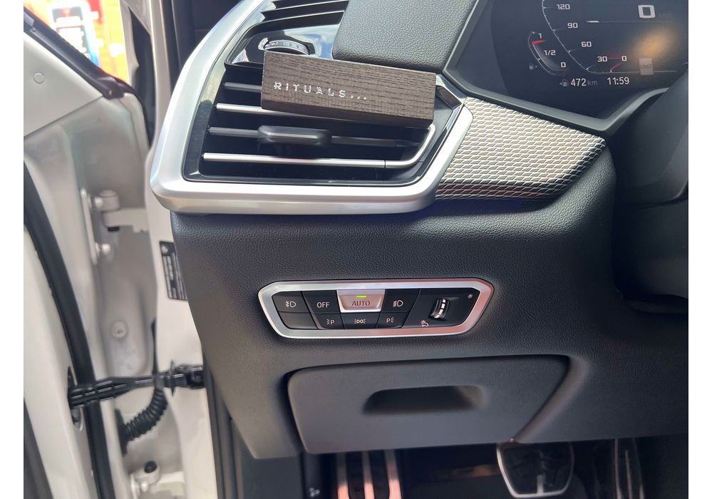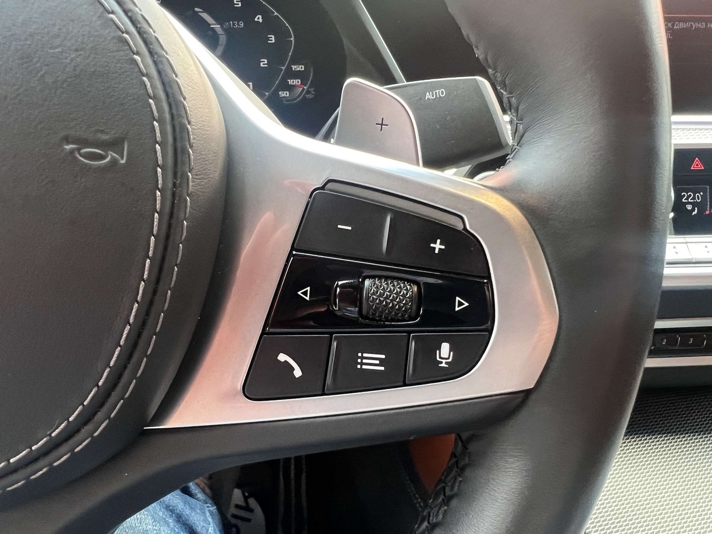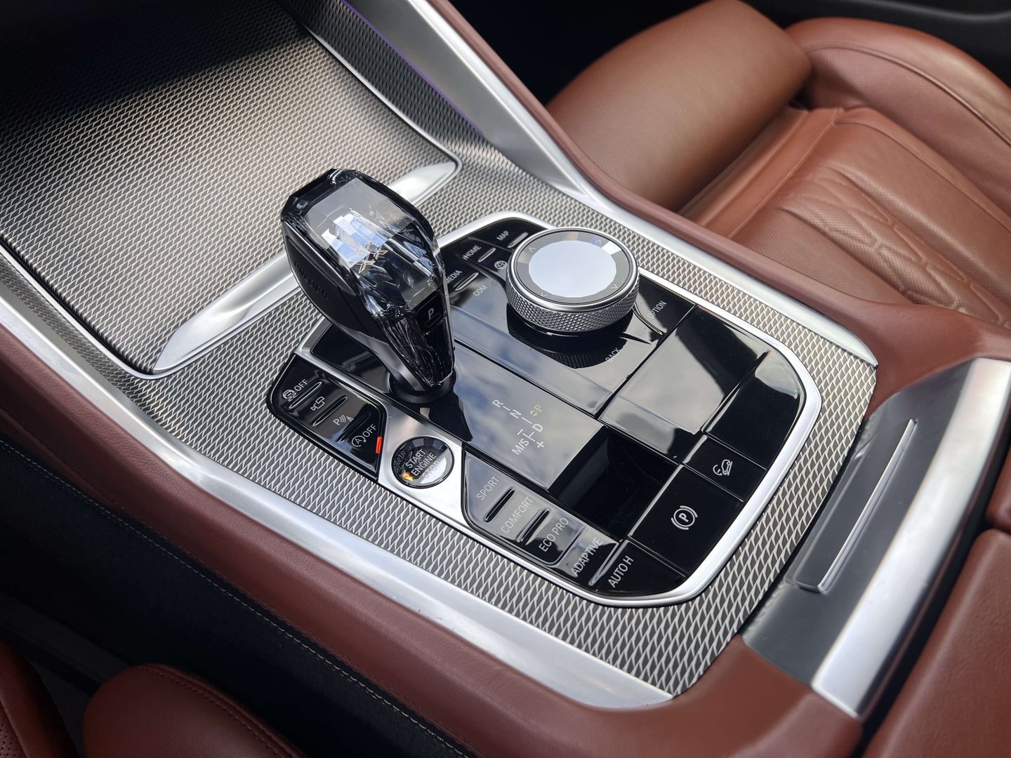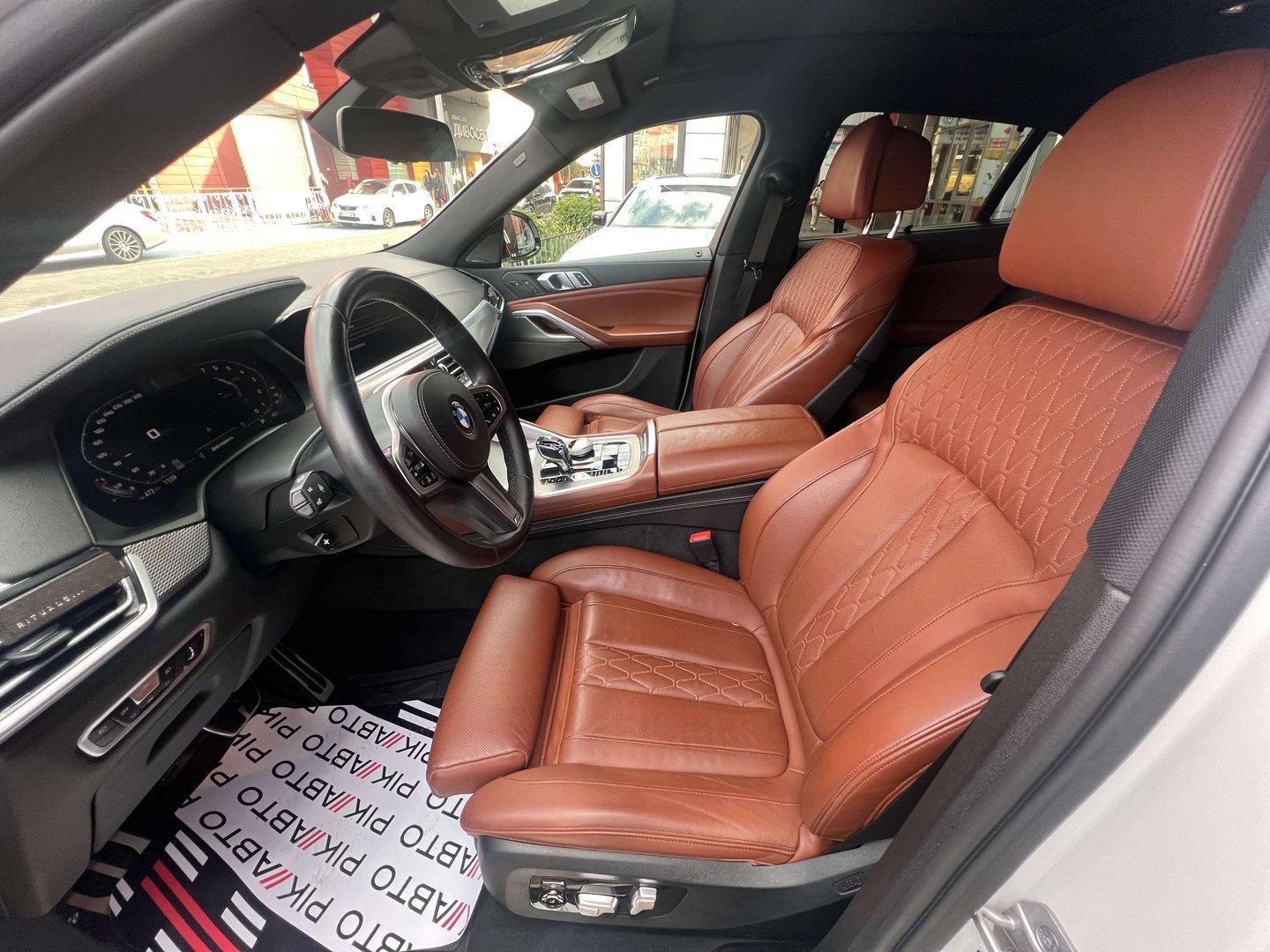 З опцій: панорамний дах, скляні елементи салону (селектор КПП, кнопка запуску двигуна, «шайба» iDrive і «крутилка» гучності звуку), чотирьохзонний клімат, проекція, адаптивний круїз, прилад нічного бачення, камери 360, помічник при русі заднім ходом, утримання в смузі, моніторинг мертвих зон, екстрене гальмування, контроль знаків і багато іншого.