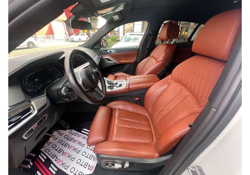 Інтер'єр точна копія «Ікс-П'ять». Перед водієм точно така ж віртуальна приборка з екраном 12,3-дюйма і точно такий же трьохспицевий мультируль. По центру - аналогічний дисплей (12,3-дюймів) мультимедійної системи BMW 7.0, що реагує на фрази ( «Hey, BMW») і жести. Однак, що б підкреслити «купешний» спортивність «Ікс 6», виробник вже спочатку забезпечив кросовер спортивними сидіннями.