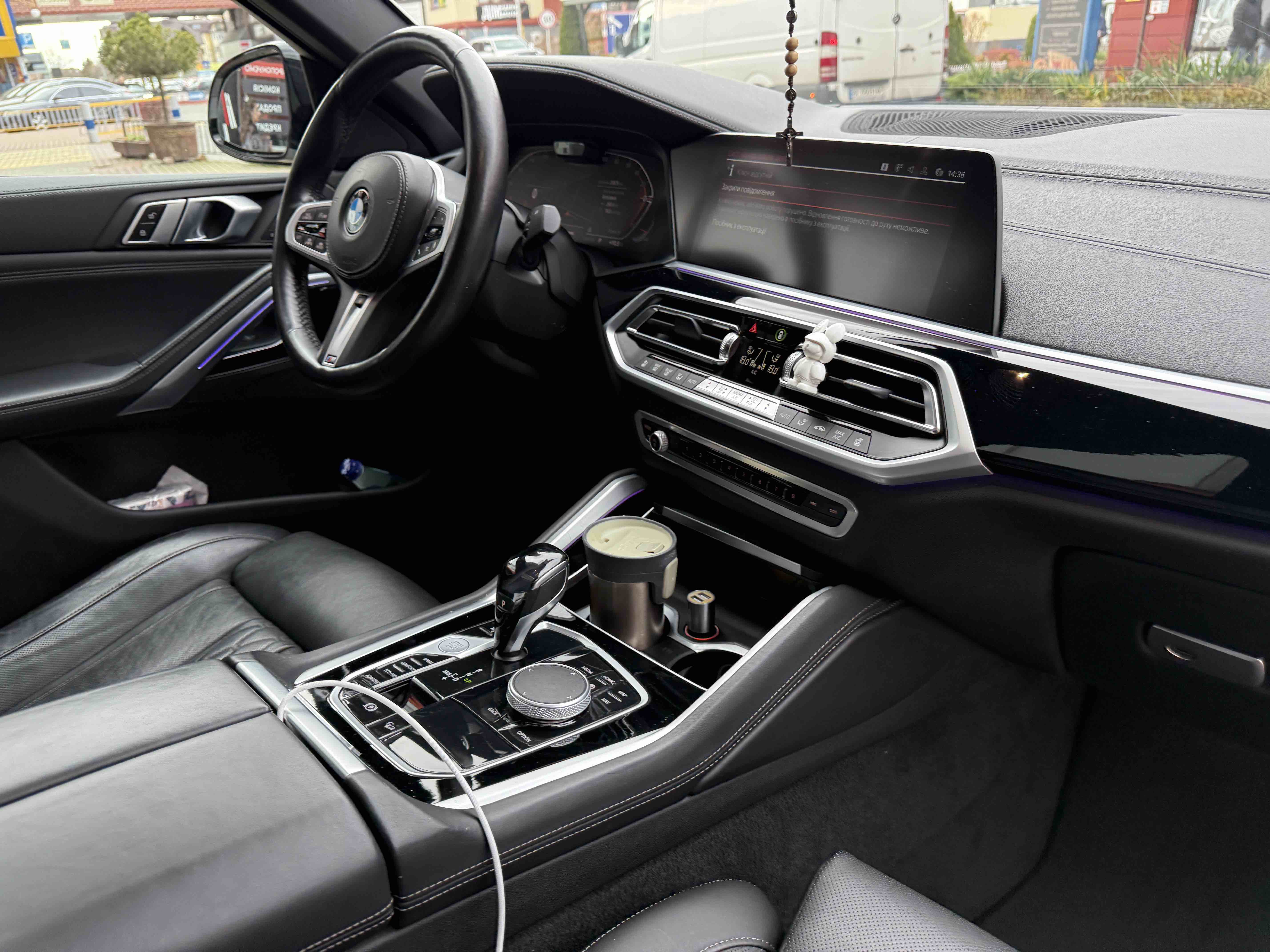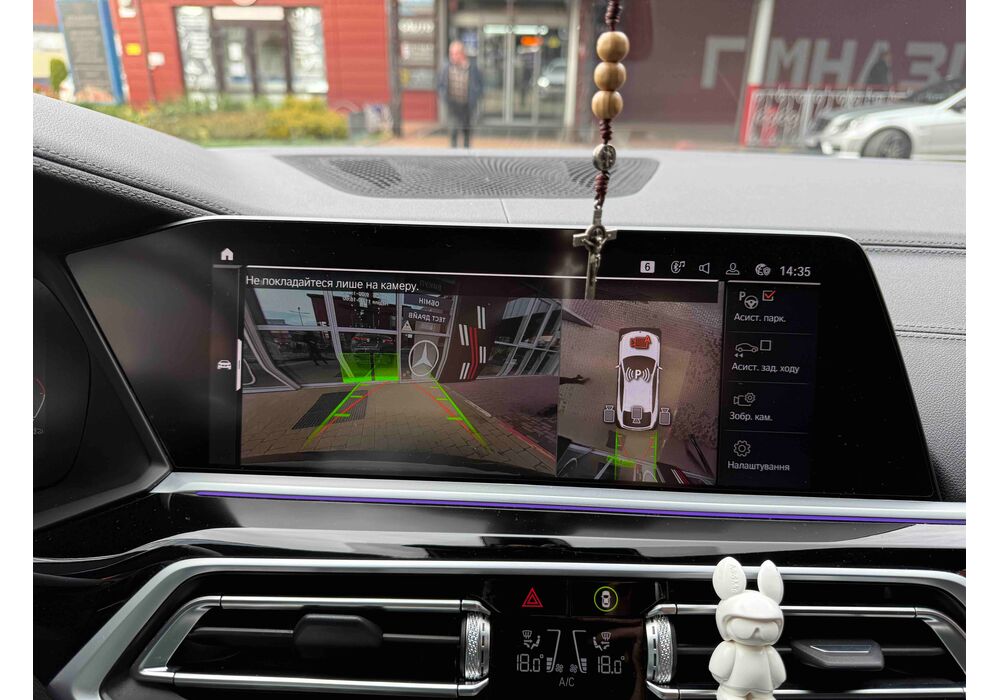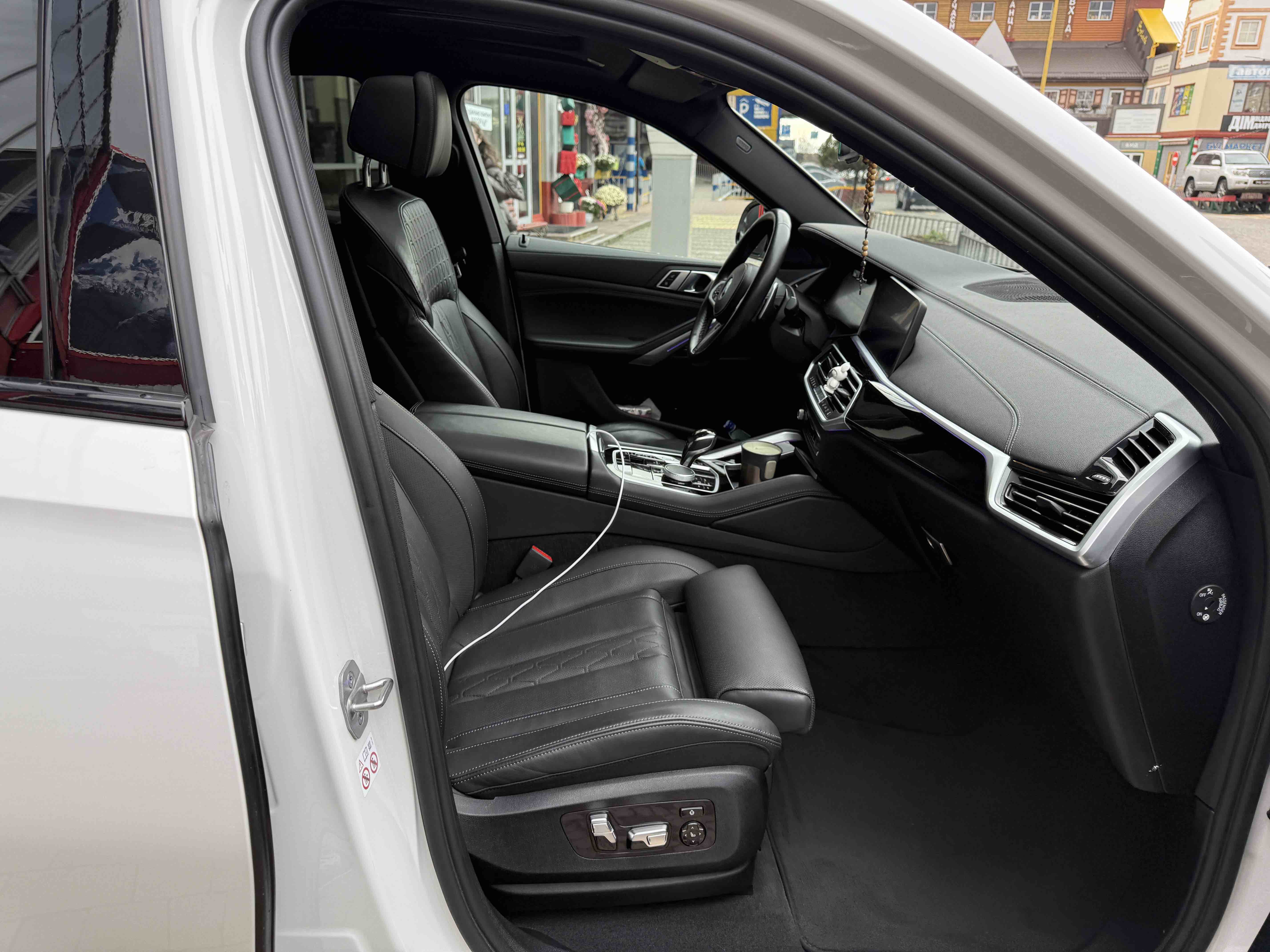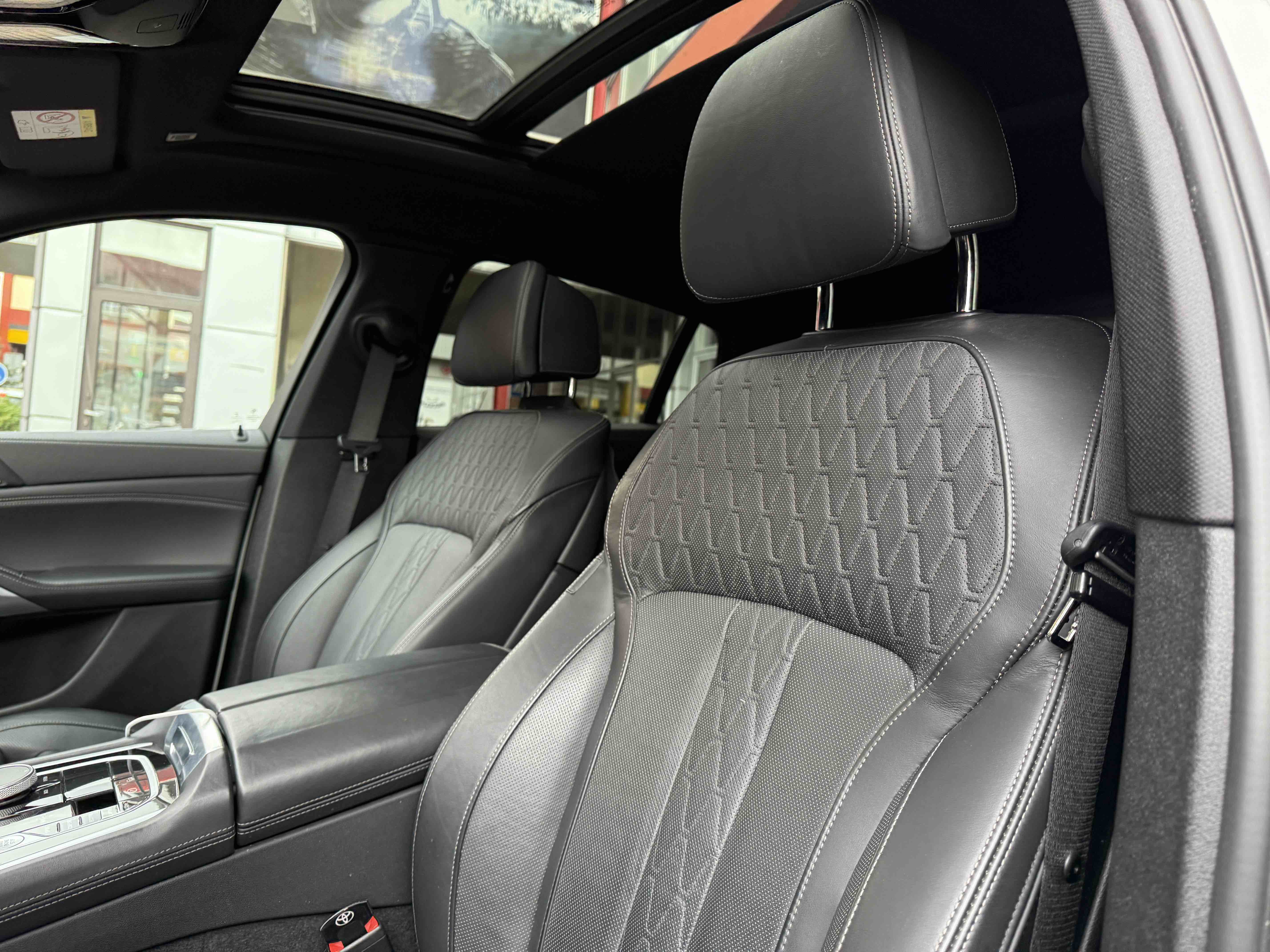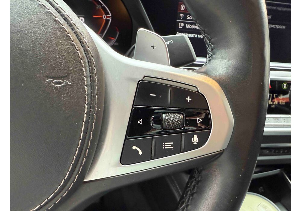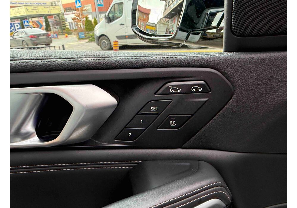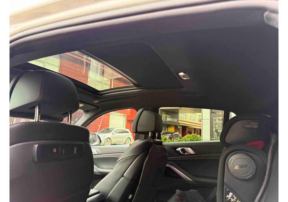 З опцій: панорамний дах, скляні елементи салону (селектор КПП, кнопка запуску двигуна, «шайба» iDrive і «крутилка» гучності звуку), чотирьохзонний клімат, проекція, адаптивний круїз, прилад нічного бачення, камери 360, помічник при русі заднім ходом, утримання в смузі, моніторинг мертвих зон, екстрене гальмування, контроль знаків і багато іншого.
