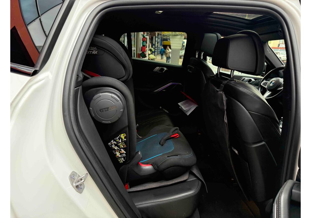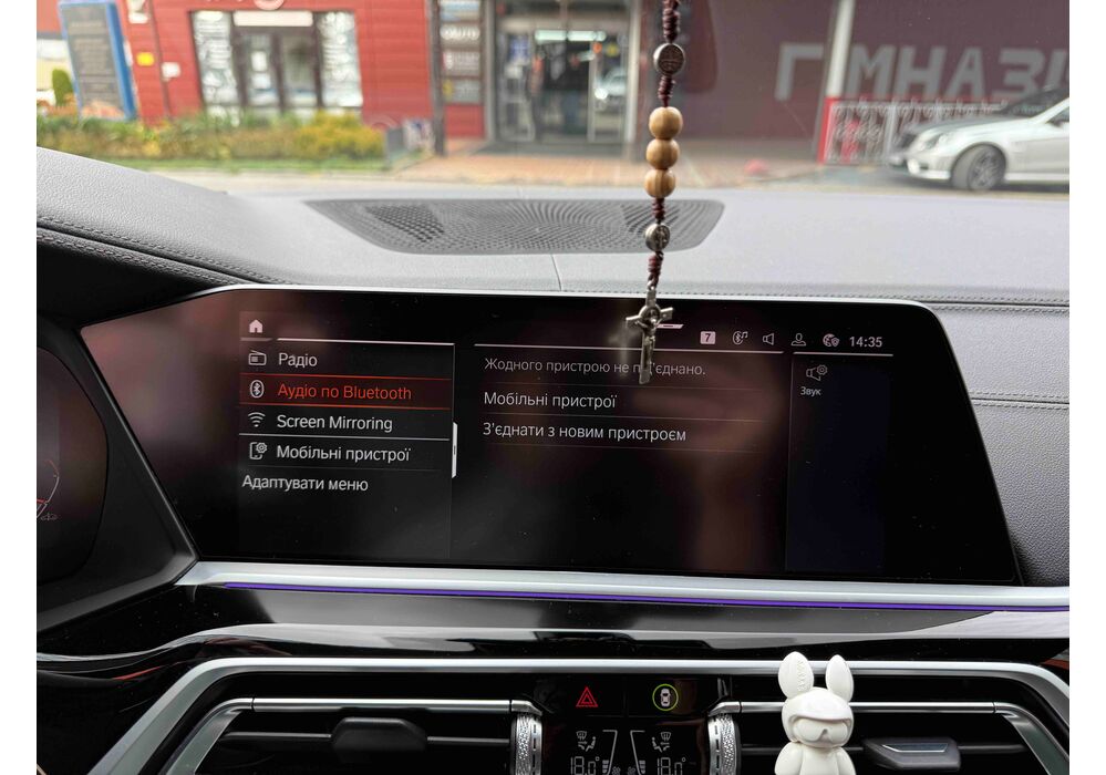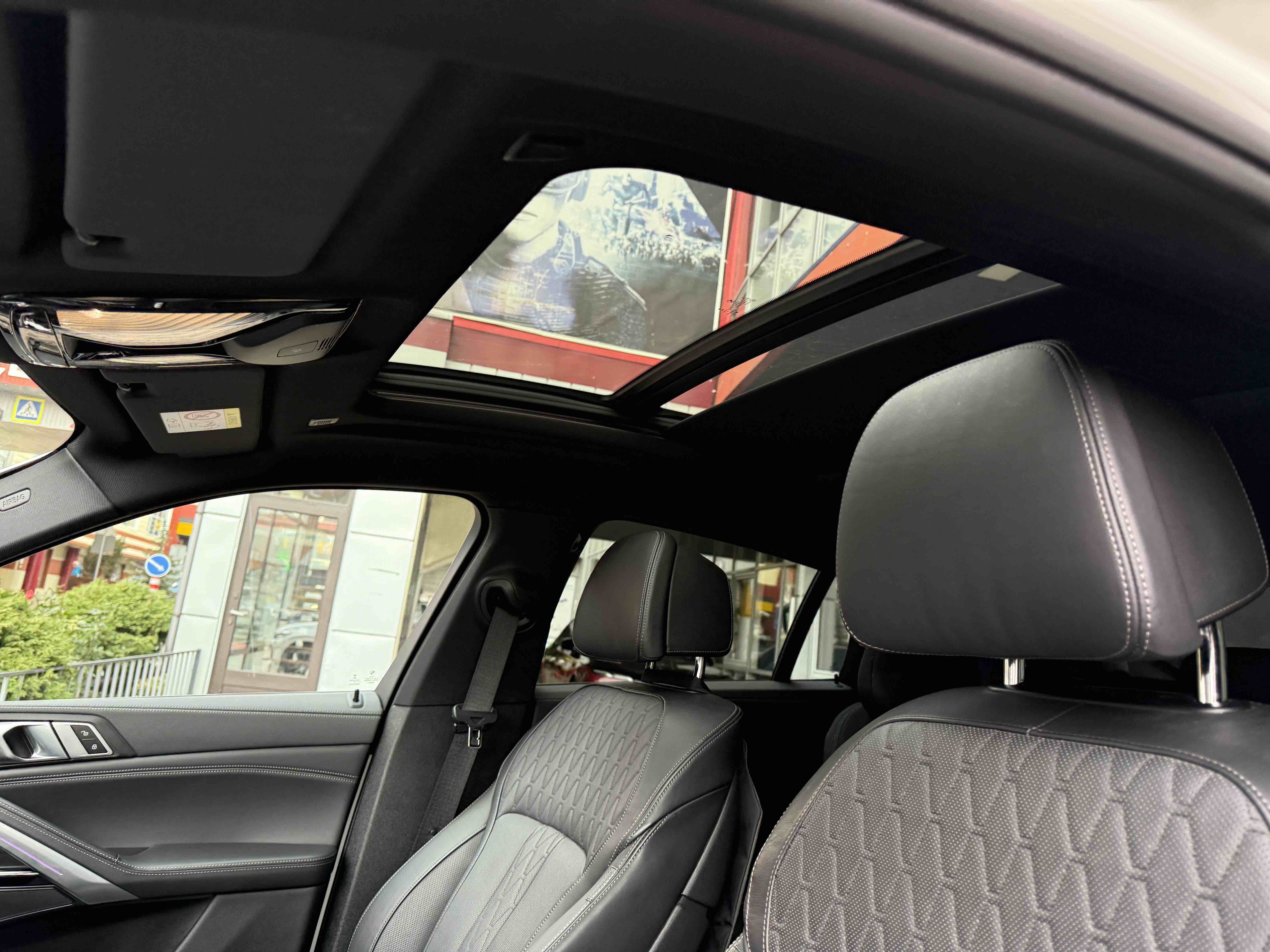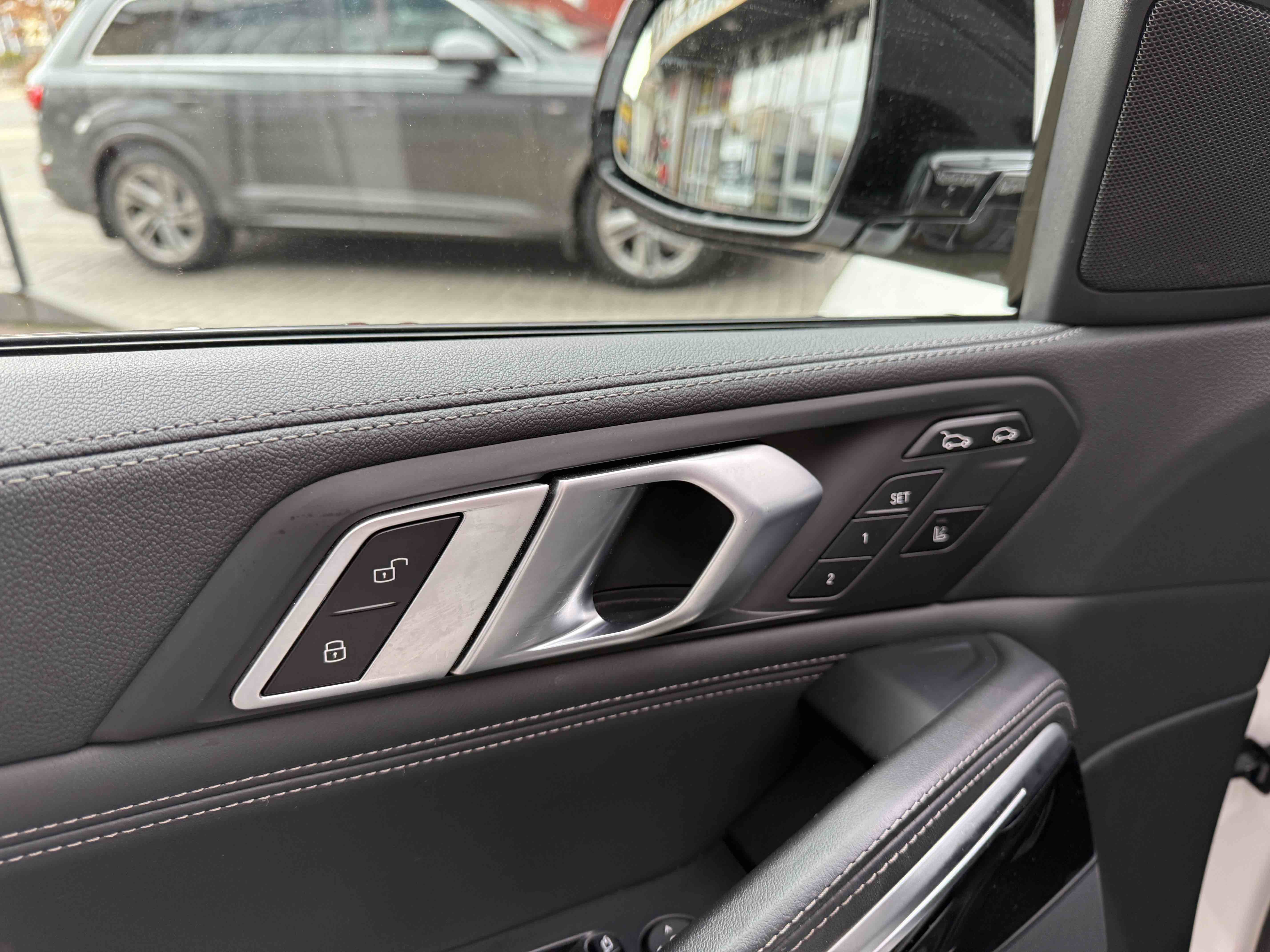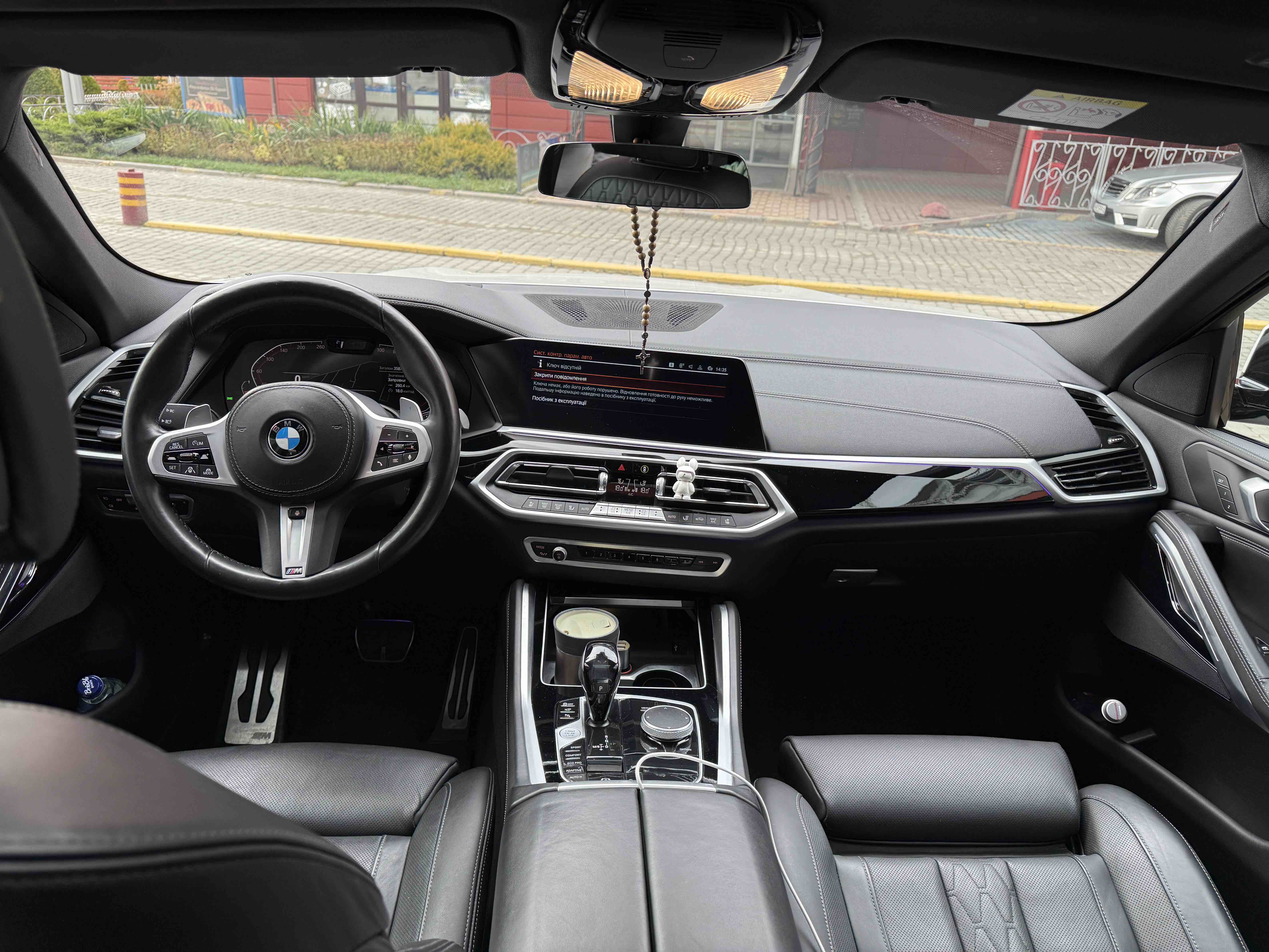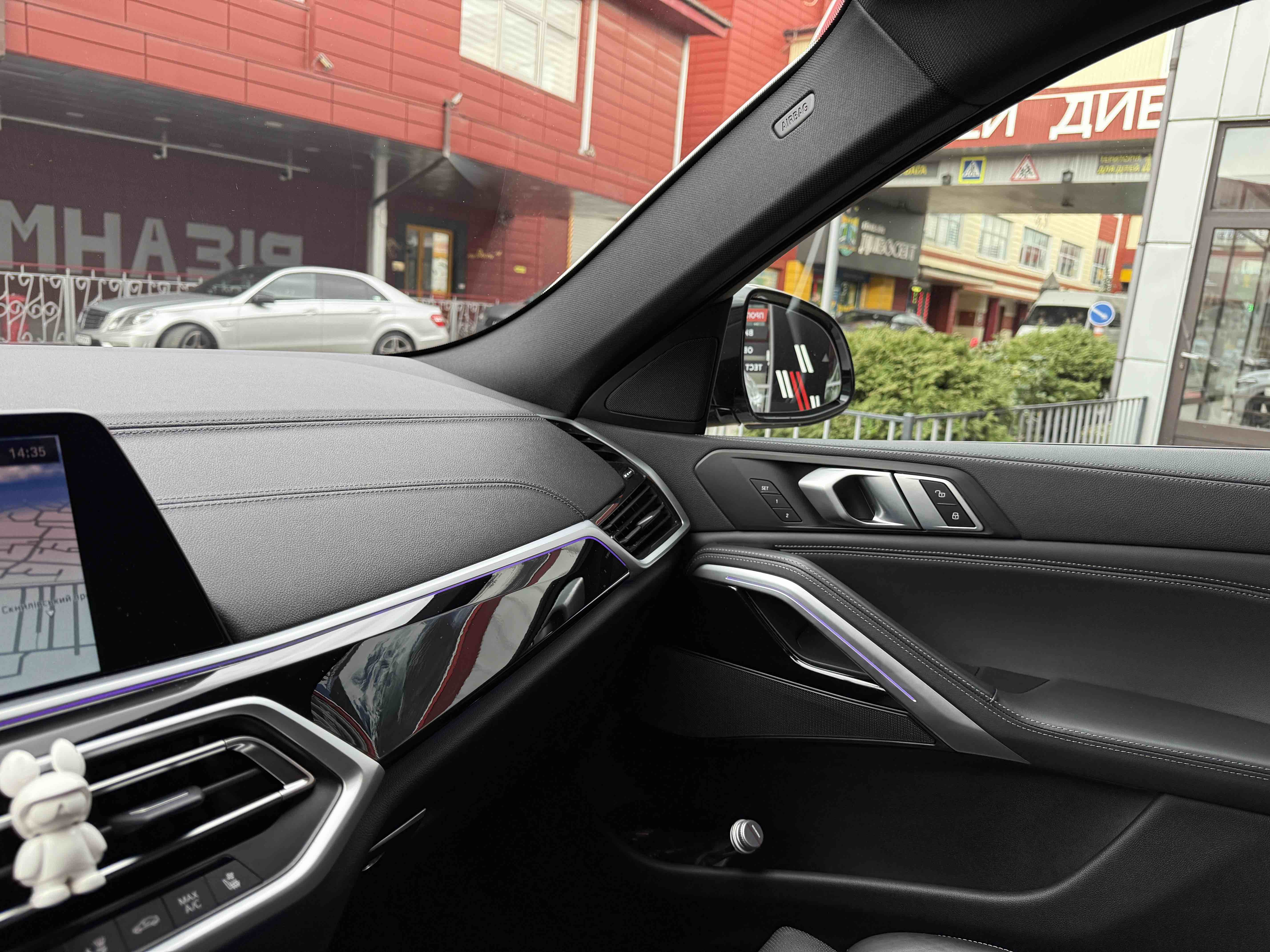 З опцій: панорамний дах, скляні елементи салону (селектор КПП, кнопка запуску двигуна, «шайба» iDrive і «крутилка» гучності звуку), чотирьохзонний клімат, проекція, адаптивний круїз, прилад нічного бачення, камери 360, помічник при русі заднім ходом, утримання в смузі, моніторинг мертвих зон, екстрене гальмування, контроль знаків і багато іншого.