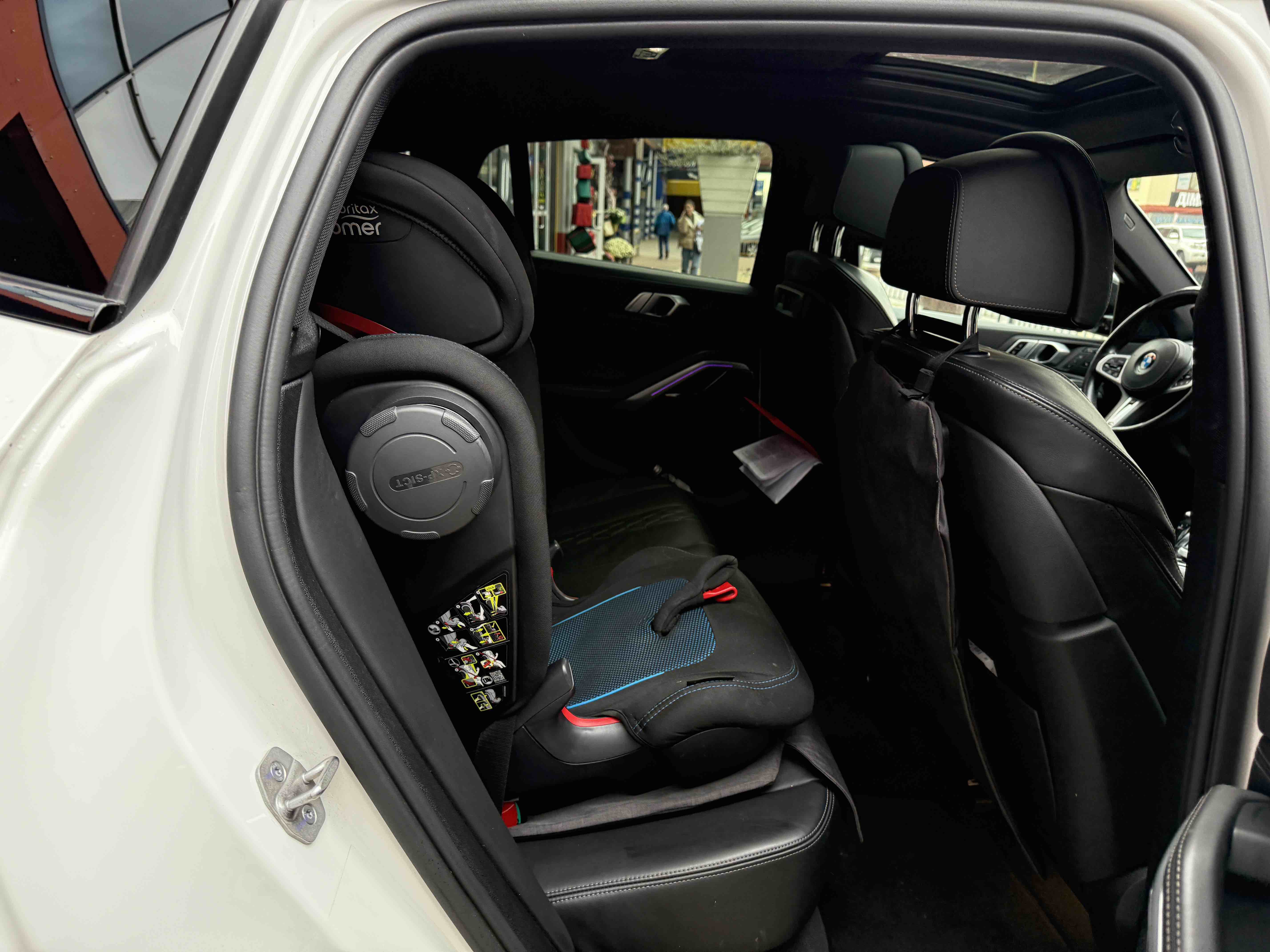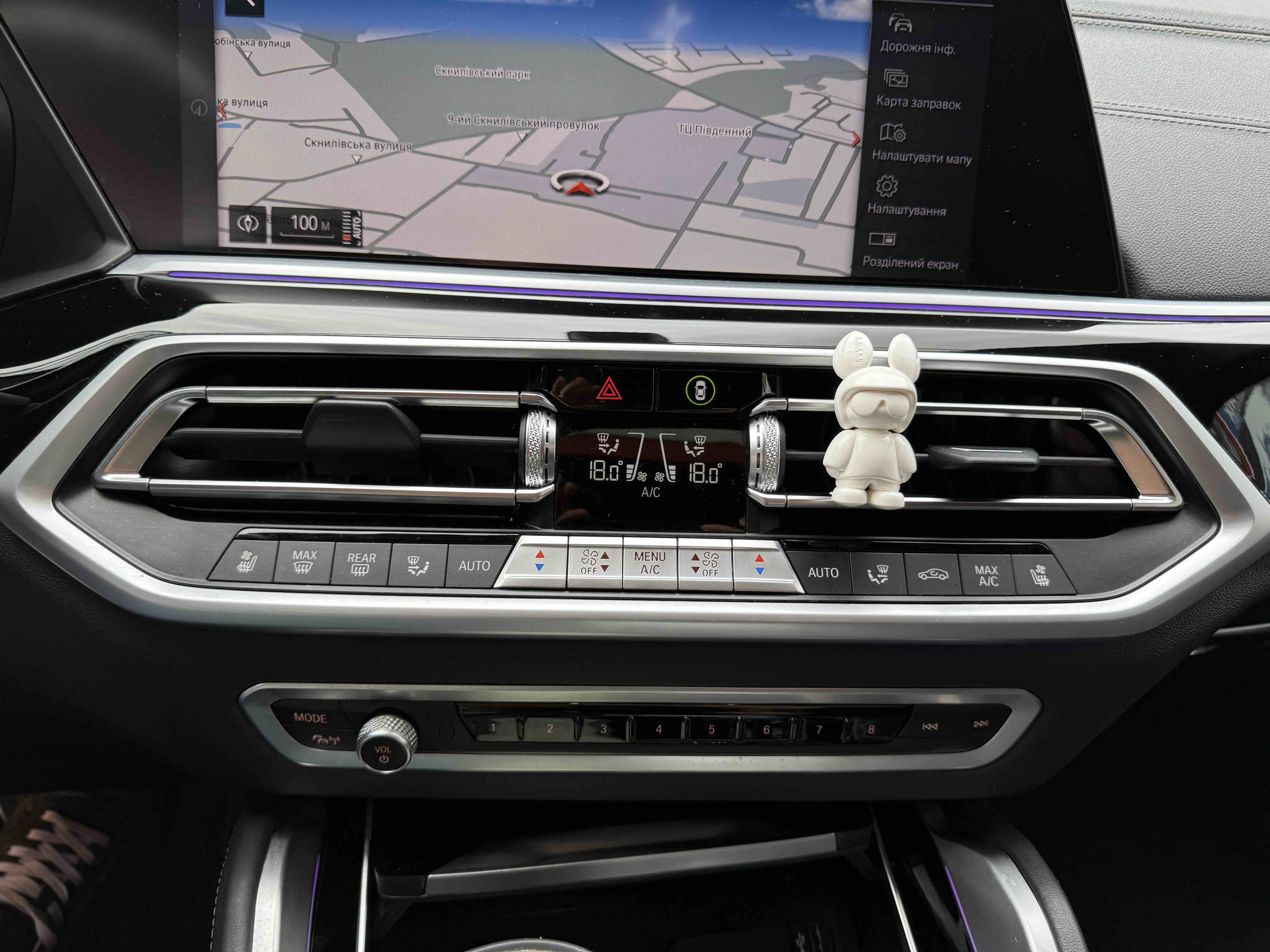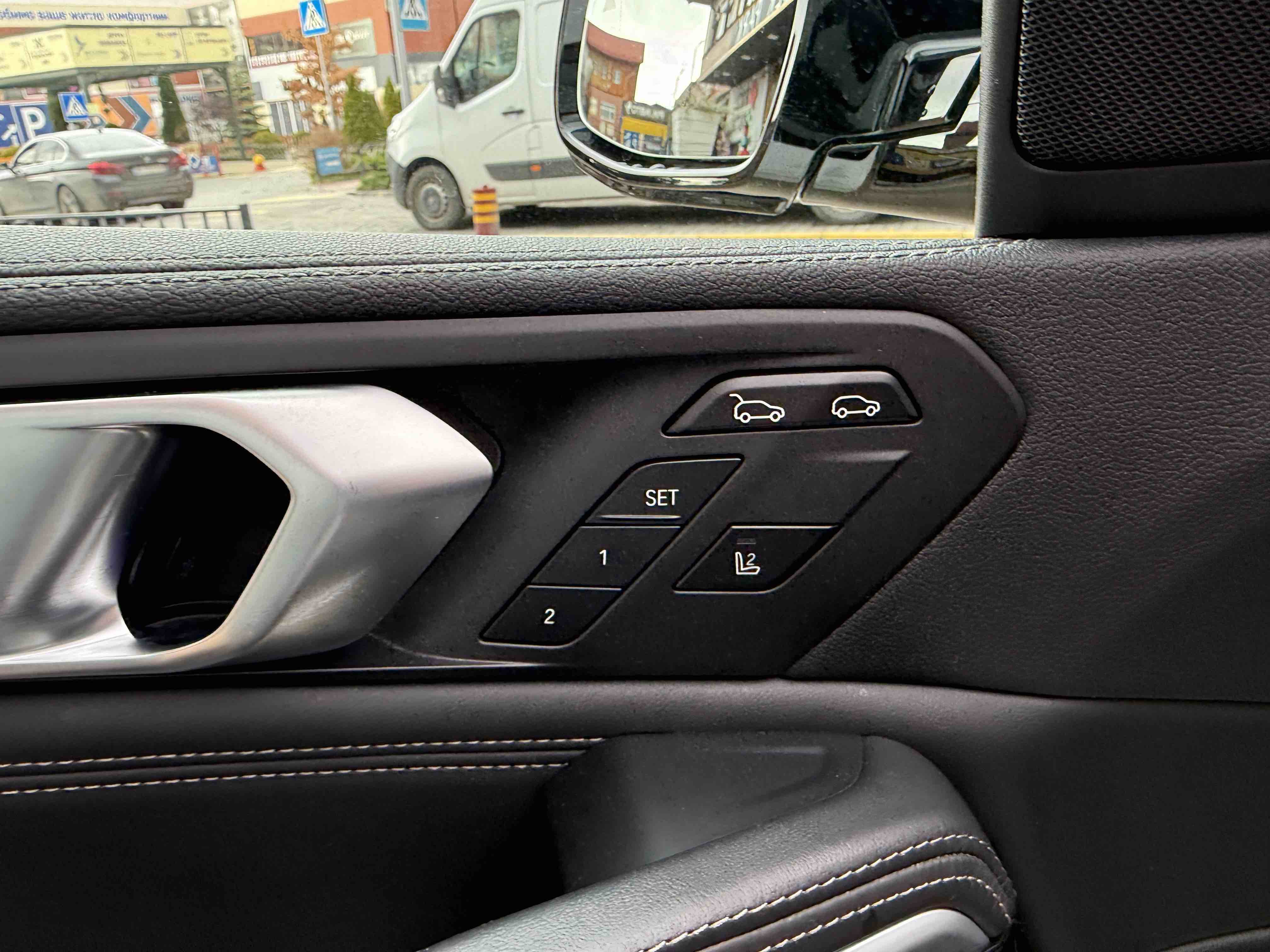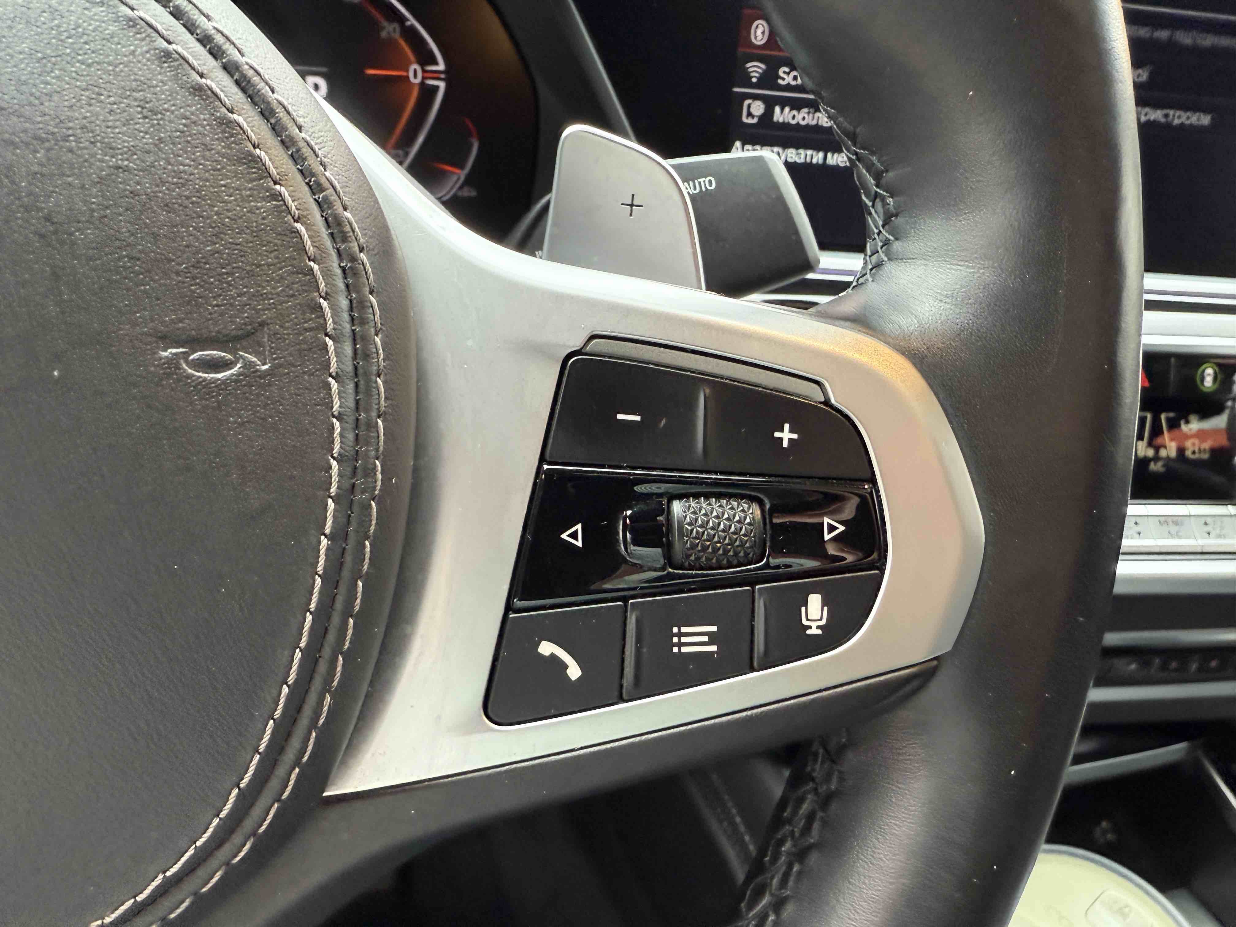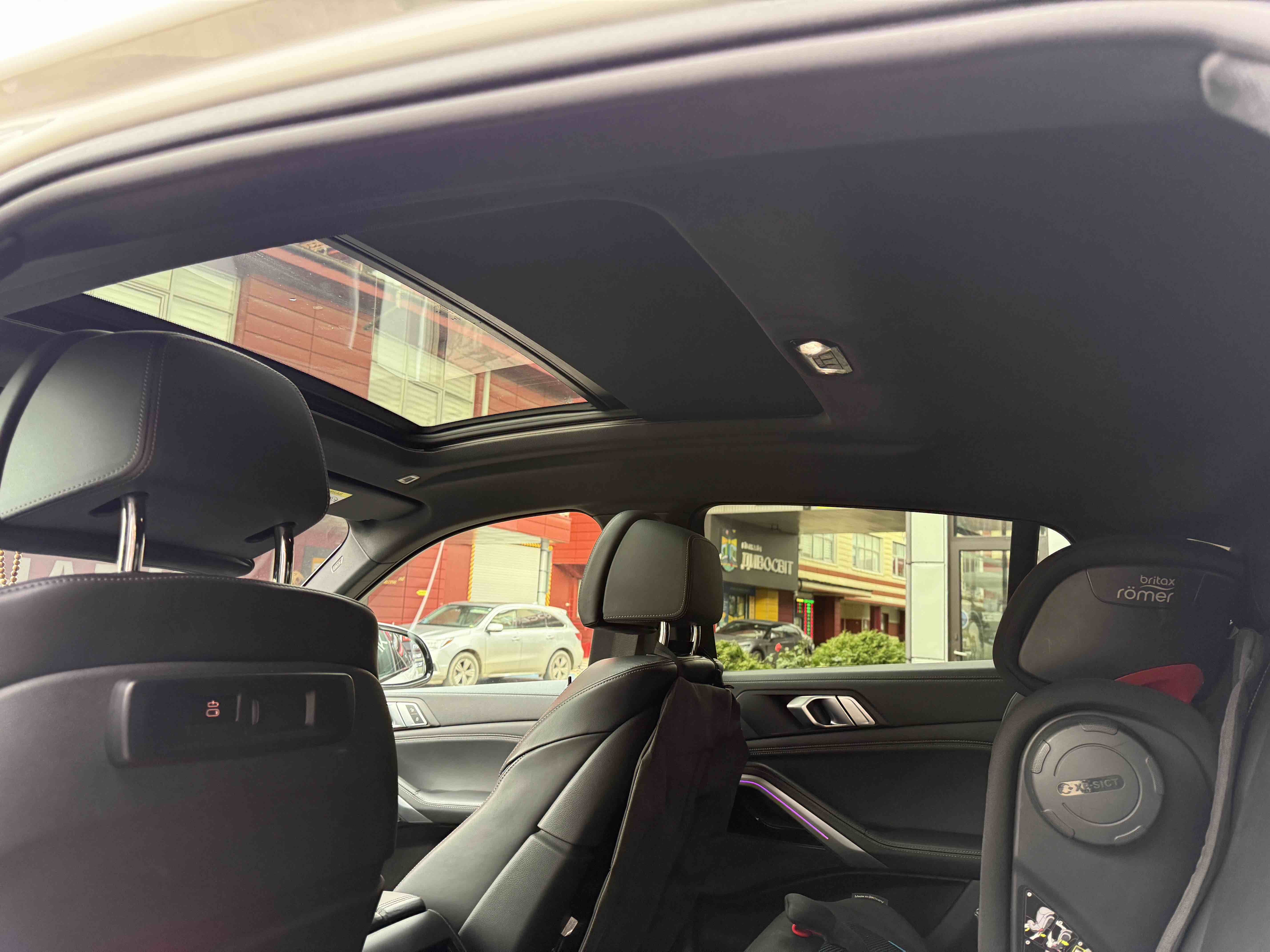 З опцій: панорамний дах, скляні елементи салону (селектор КПП, кнопка запуску двигуна, «шайба» iDrive і «крутилка» гучності звуку), чотирьохзонний клімат, проекція, адаптивний круїз, прилад нічного бачення, камери 360, помічник при русі заднім ходом, утримання в смузі, моніторинг мертвих зон, екстрене гальмування, контроль знаків і багато іншого.