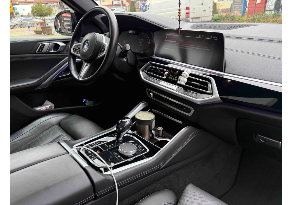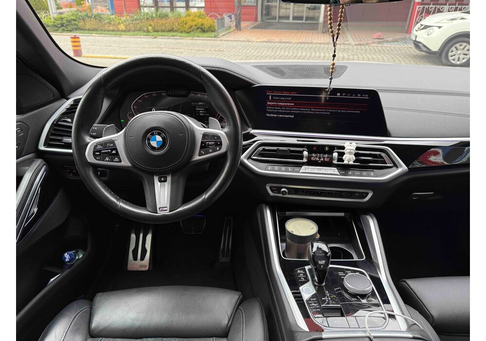 Інтер'єр точна копія «Ікс-П'ять». Перед водієм точно така ж віртуальна приборка з екраном 12,3-дюйма і точно такий же трьохспицевий мультируль. По центру - аналогічний дисплей (12,3-дюймів) мультимедійної системи BMW 7.0, що реагує на фрази ( «Hey, BMW») і жести. Однак, що б підкреслити «купешний» спортивність «Ікс 6», виробник вже спочатку забезпечив кросовер спортивними сидіннями.