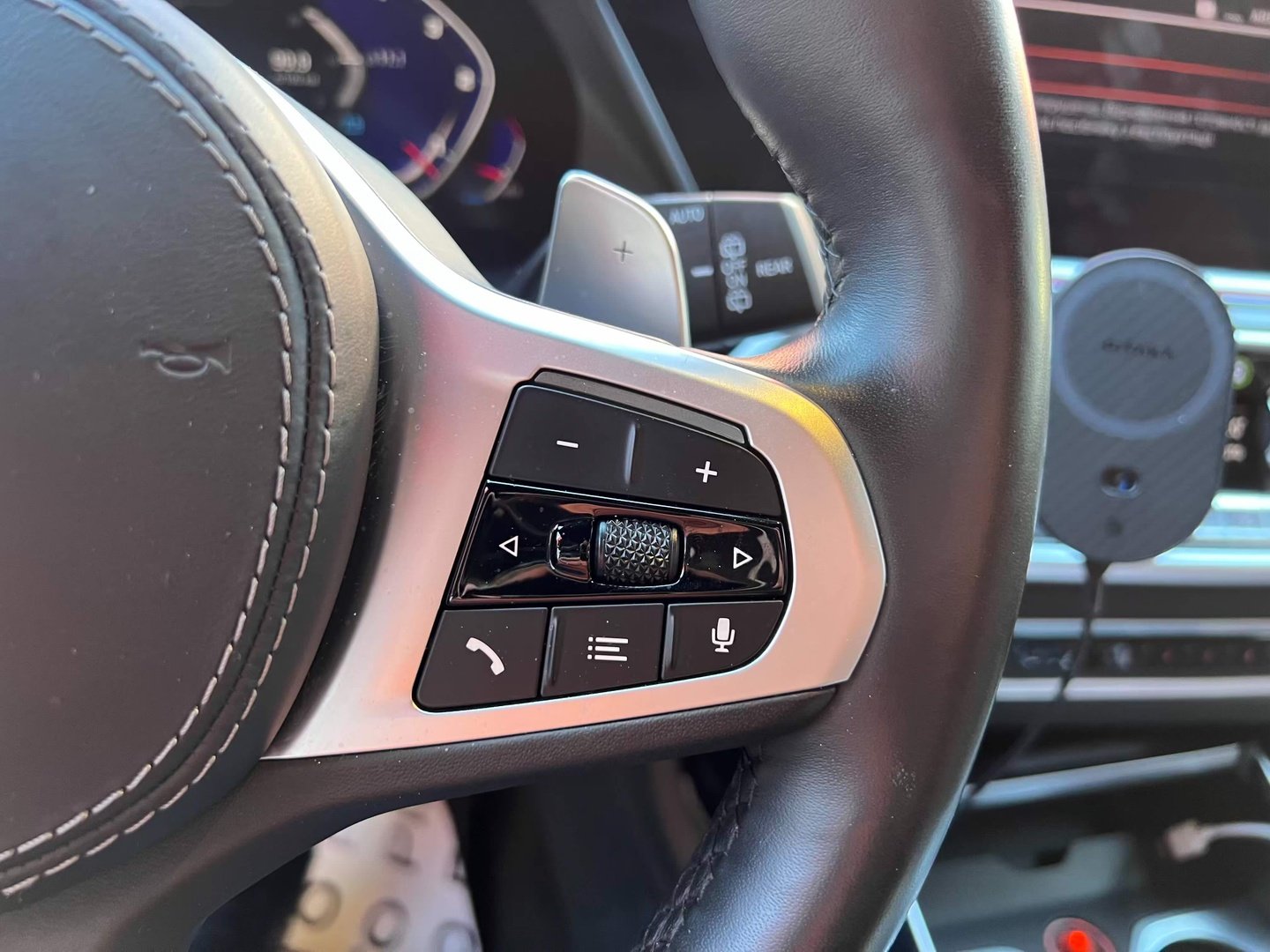 Що ми очікували (і навіть поспішили до нього), то і отримали. Усередині Х7 виглядає розкішно, але ми все це вже бачили в новому BMW X5 G05. Нам вже знайома приладова панель Live Cockpit, великий мультимедійний екран, середня консоль з клімат-контролем і управлінням електронними системами автомобіля. Також ми бачимо знайомі рішення в середній частині під підлокітником, де розташований контролер iDrive.