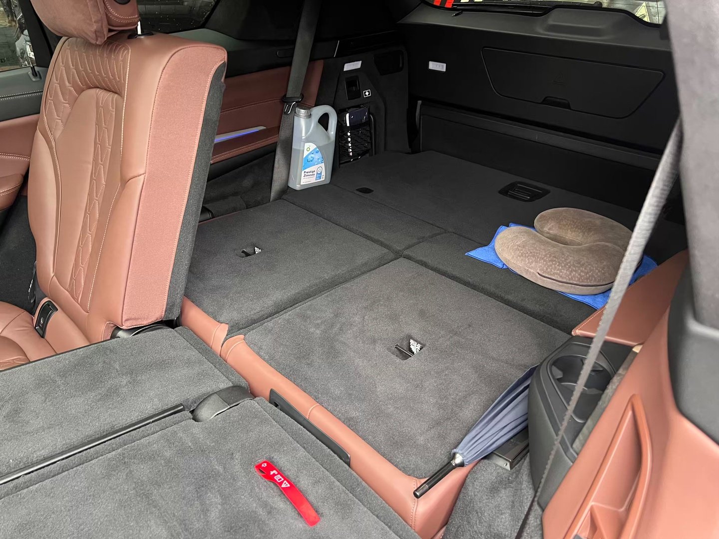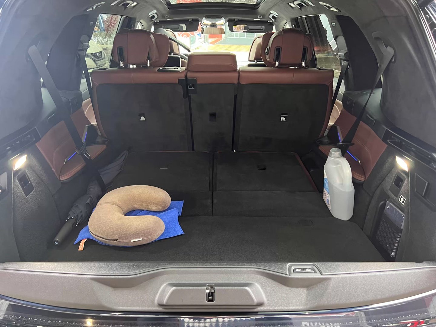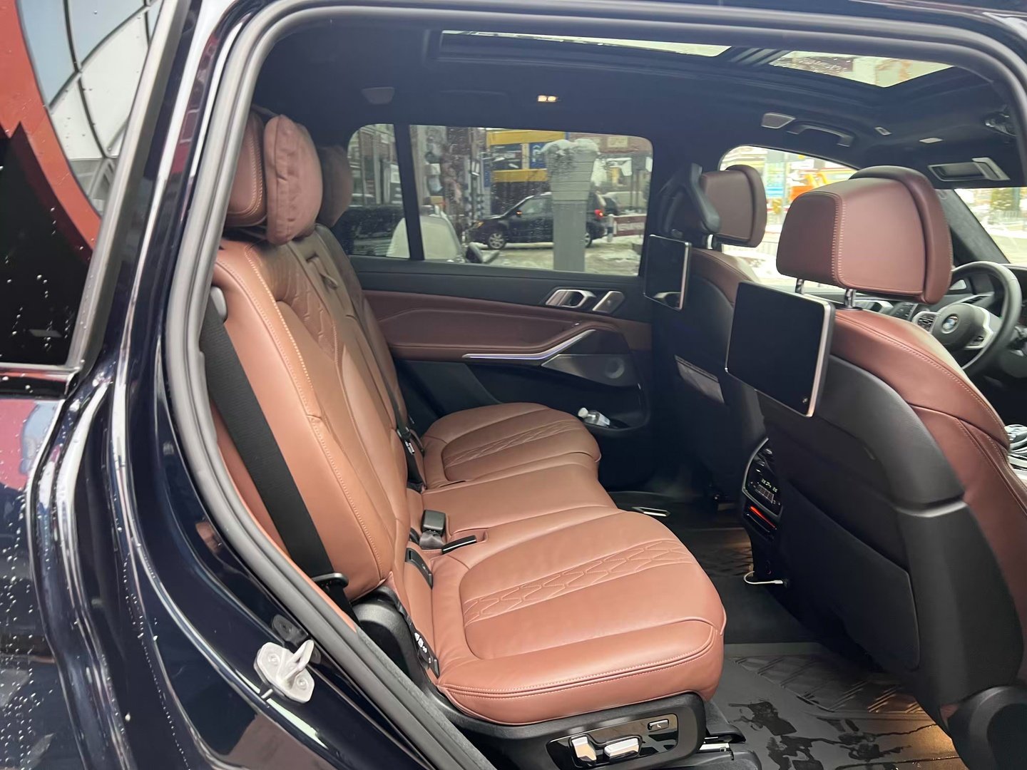 Салон BMW X7 за замовчуванням забезпечений третім рядом сидінь, на яких можуть розміститися 7 чоловік. Два пасажири третього ряду зможуть розміститися на повнорозмірних сидіннях з підлокітниками, підстаканниками і USB-роз'ємами для підключення персональних мобільних пристроїв. В якості опції можна вибрати шестимісний варіант, в такому випадку для другого ряду пропонується два індивідуальних сидіння підвищеної комфортності з підлокітниками і розширеними регулюваннями. Всі сидіння мають електрорегулювання. Склавши їх, при необхідності можна збільшити обсяг багажника з 326 до 2120 літрів.